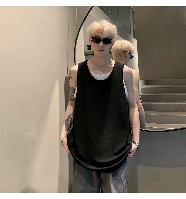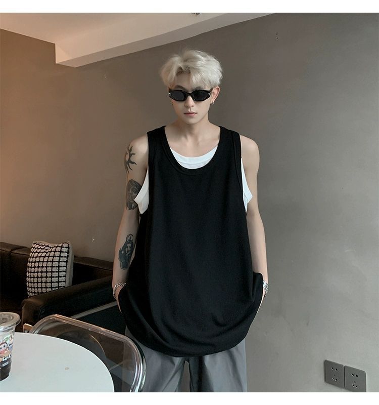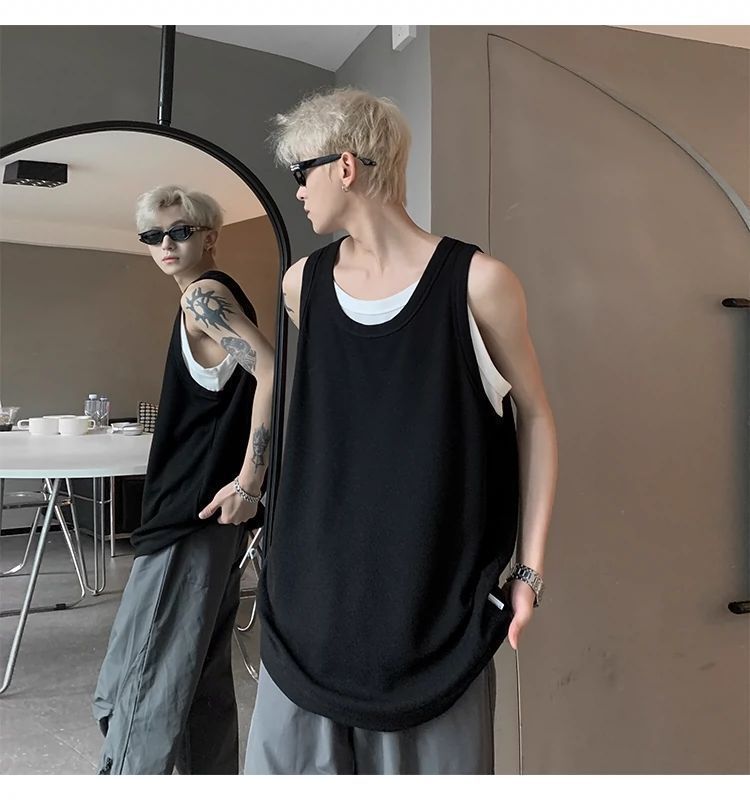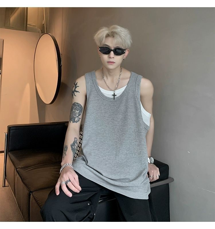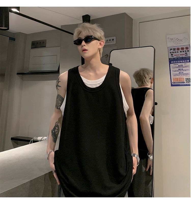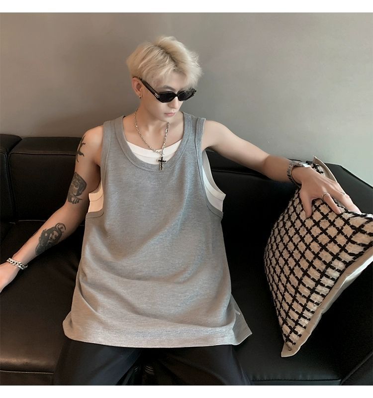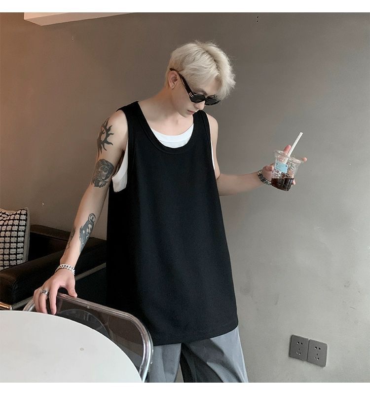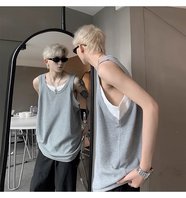 통기성 와플 가짜 투피스 조끼 남성 여름 미국식 I자형 피트니스 스포츠 민소매 셔츠 잘 생긴 조끼스토어 가기