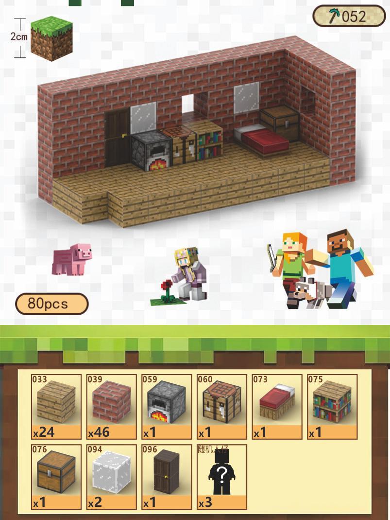 • T050/목조 주택/80개/무료 미니피겨 3개