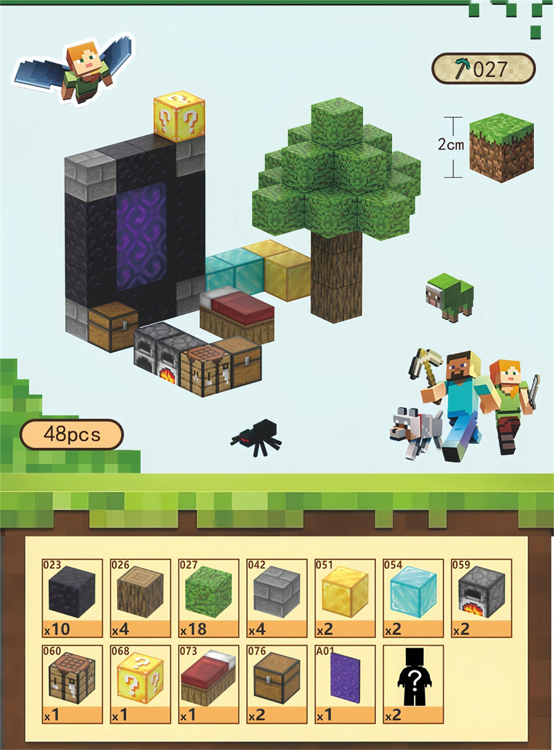 국경 간 Amazon MC Minecraft 자기 블록 빌딩 블록 어린이 DIY 교육 조립 블록 장난감 세트