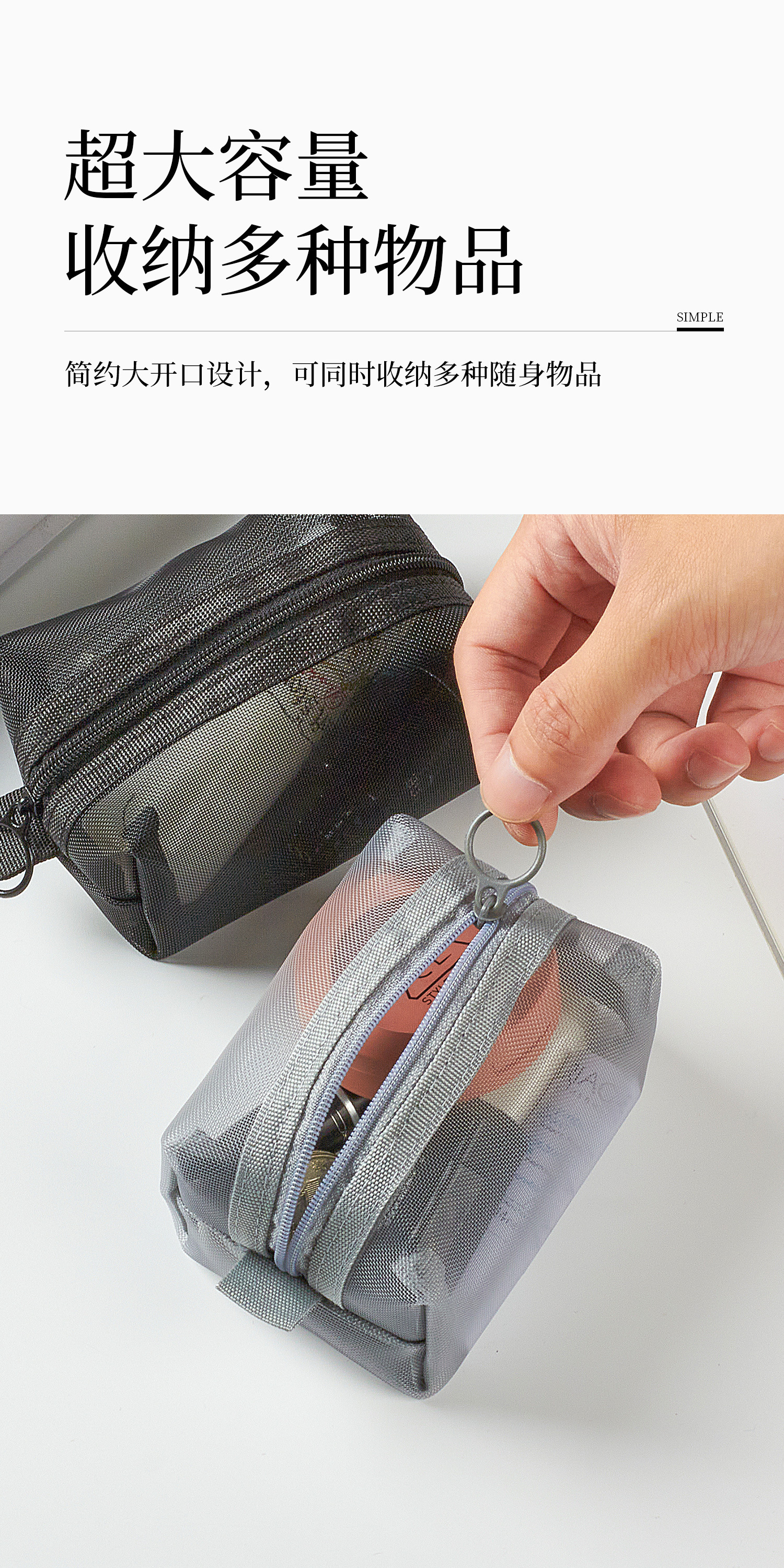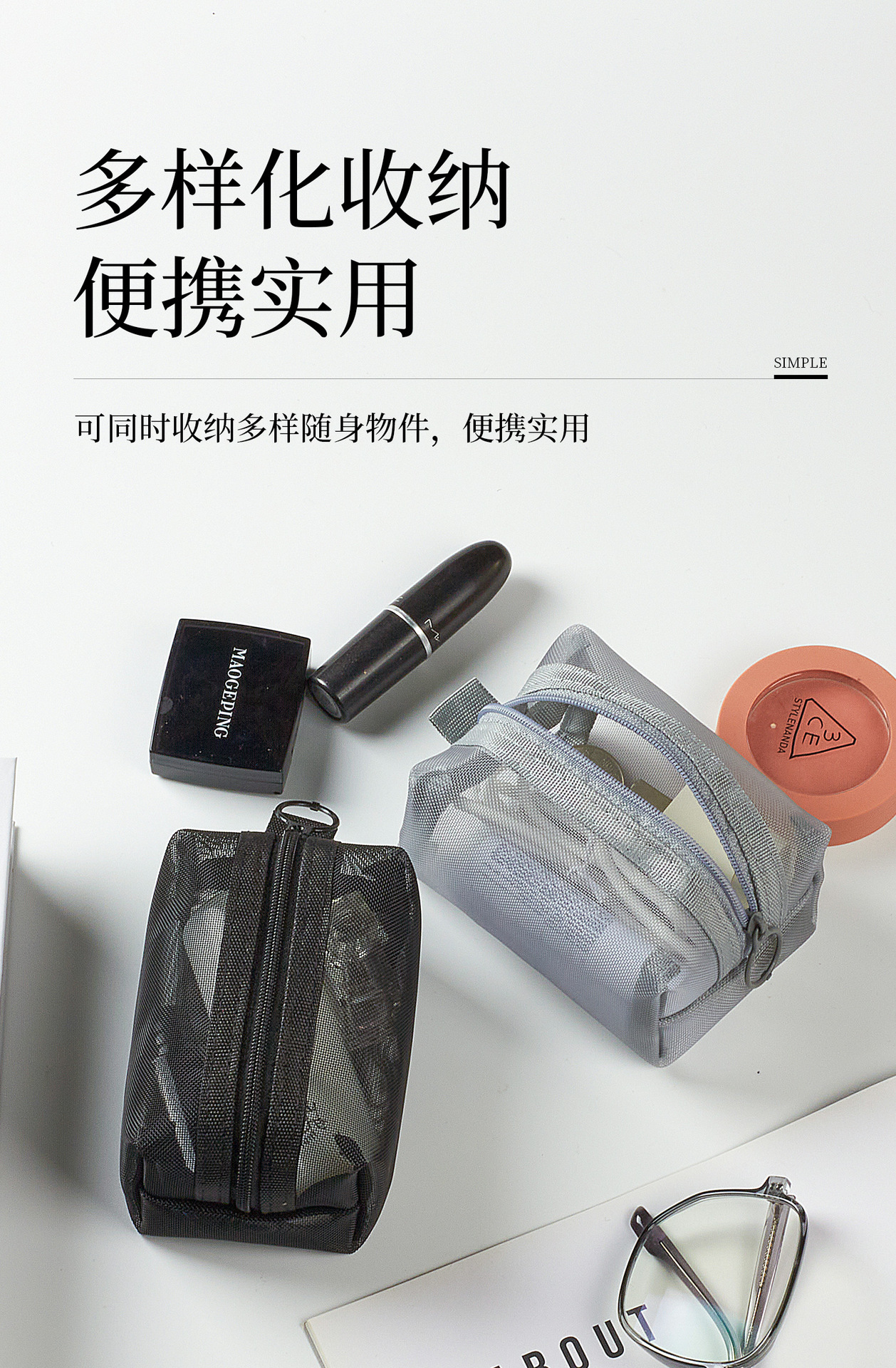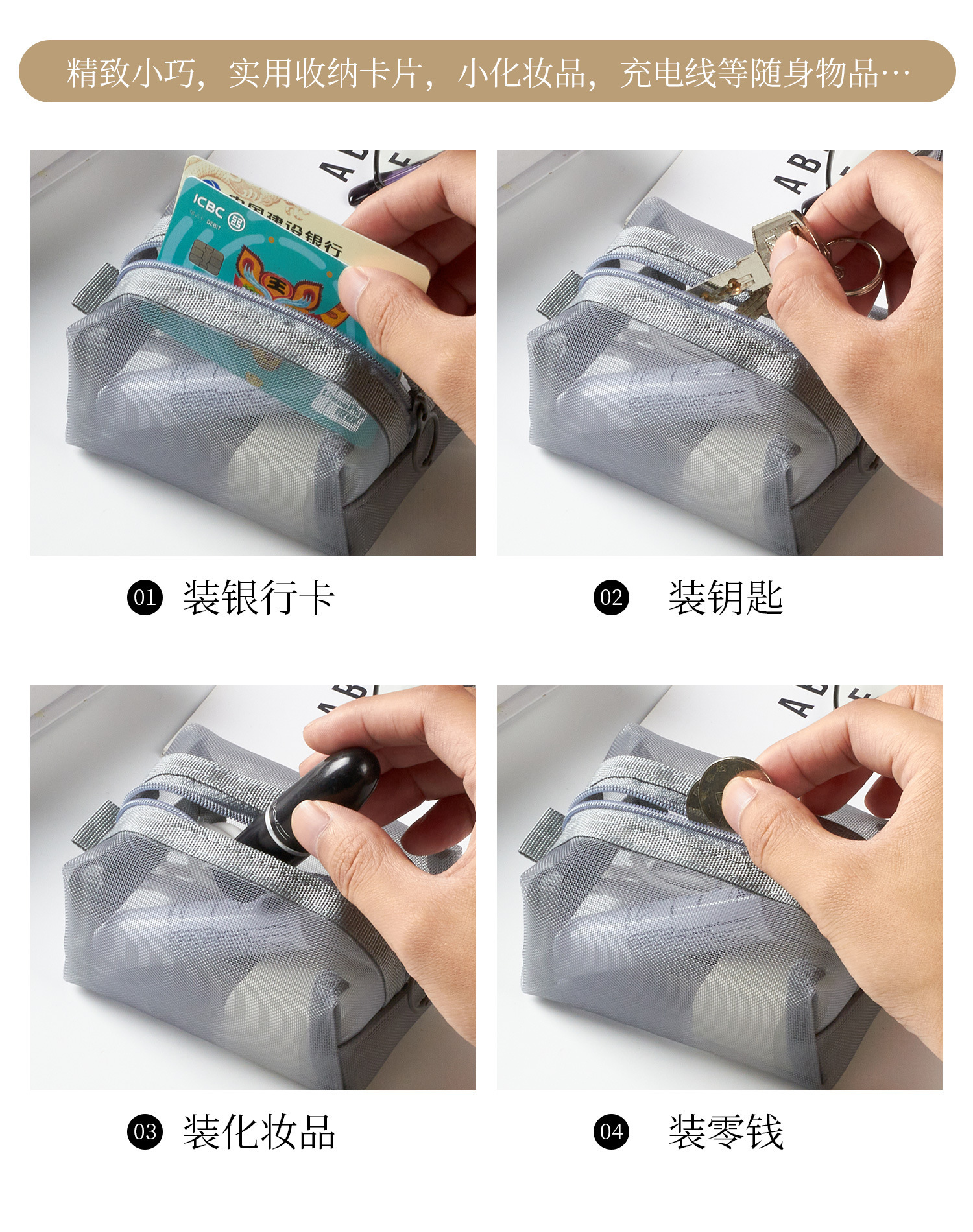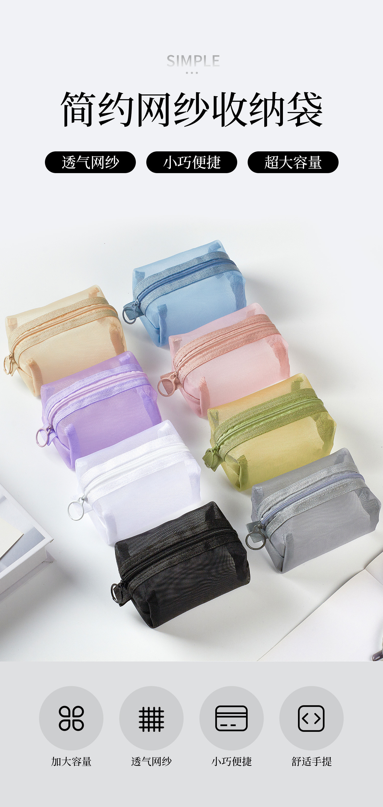 网纱收纳袋迷你便携零钱袋耳机收纳包数据线收纳盒随身口红拉链袋