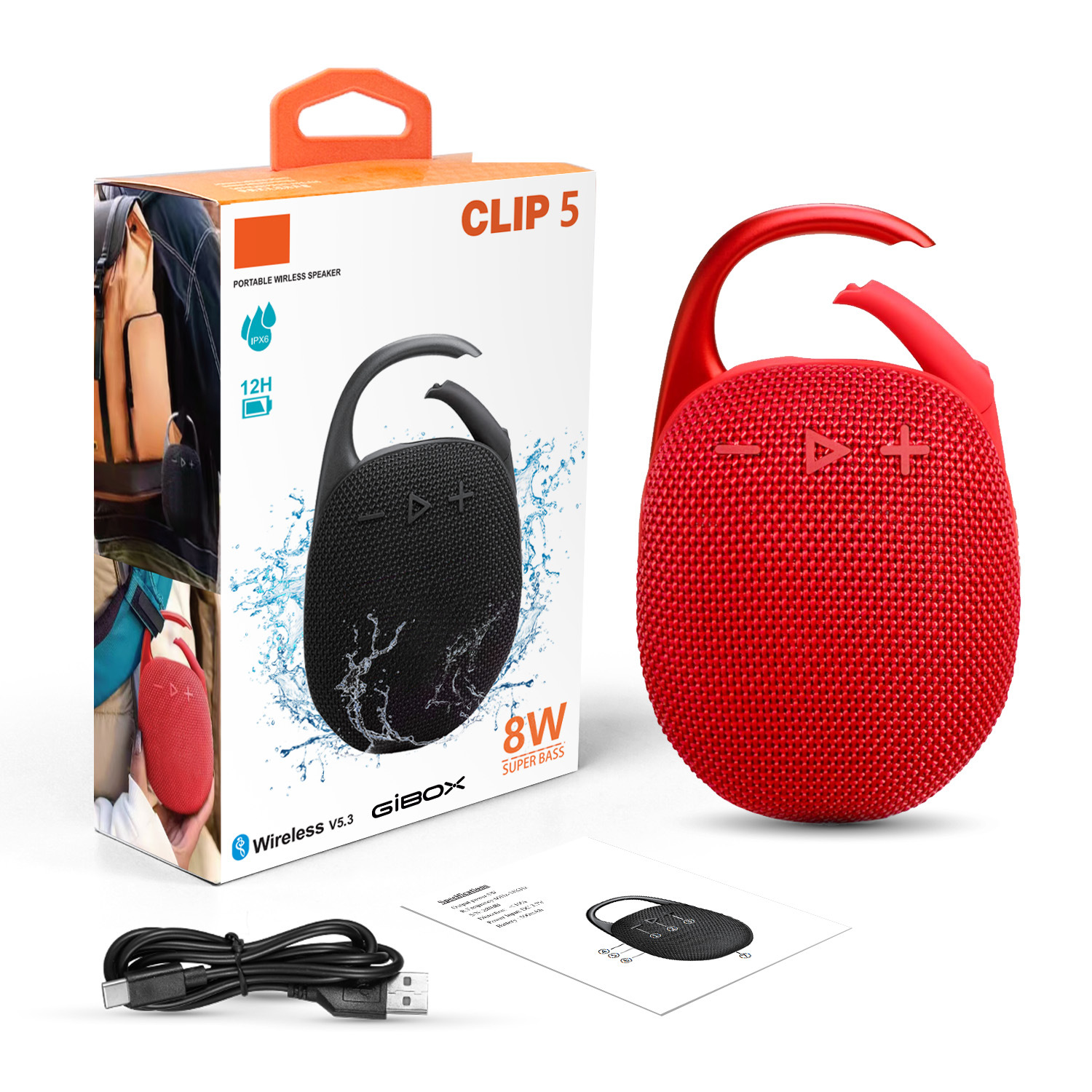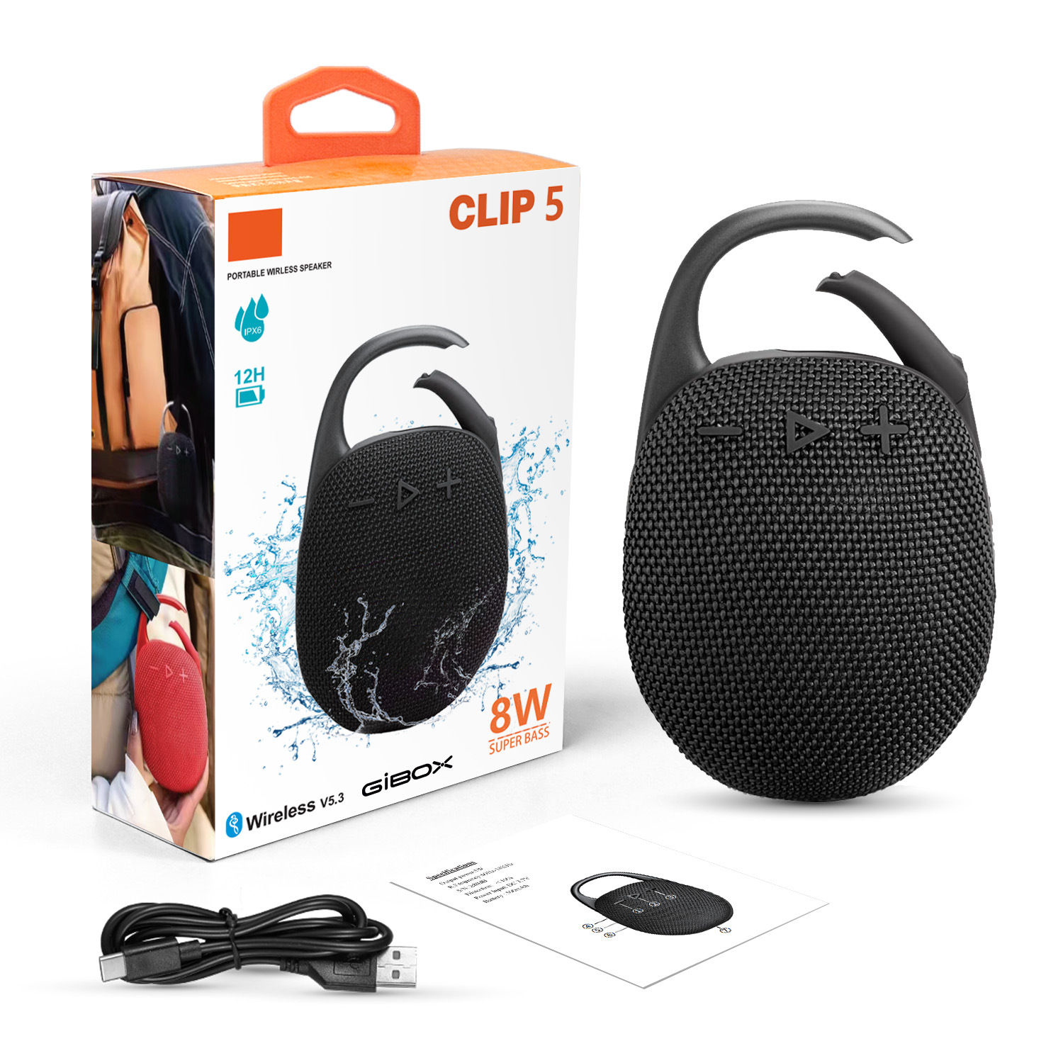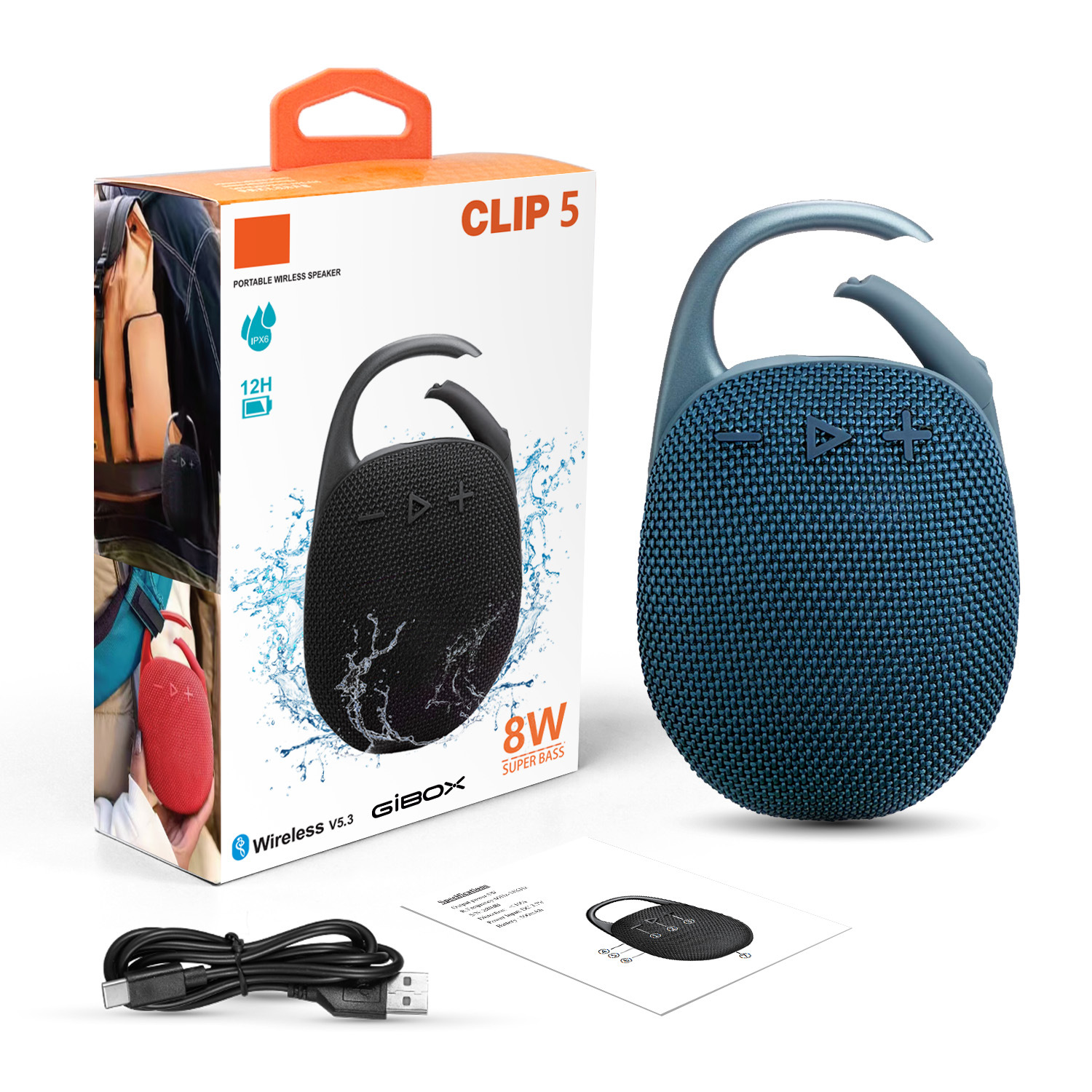 대외 무역 뜨거운 판매 CLIP5 휴대용 패브릭 블루투스 스피커 야외 방수 스피커 7 레벨 방수 미니 스피커