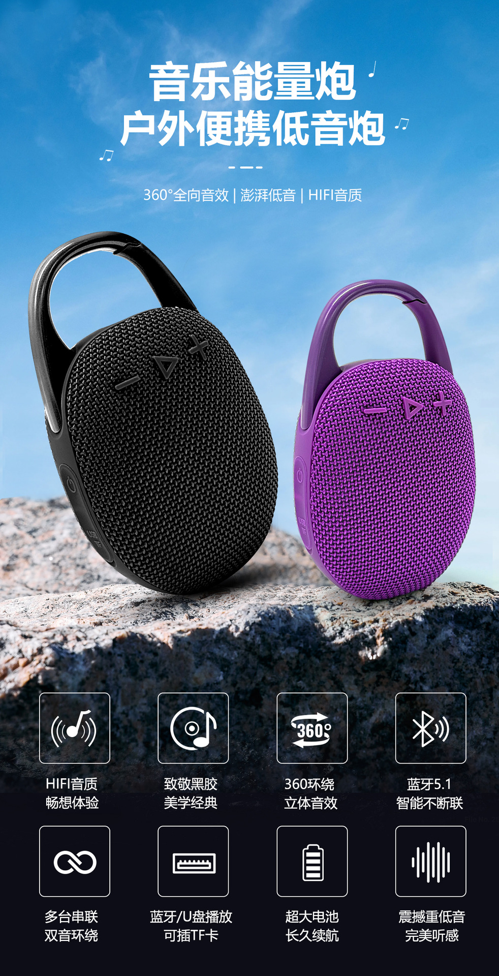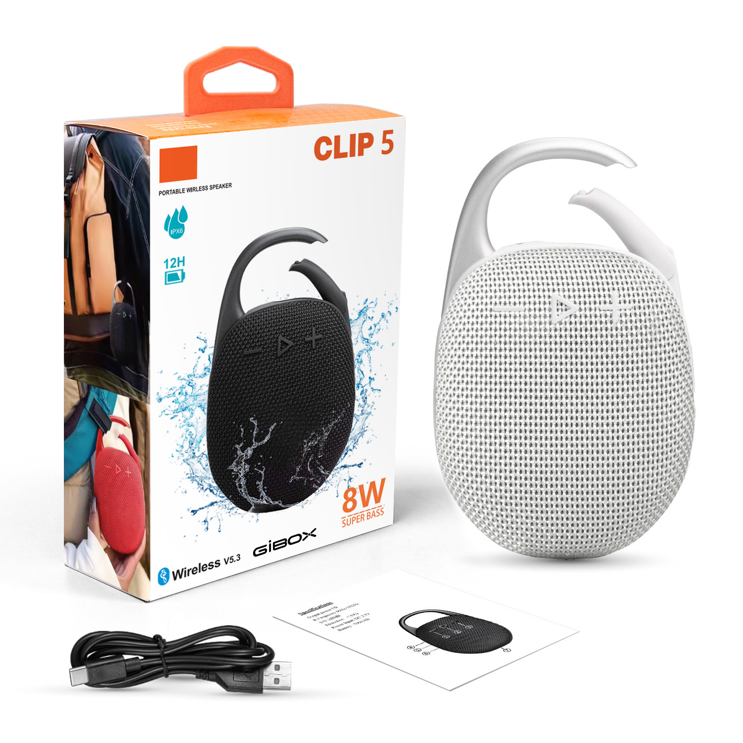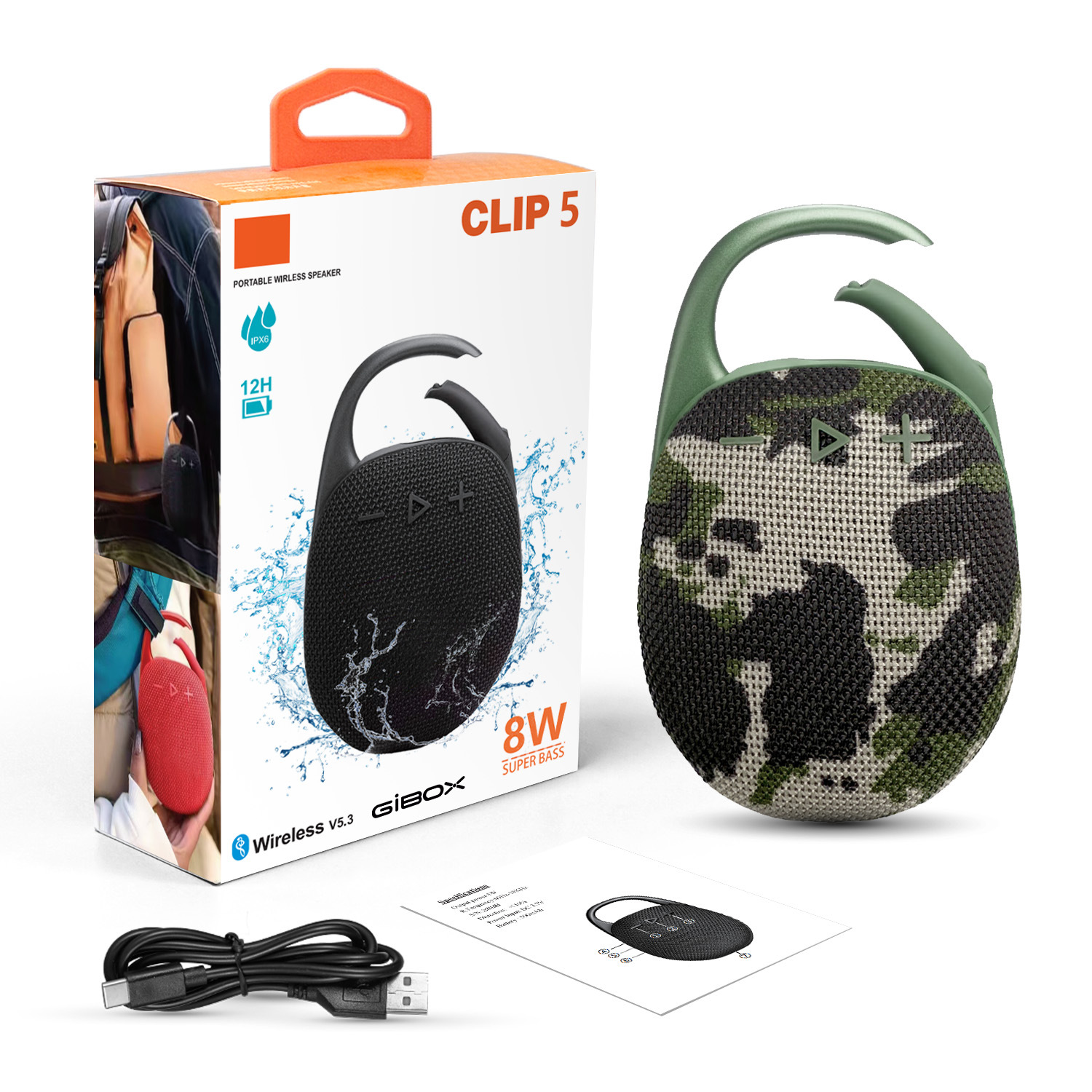 대외 무역 뜨거운 판매 CLIP5 휴대용 패브릭 블루투스 스피커 야외 방수 스피커 7 레벨 방수 미니 스피커