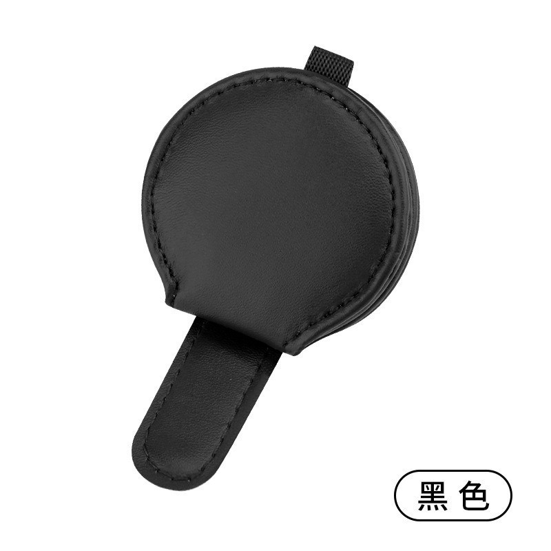 • 블랙 카멜리아 화이트 라운드 가죽 안경 클립
