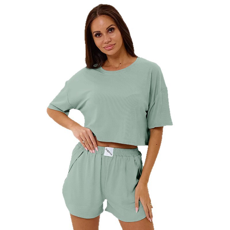 Temu2025 유럽과 미국의 가을 캐주얼 여성 잠옷, 편안하고 섹시한 반바지, 홈웨어 세트, 크로스보더 착용 가능