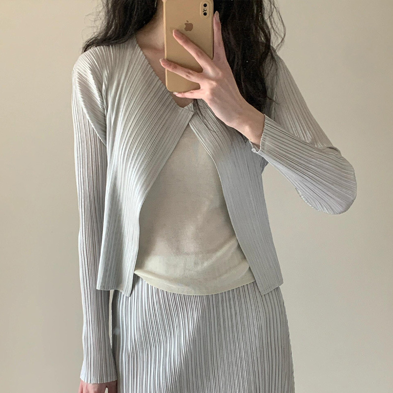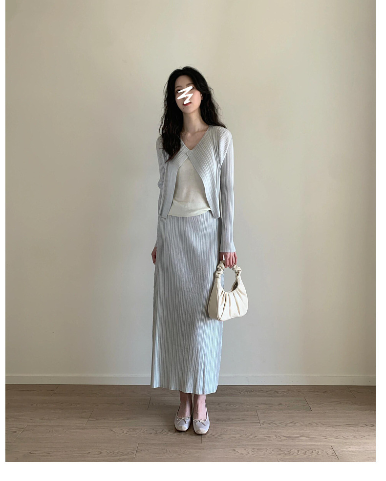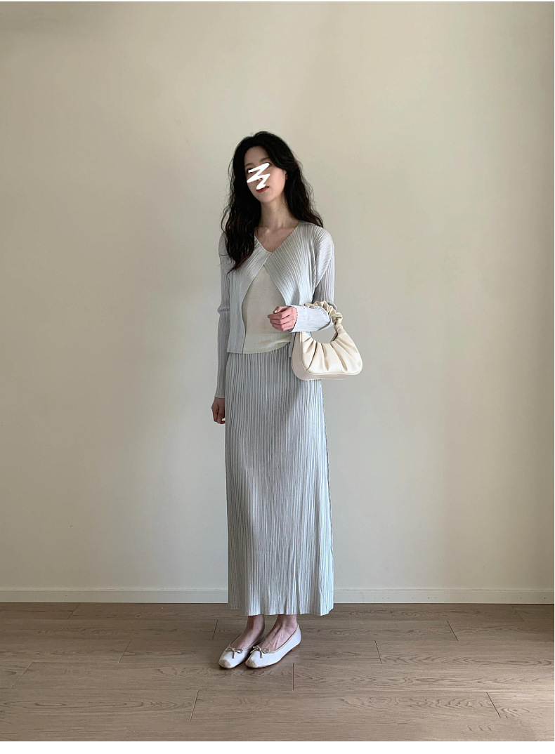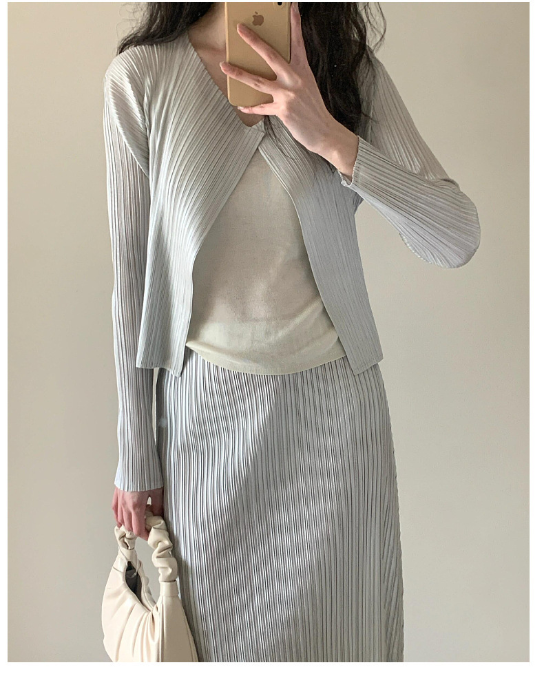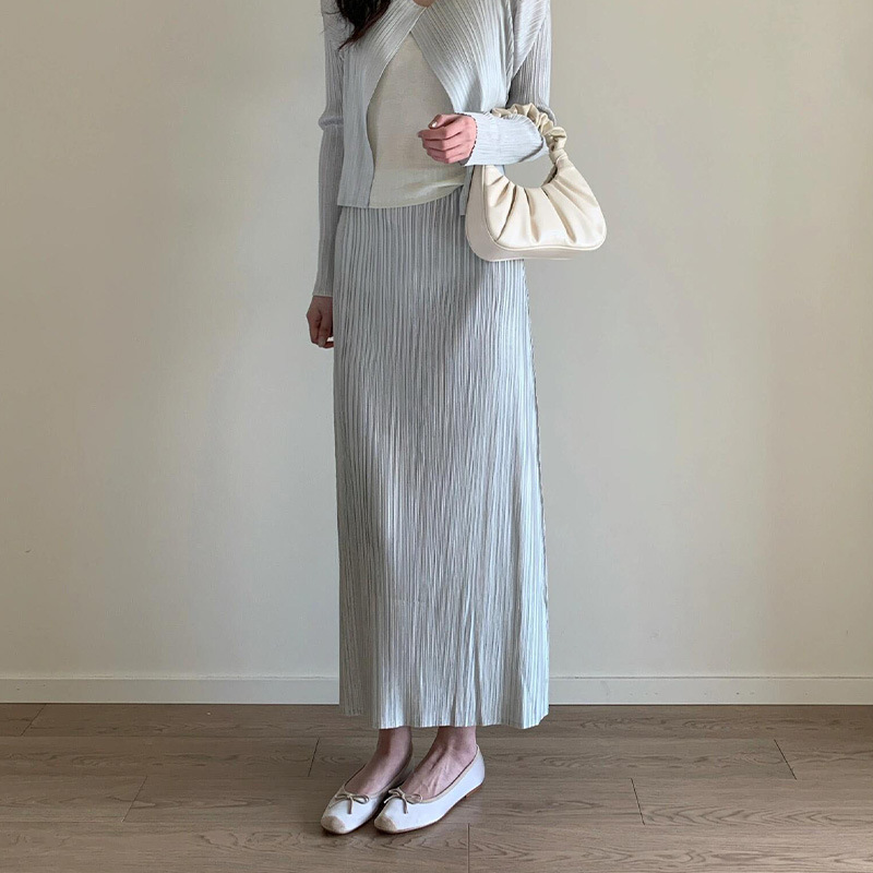 우아한 솔리드 컬러 2025 여름 신작 패션 정장 여성 미야케 민소매 탑 하이 웨이스트 태슬 플리츠 스커트스토어 가기