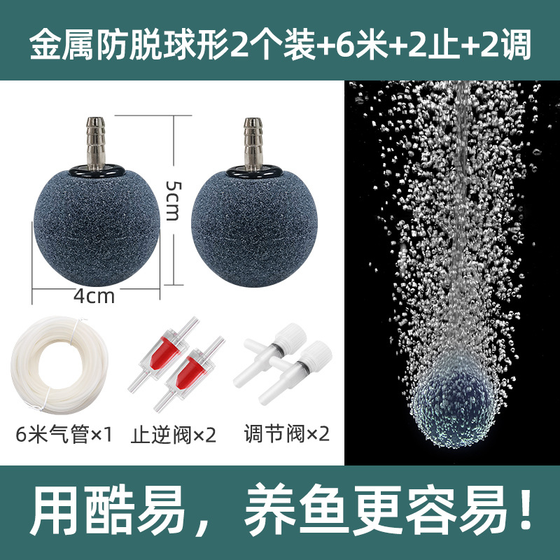• 4CM 탈착 방지 금속 입 원형 에어 스톤 2개 + 체크 밸브 2개 + 스테인레스 스틸 양방향 조절 밸브 1개 + 6m 공기 파이프 독립 컬러 박스 유통
