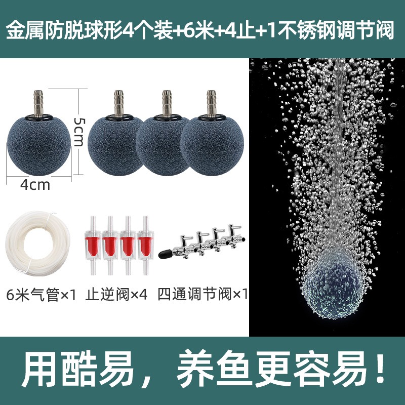 • 4CM 낙하 방지 금속 입 원형 에어 스톤 4개 + 체크 밸브 4개 + 스테인레스 스틸 4방향 조절 밸브 1개 + 6m 공기 파이프 독립 컬러 박스 유통