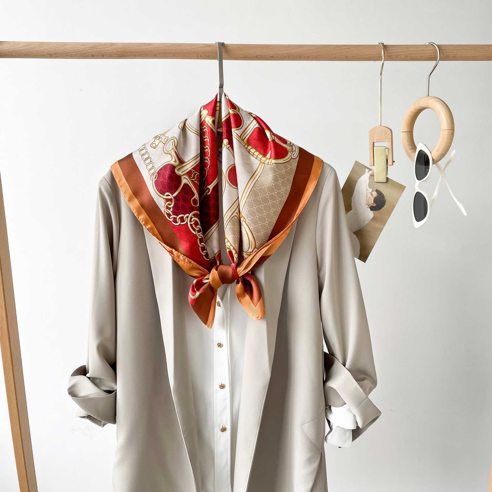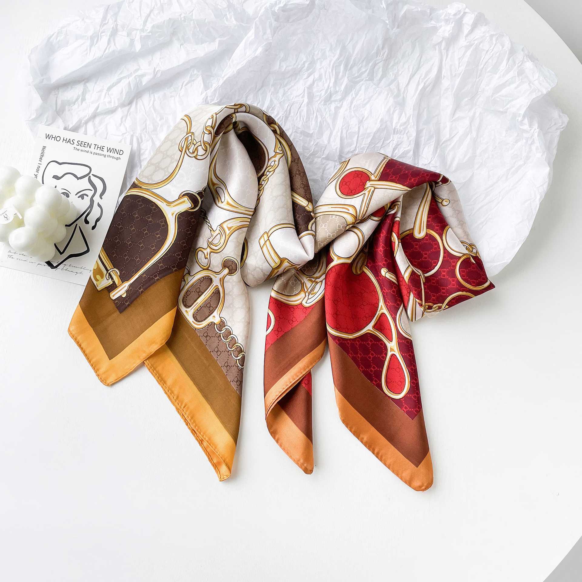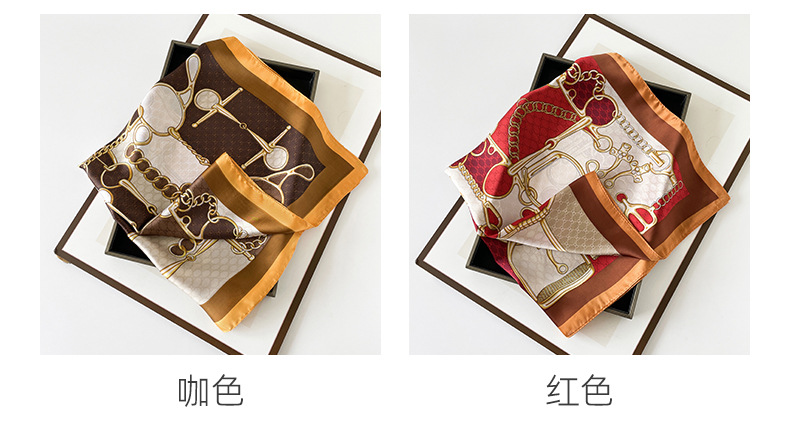 국경 간 커피 컬러 실크 스카프 여름 태양 보호 스카프 컬러 매칭 실크 스카프 70cm 시뮬레이션 실크 여성 작은 사각형 스카프 도매스토어 가기