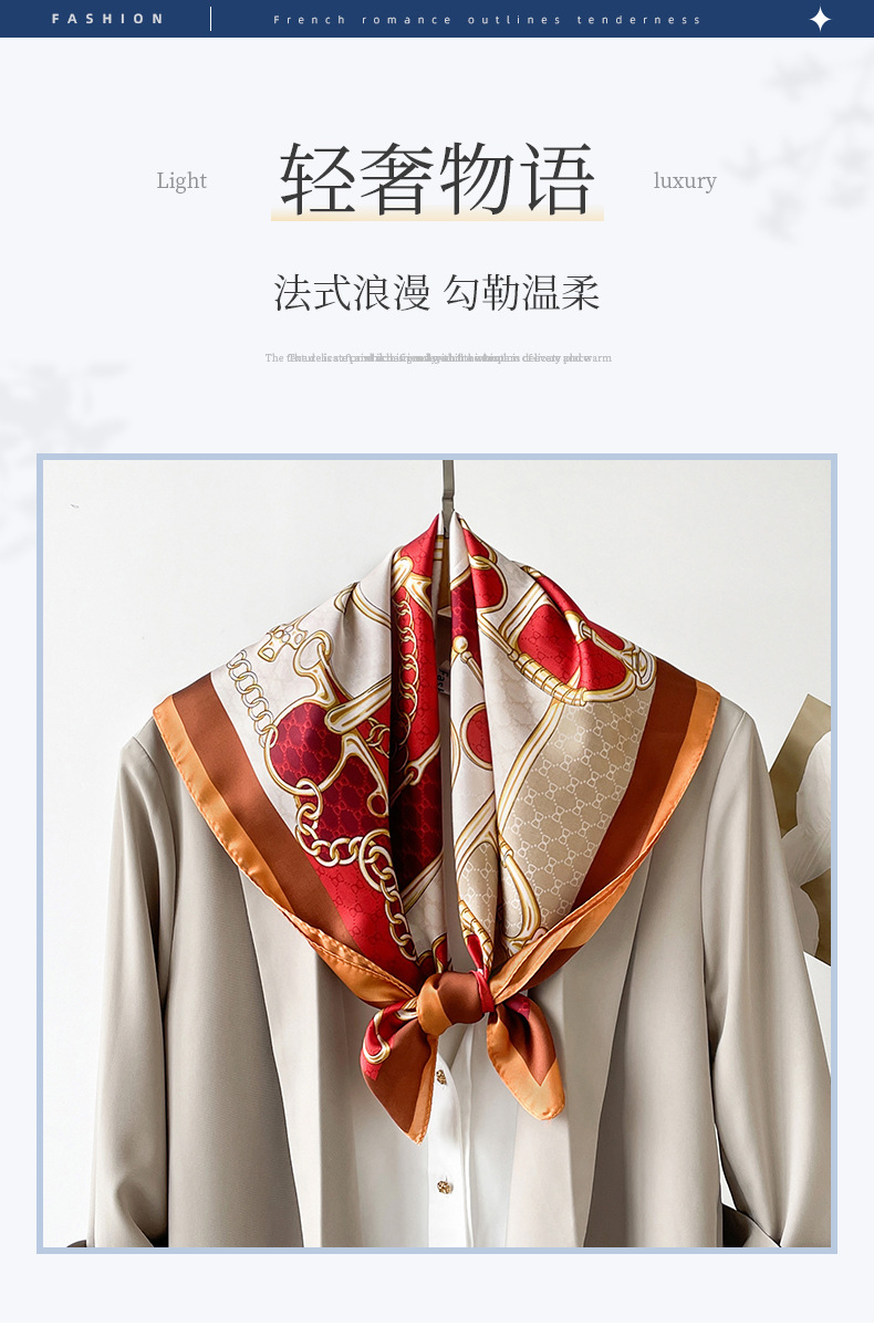 국경 간 커피 컬러 실크 스카프 여름 태양 보호 스카프 컬러 매칭 실크 스카프 70cm 시뮬레이션 실크 여성 작은 사각형 스카프 도매