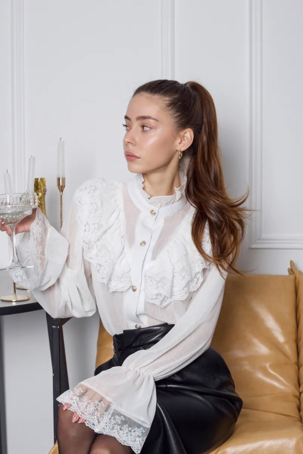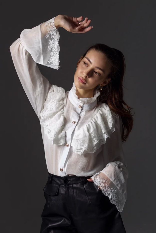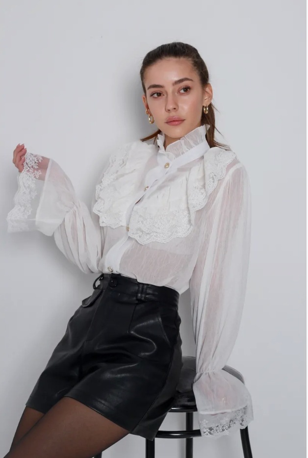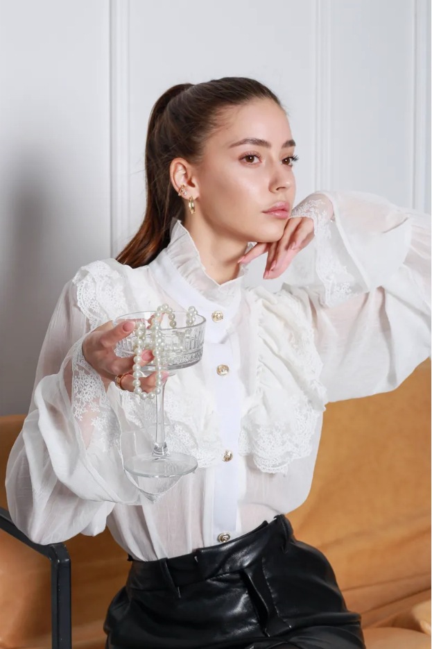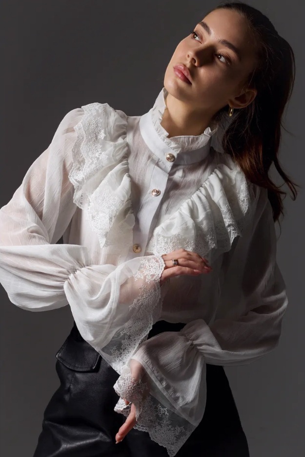 여성용 셔츠 2025 봄 신상 프렌치 팰리스 스타일 요정 스탠드 칼라 쉬폰 디자인 서양식 러플 탑스토어 가기