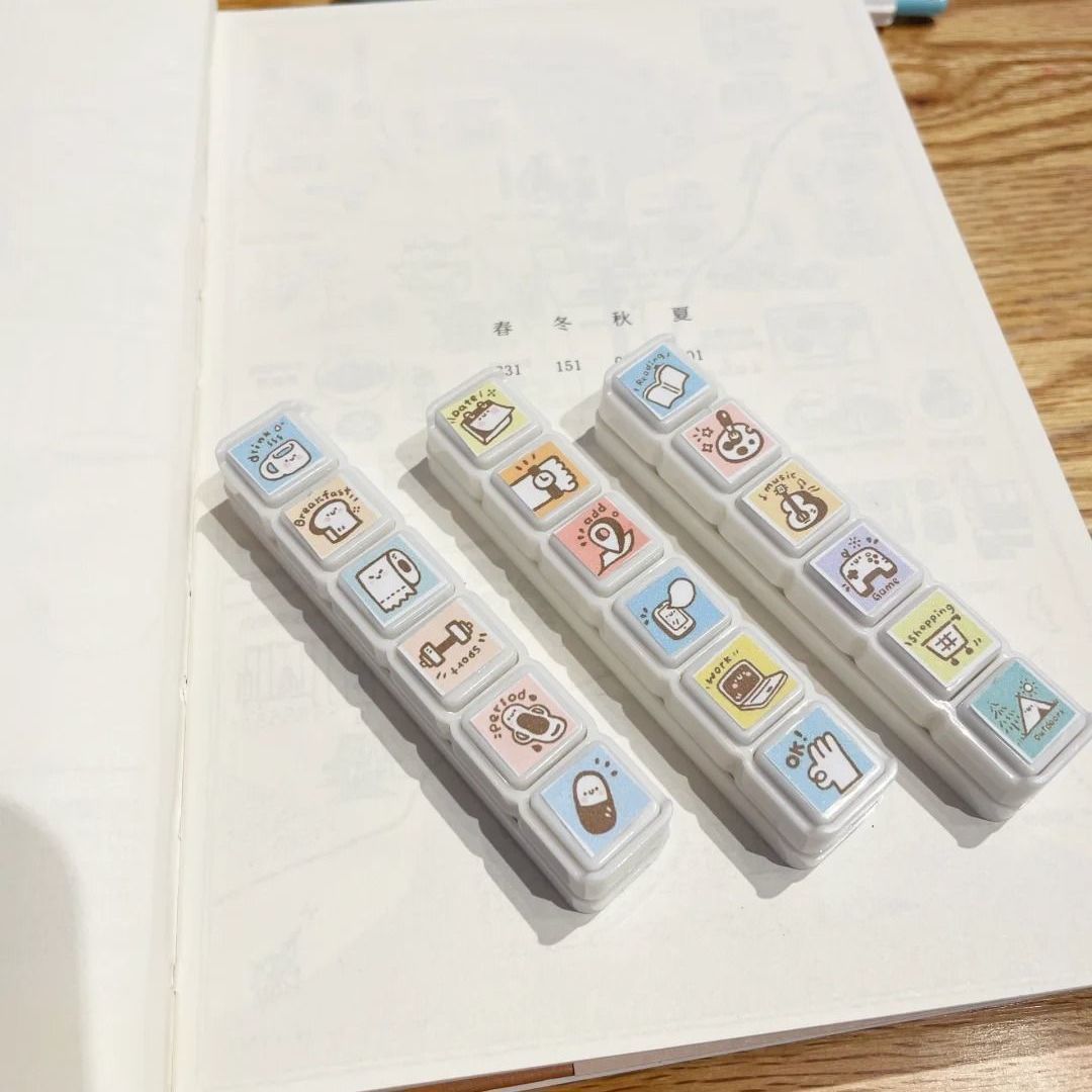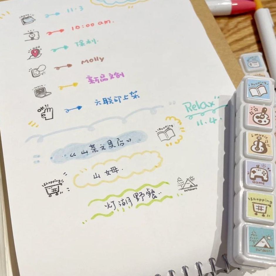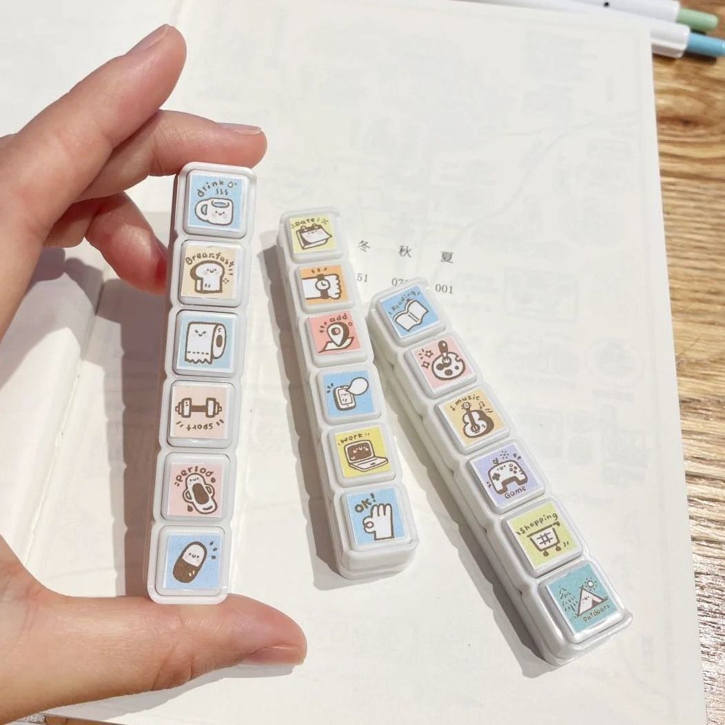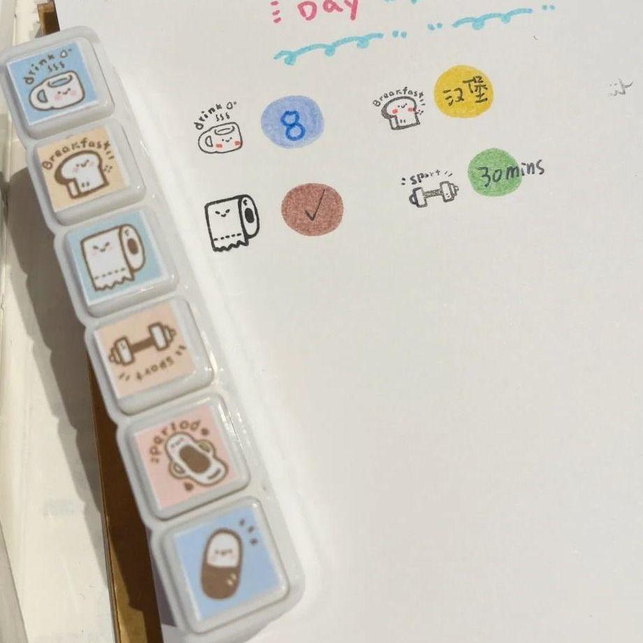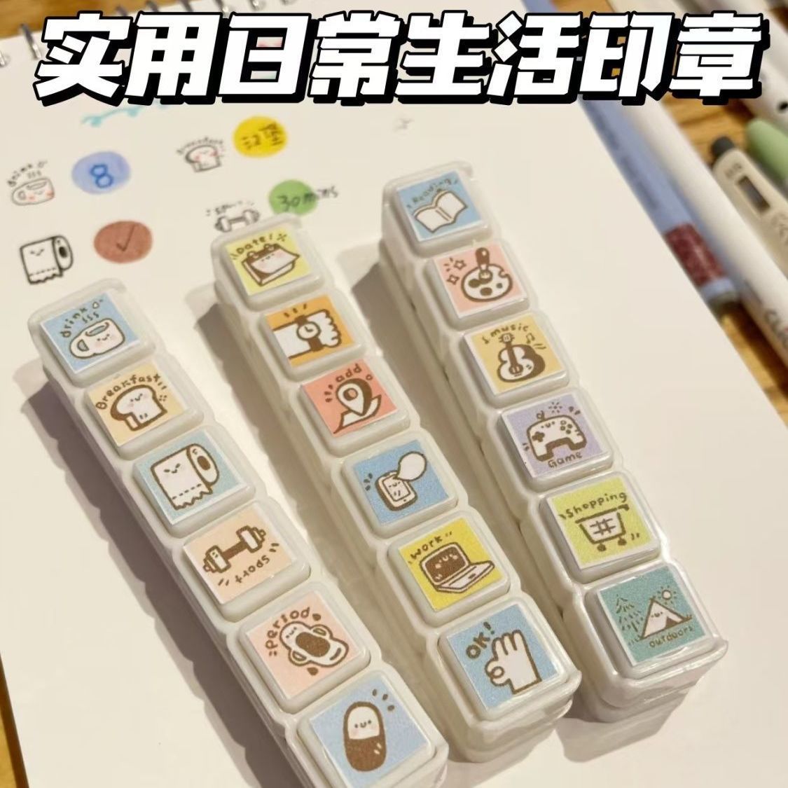 Xiaohongshu의 일상 작업과 같은 스타일 캐주얼 6인 조합 계정 스탬프 귀여운 만화 창의적인 버튼 스탬프 전체 세트스토어 가기