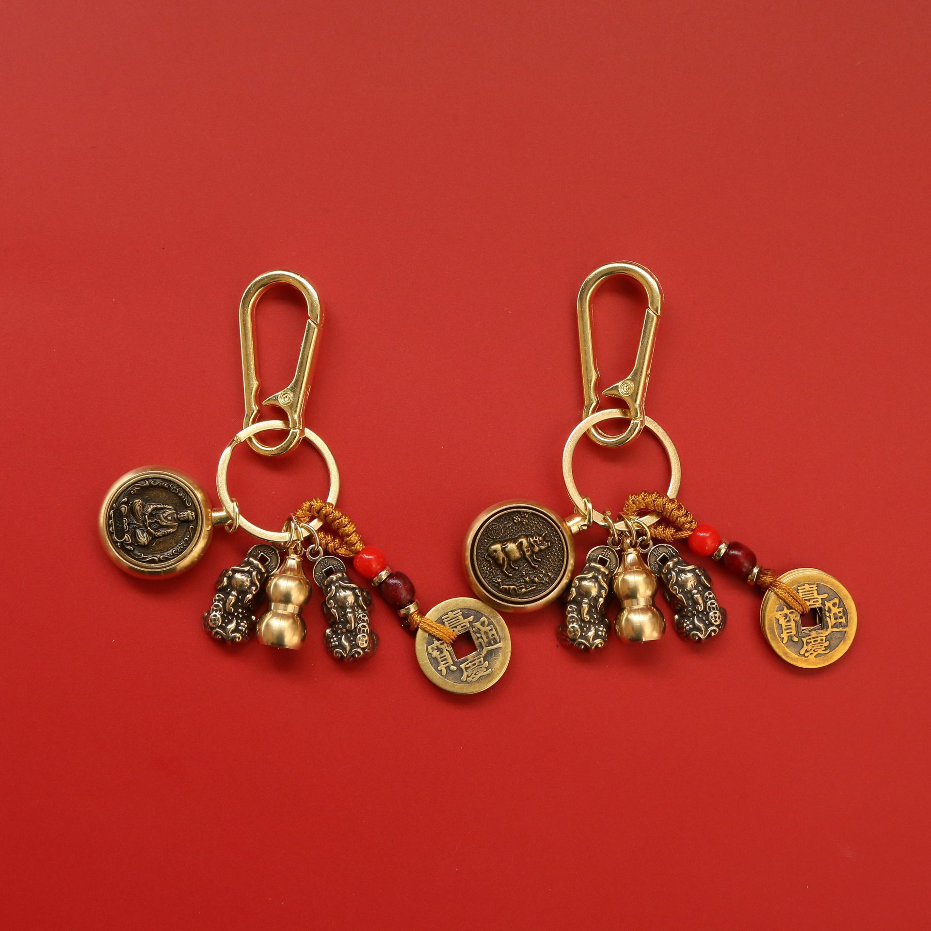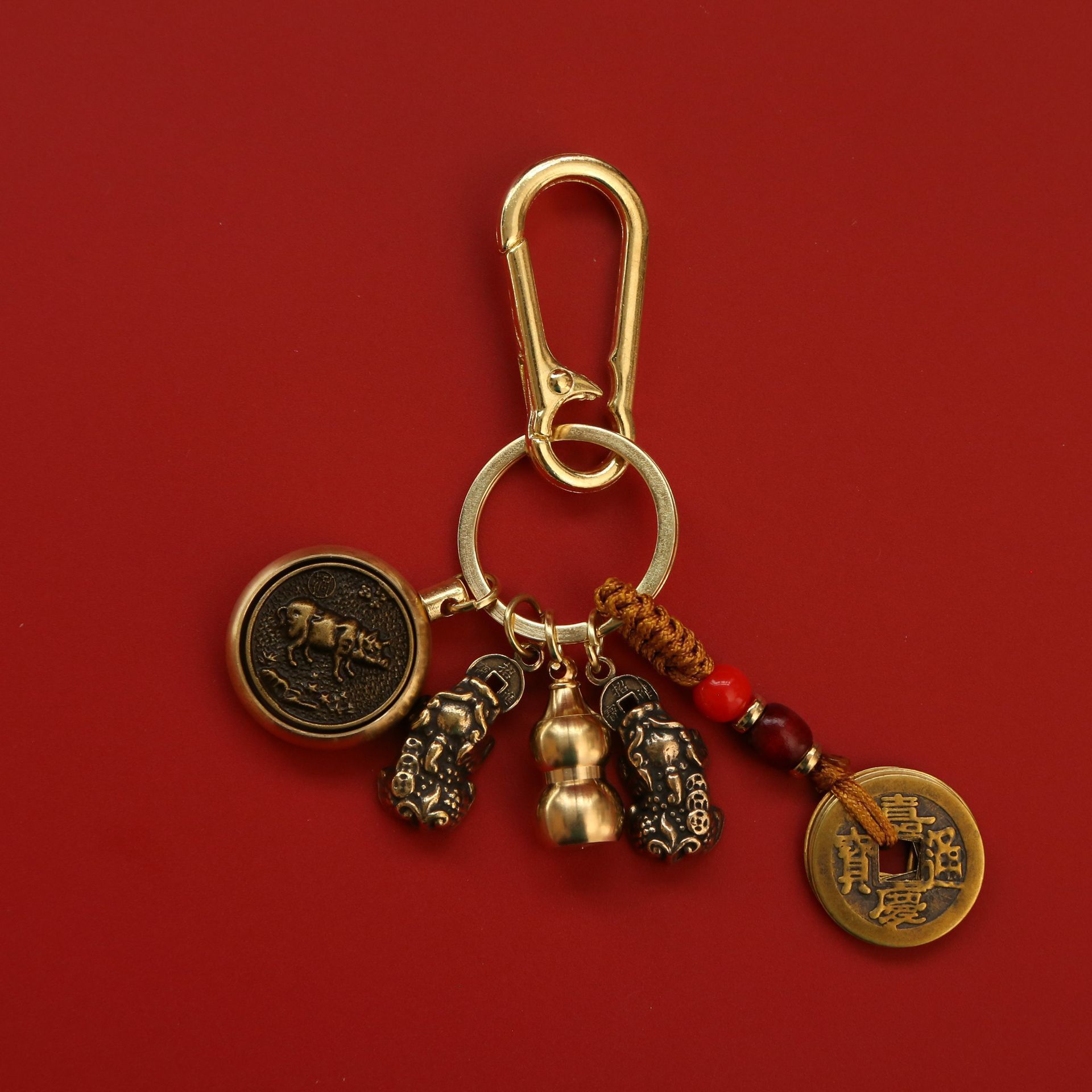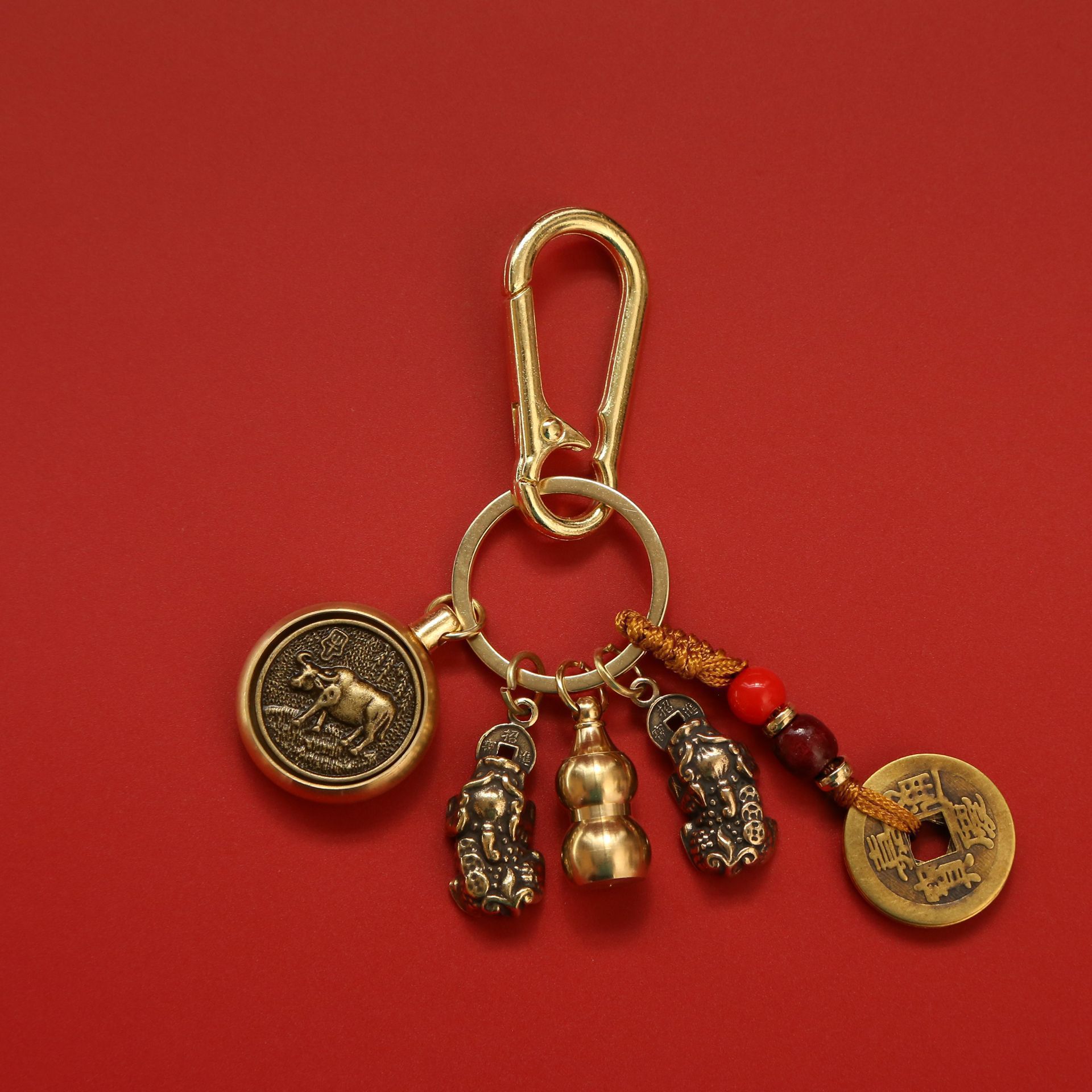 • [황도대 황소] Zhuanzhuan + 더블 Pixiu + 조롱박 + 노란색 밧줄 오제 동전 + 버클