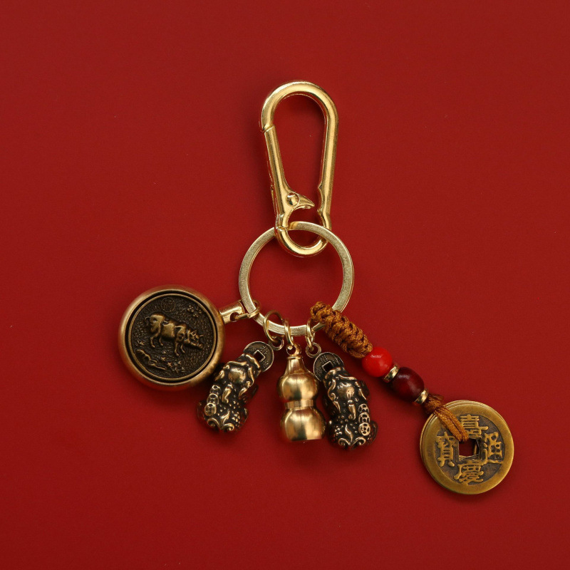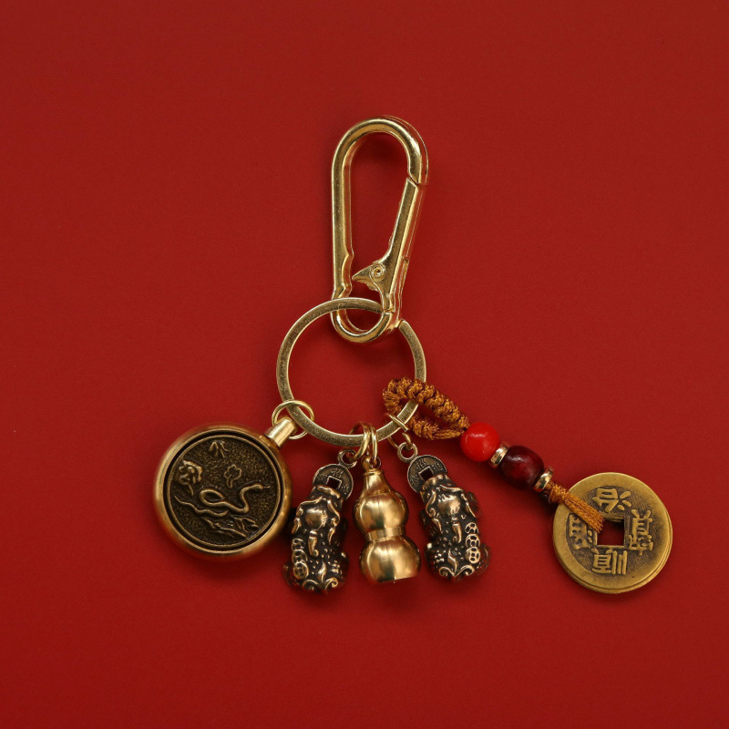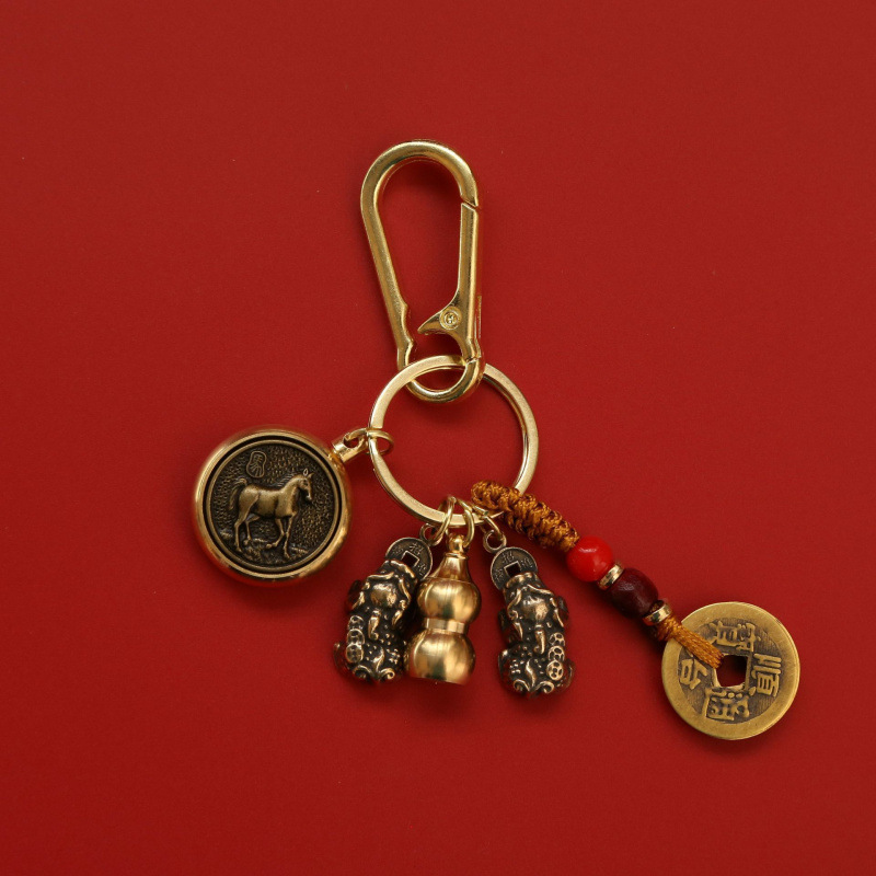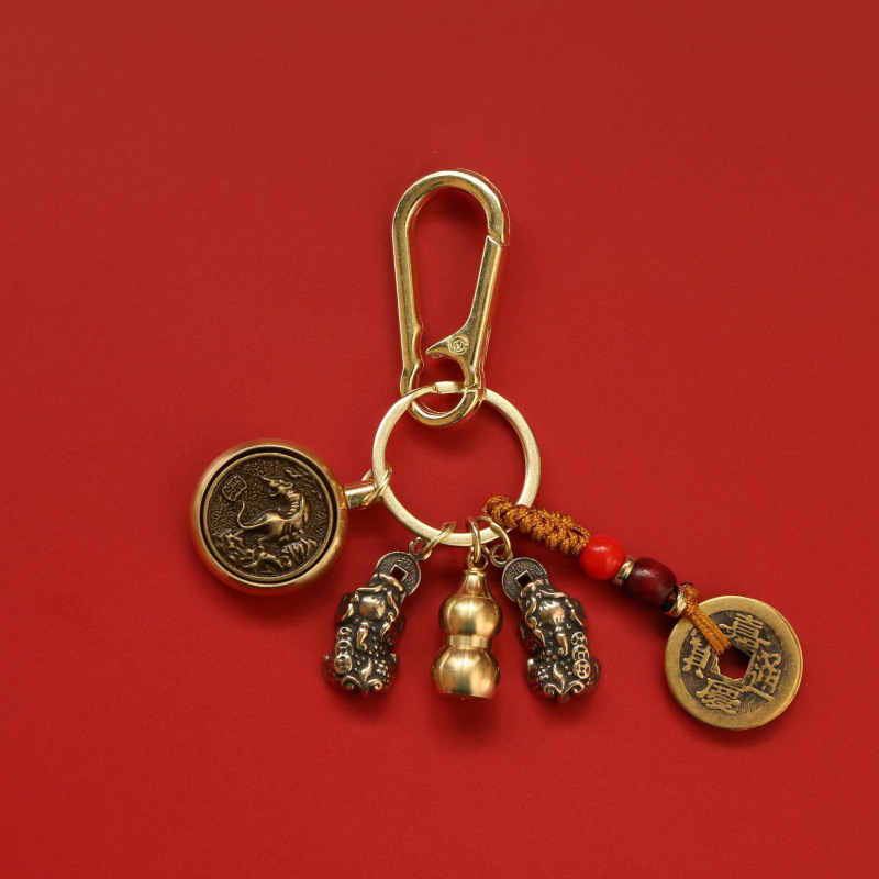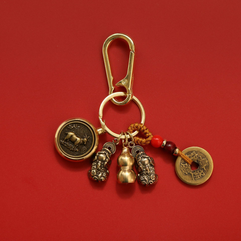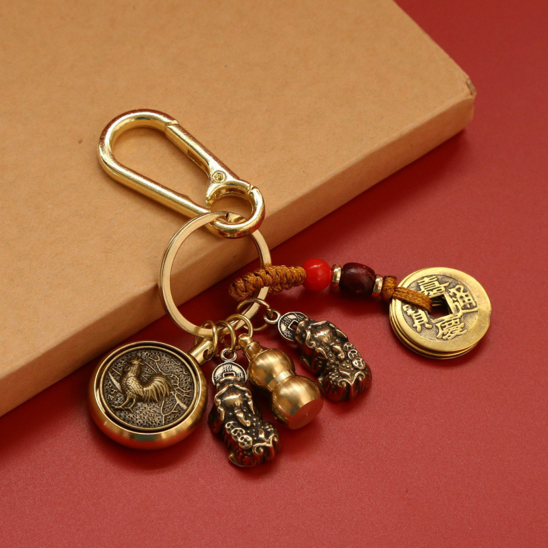 순수 황동 Pixiu 열쇠 고리 회전 자동차 펜던트 12 조디악 8 대천사 회전 5 황제 돈 펜던트스토어 가기