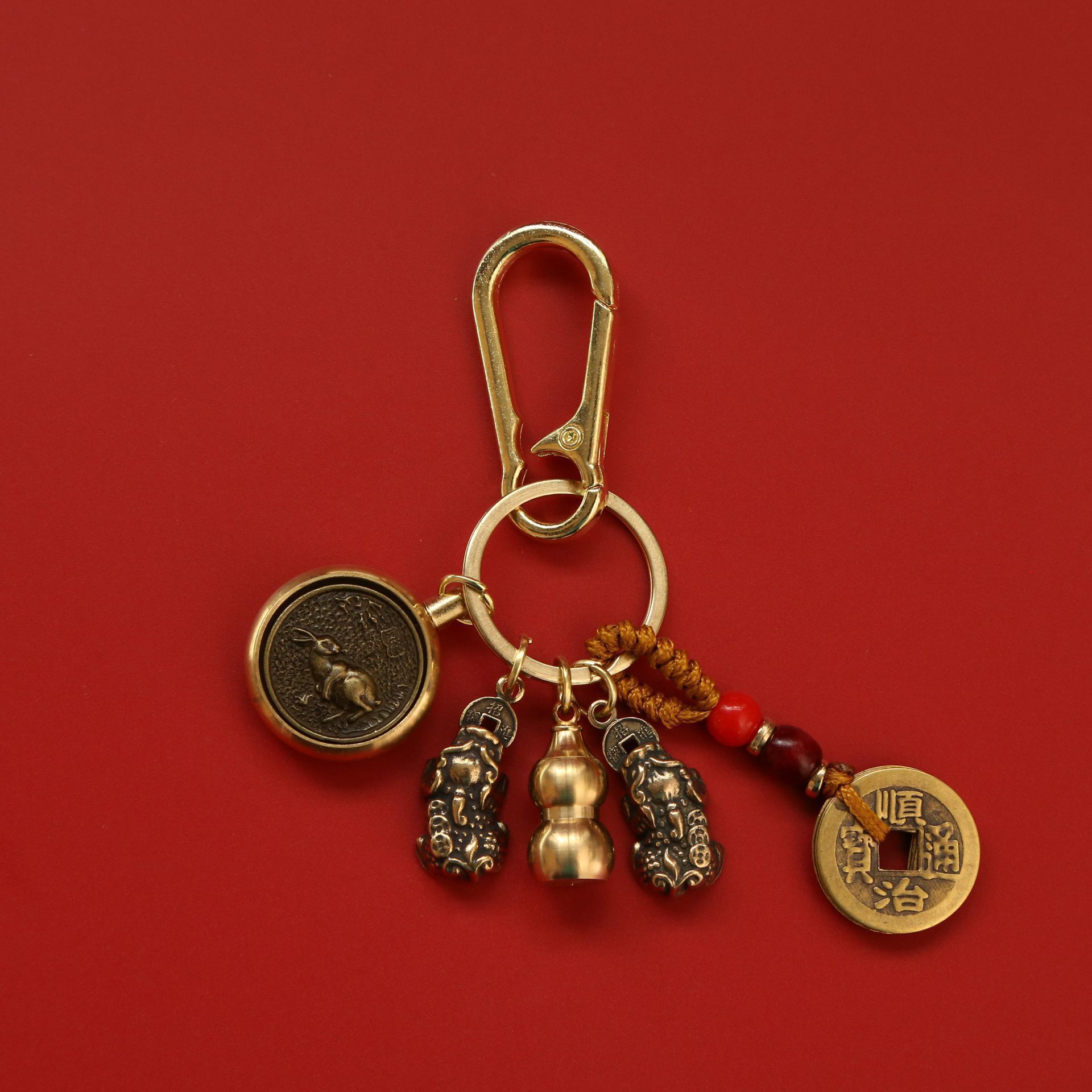 • [십이지토끼] Zhuanzhuan + 더블 Pixiu + 조롱박 + 노란 밧줄 오제 동전 + 버클