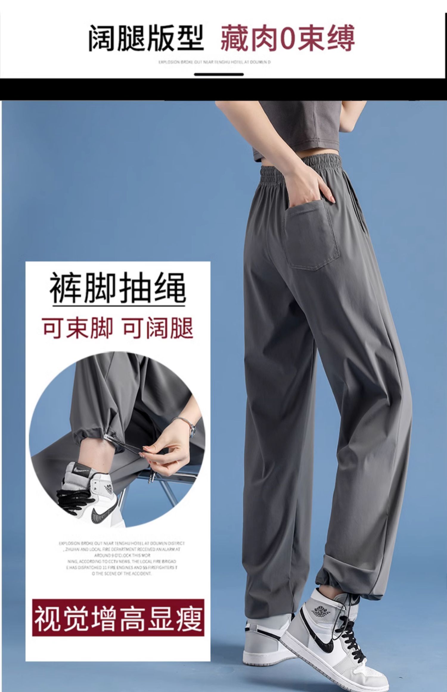 여름 여성을 위한 미국산 아이스 실크 속건성 스포츠 바지, 얇은 캐주얼 뚱뚱한 mm 등산 자외선 차단 바지, 등산용 대형 와이드 레그스토어 가기