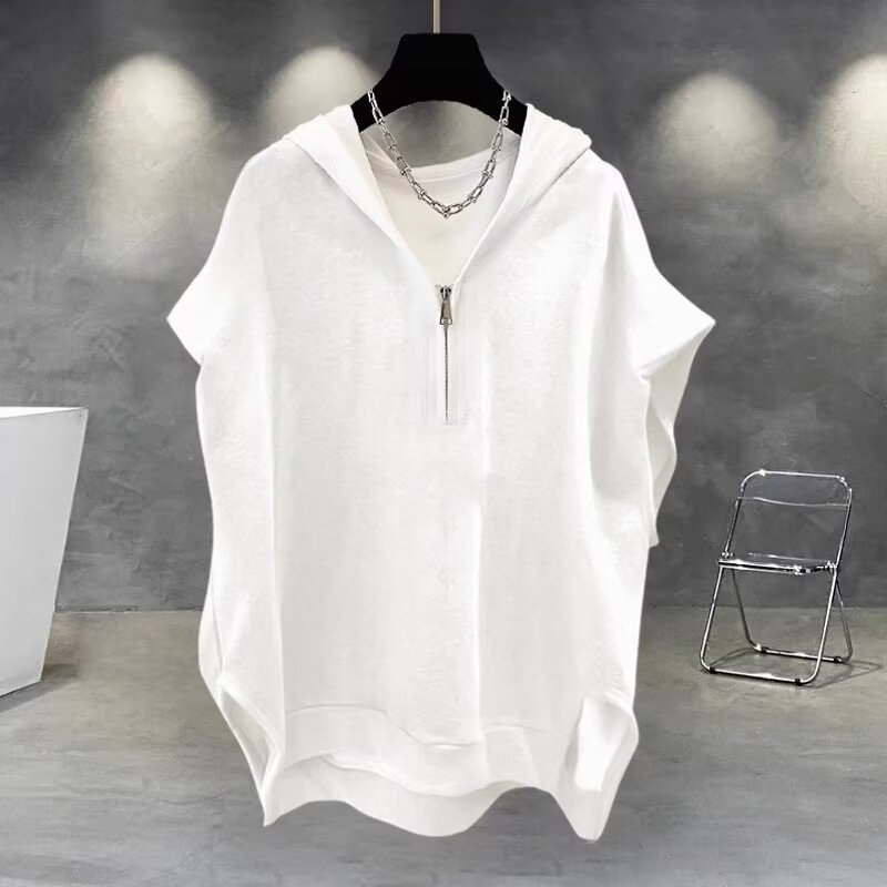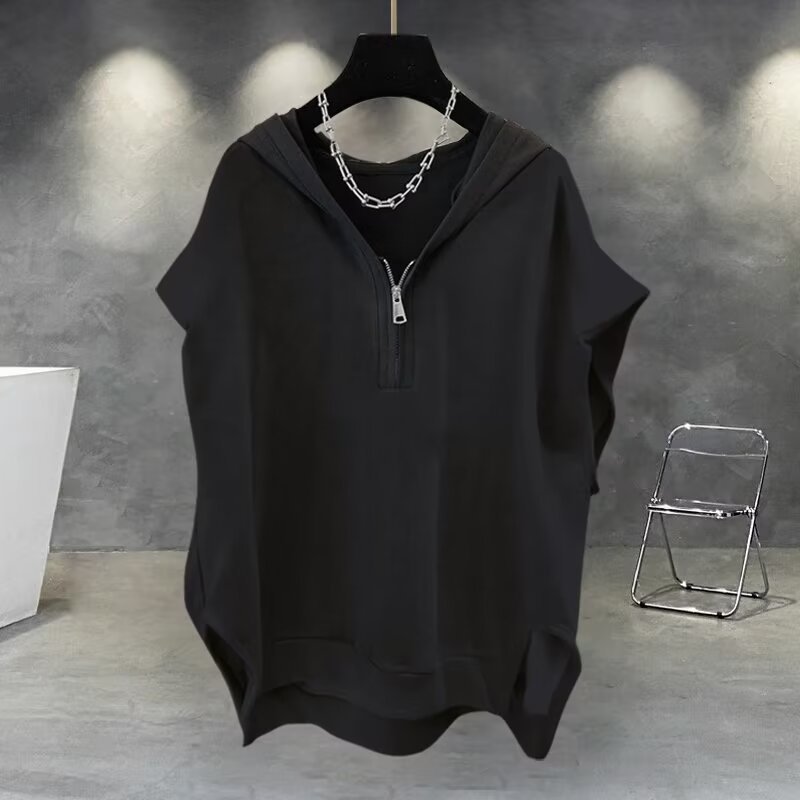 솔리드 컬러 지퍼 후드 민소매 티셔츠 남성 여름 ins 한국어 버전 트렌디 다목적 잘 생긴 캐주얼 루즈 조끼 조끼