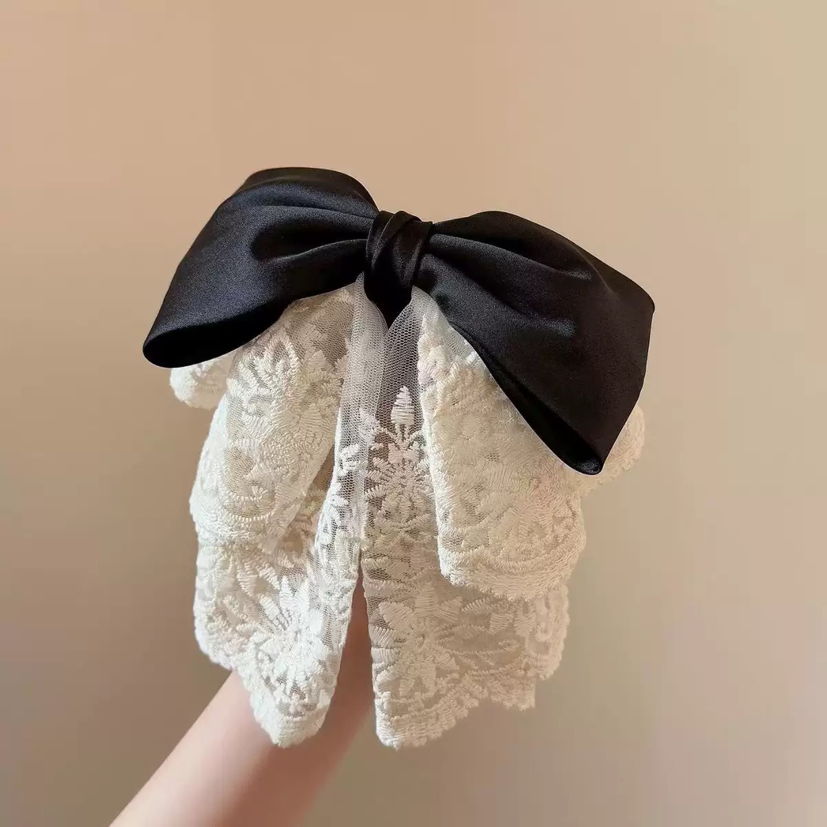 • 베이지 레이스 리본 포니테일 클립