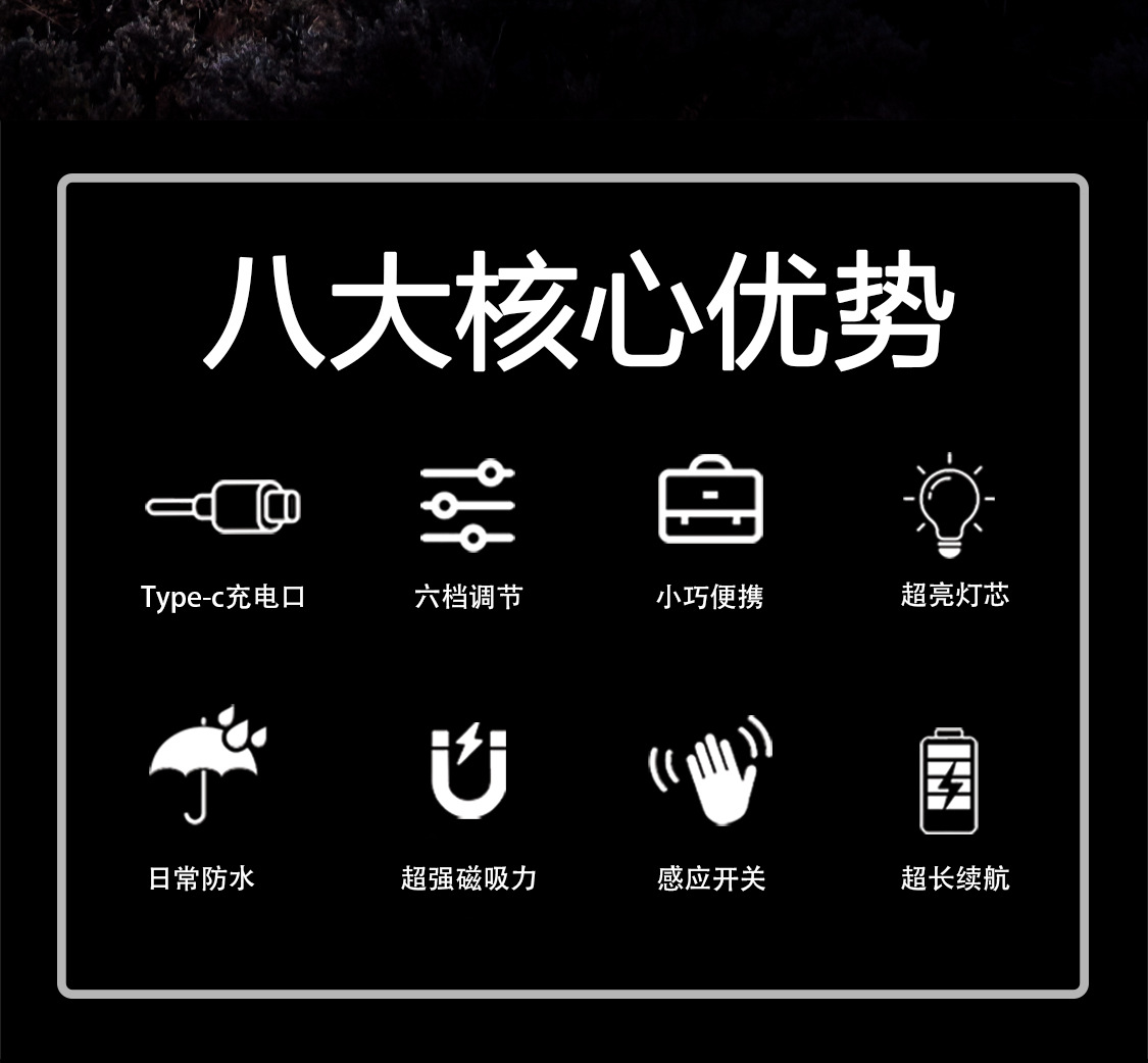 국경 간 야외 유도 달리기 자기 램프 다기능 사이클링 서치 강한 빛 헤드 라이트 유형-c 충전식 캠핑 램프스토어 가기