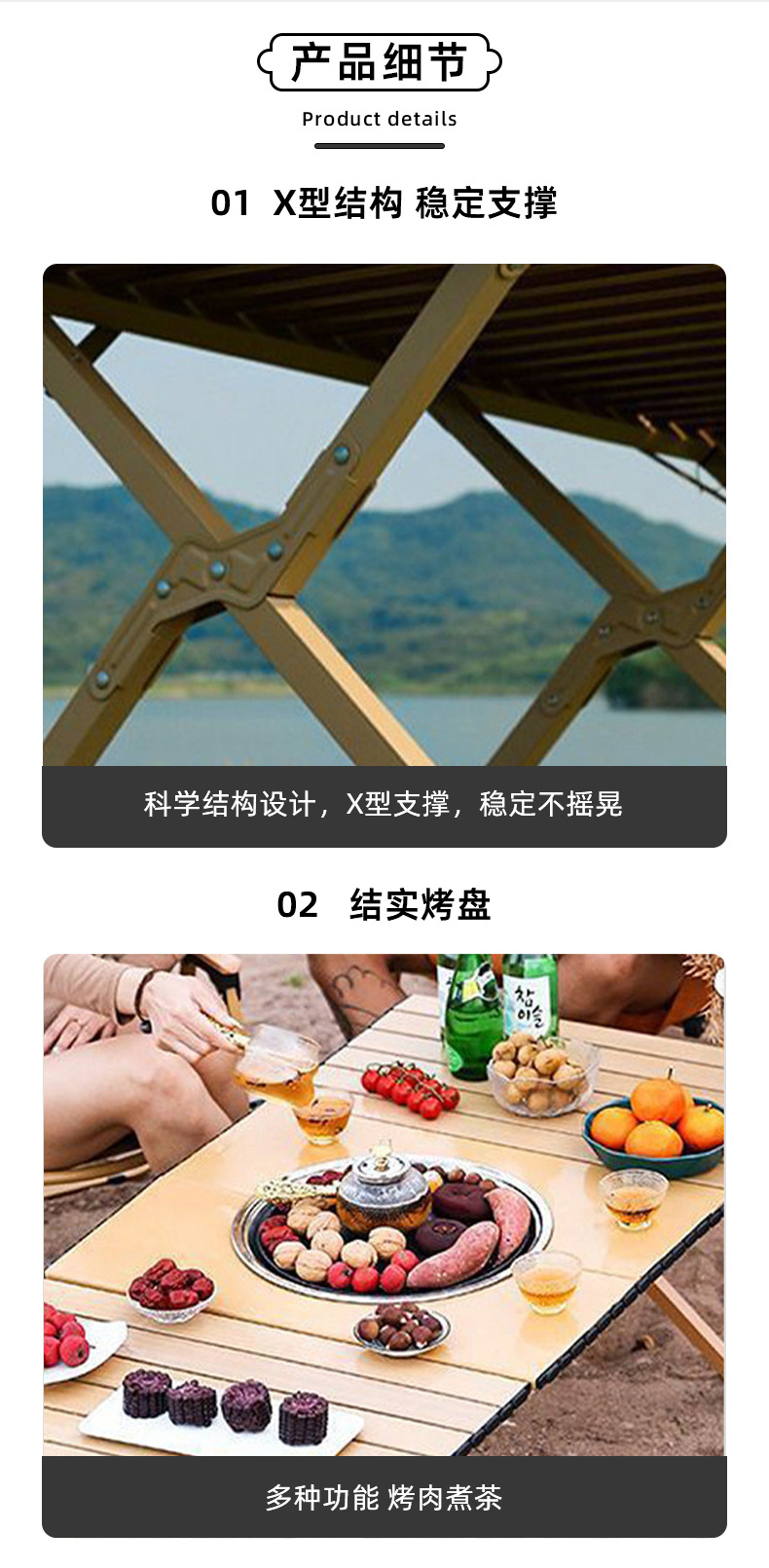 야외 접이식 테이블 캠핑 휴대용 바베큐 피크닉 테이블 가정용 캠핑 바베큐 접이식 화로 테이블