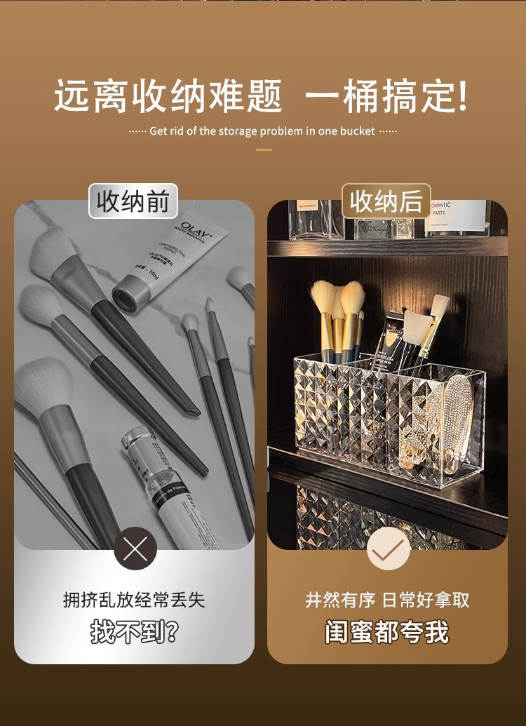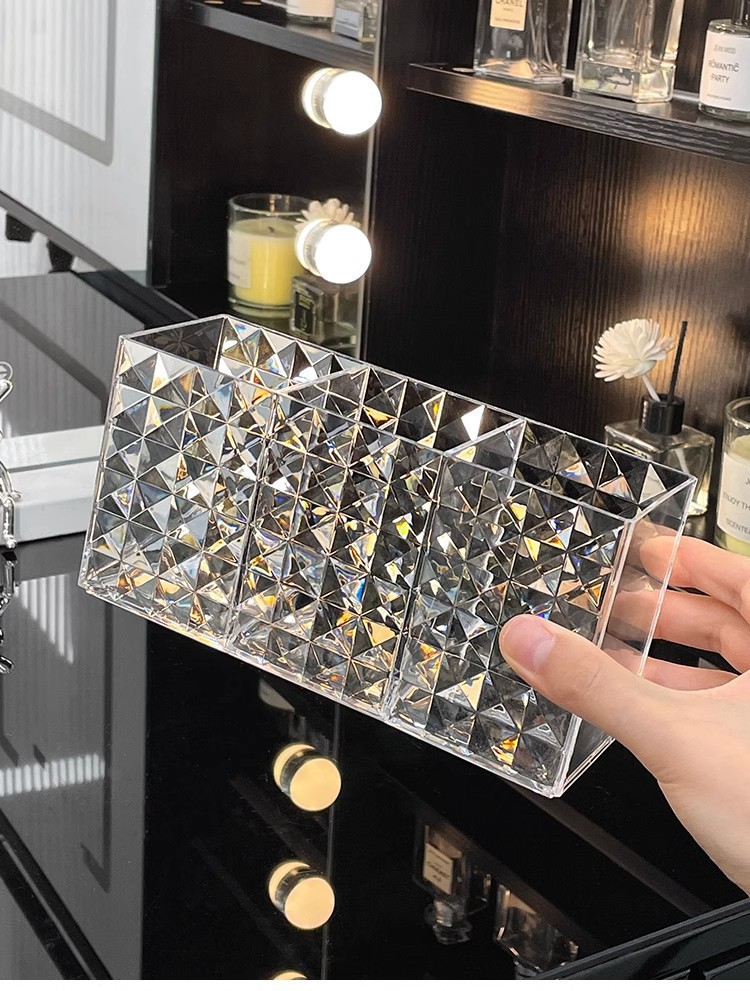 다이아몬드 패턴 고급스러운 아크릴 펜 홀더 학생 데스크탑 보관함 사무실 문구 투명 책상 칸막이 펜 홀더스토어 가기