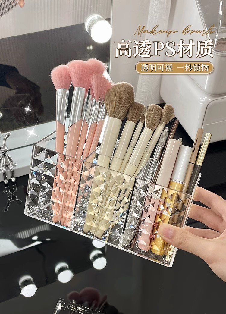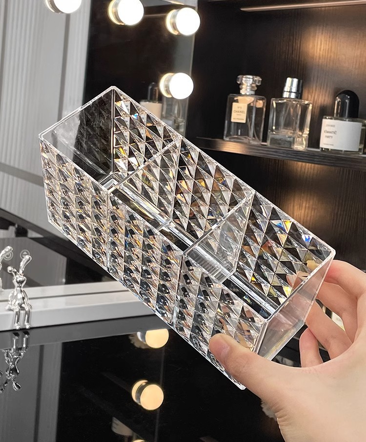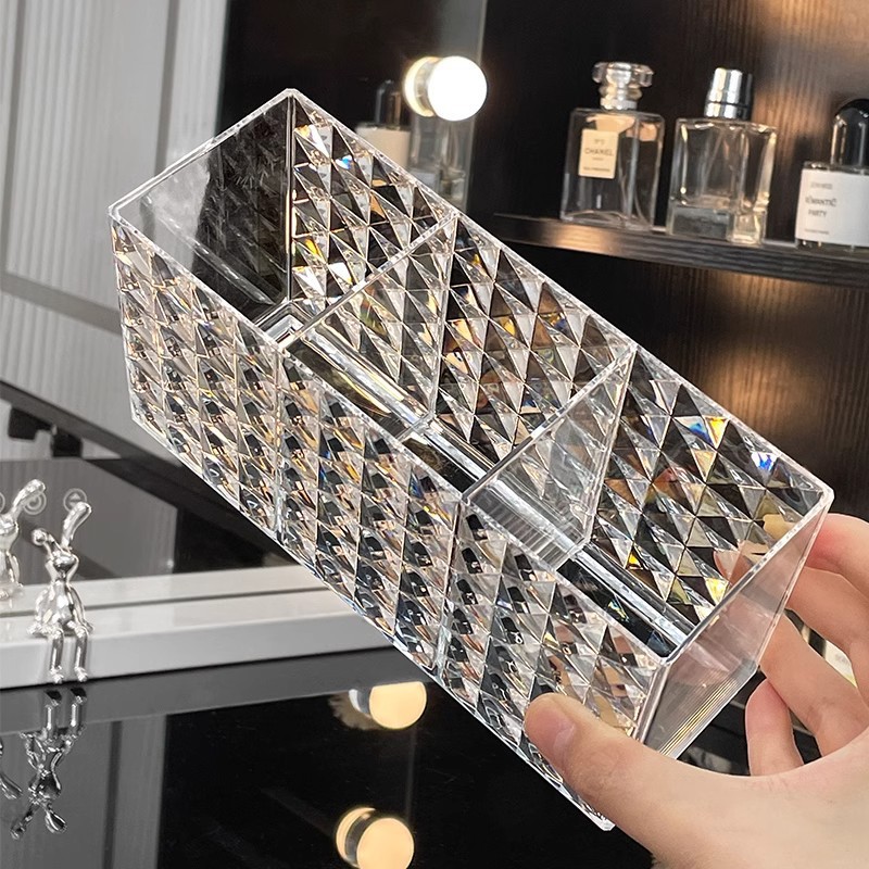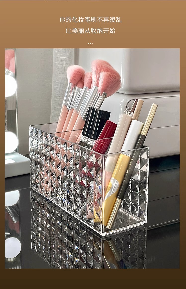 다이아몬드 패턴 고급스러운 아크릴 펜 홀더 학생 데스크탑 보관함 사무실 문구 투명 책상 칸막이 펜 홀더