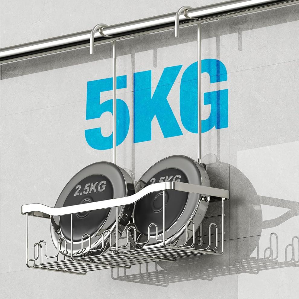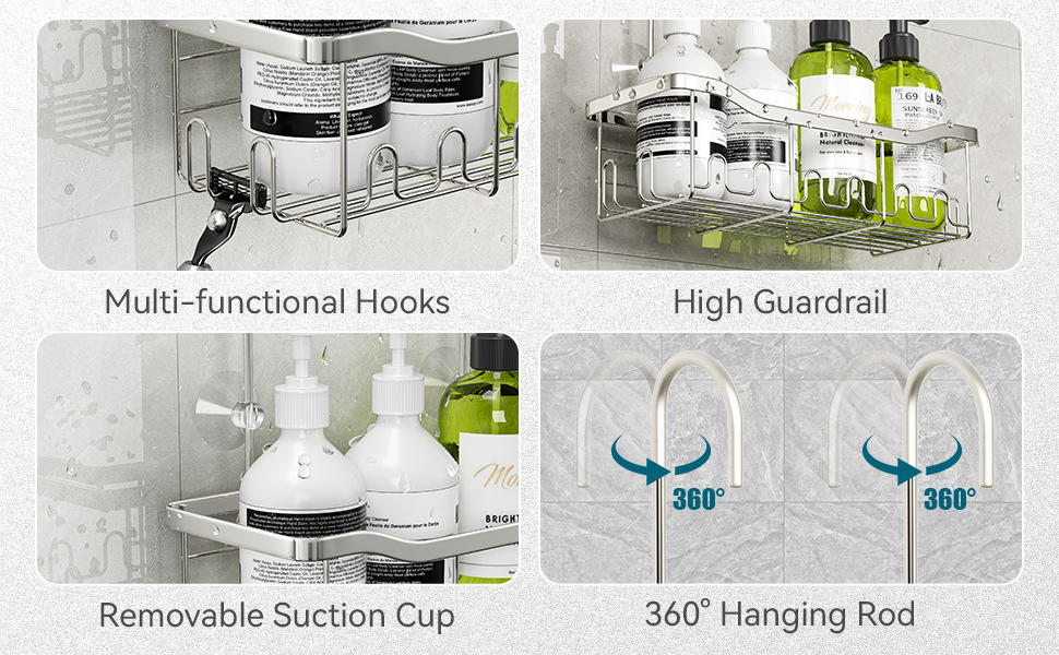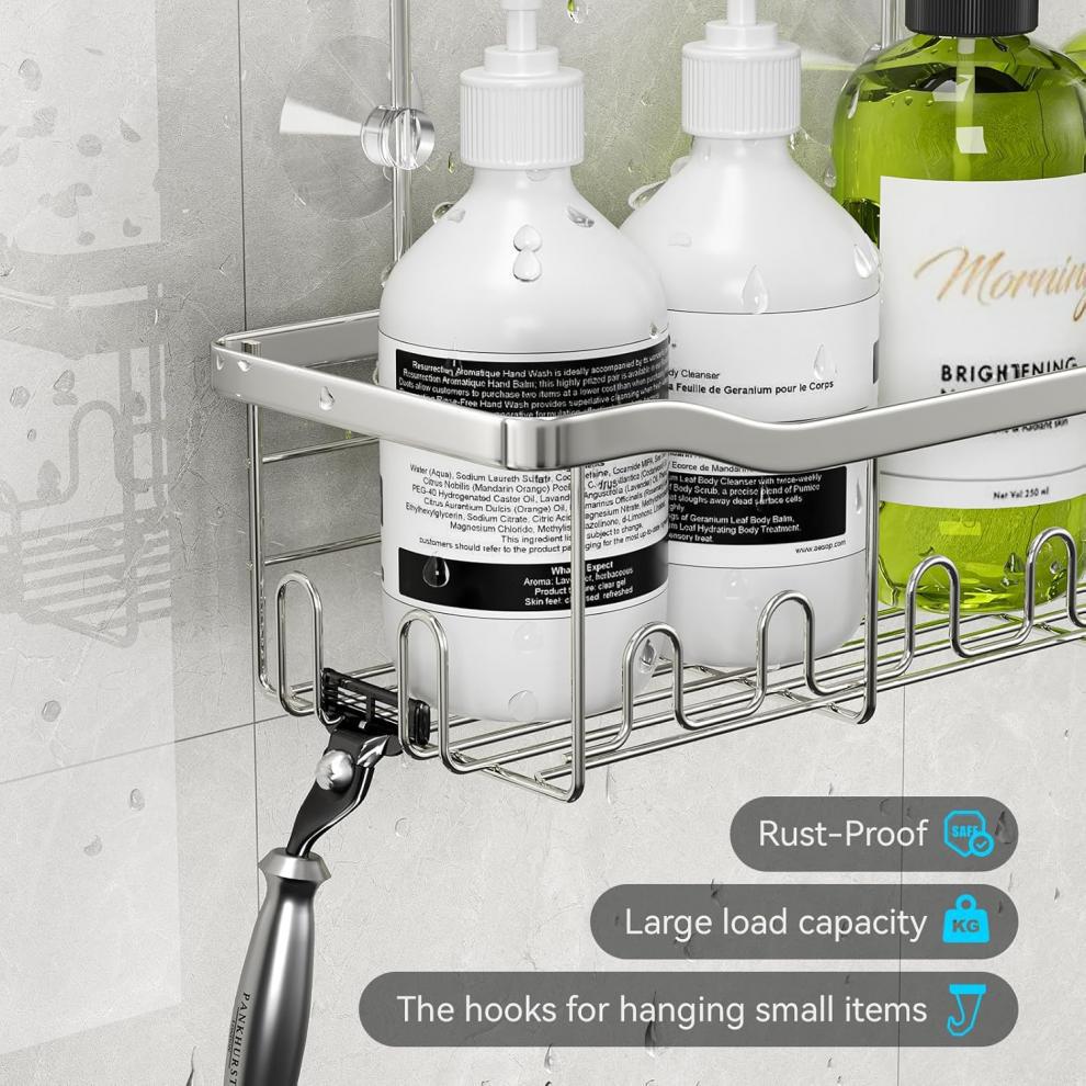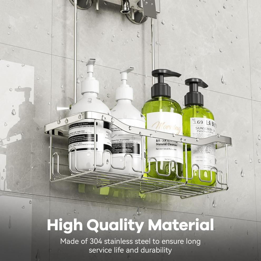 후크가 있는 걸이형 정리함 바구니 샤워 수도꼭지 또는 레일용 드릴링이 필요 없는 보관함