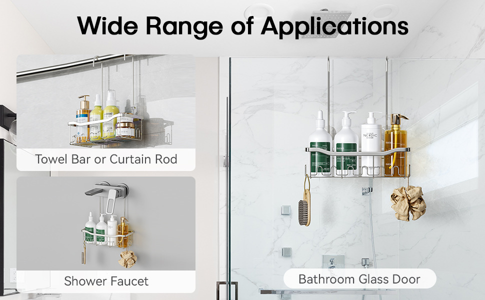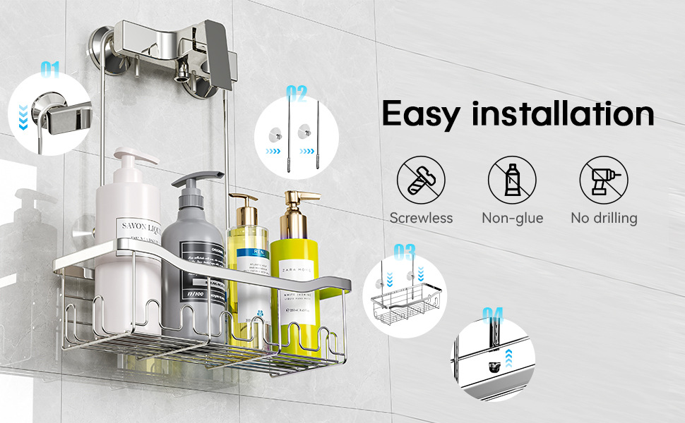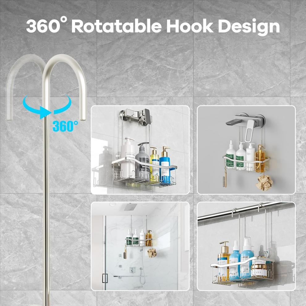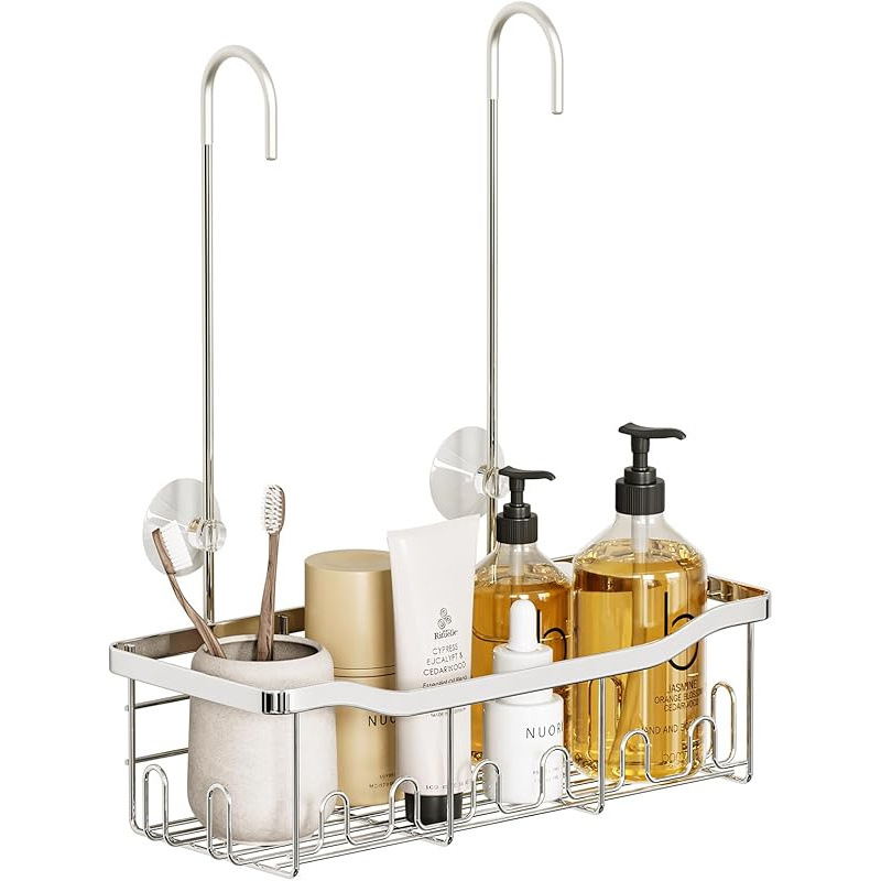 후크가 있는 걸이형 정리함 바구니 샤워 수도꼭지 또는 레일용 드릴링이 필요 없는 보관함스토어 가기