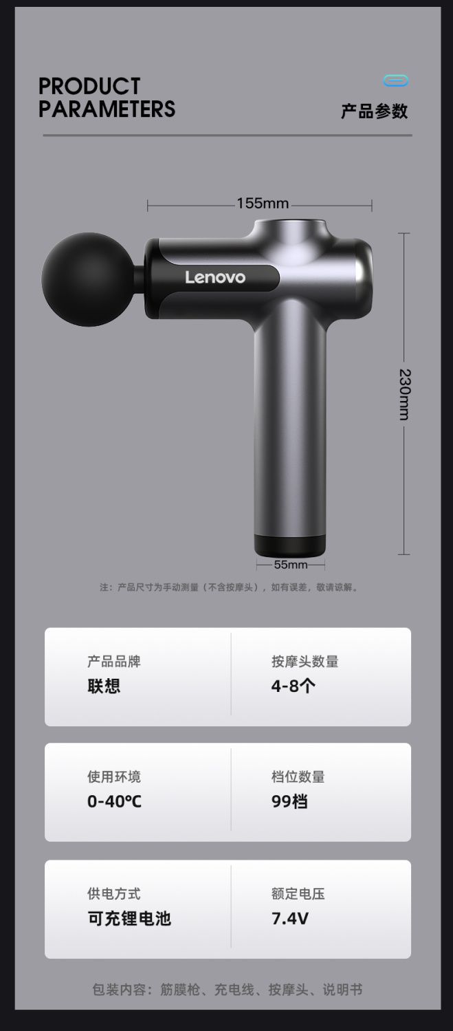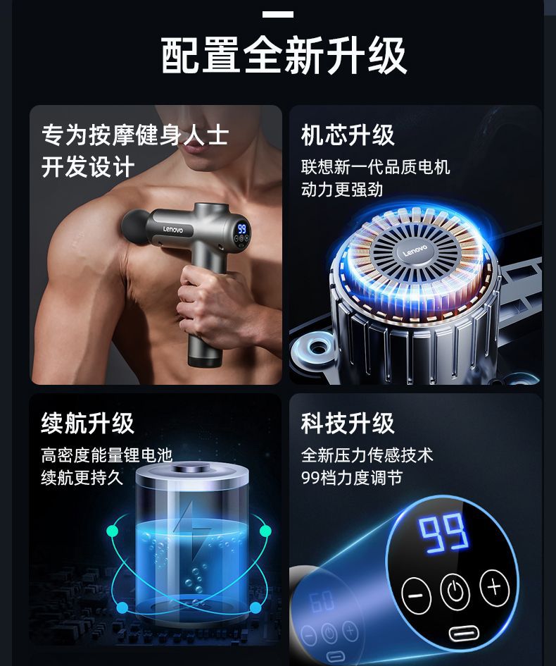 레노버 근막건 근육 마사지기 남성 전용 마사지건 전기 릴렉스 홈용 전문가급 목 마사지건