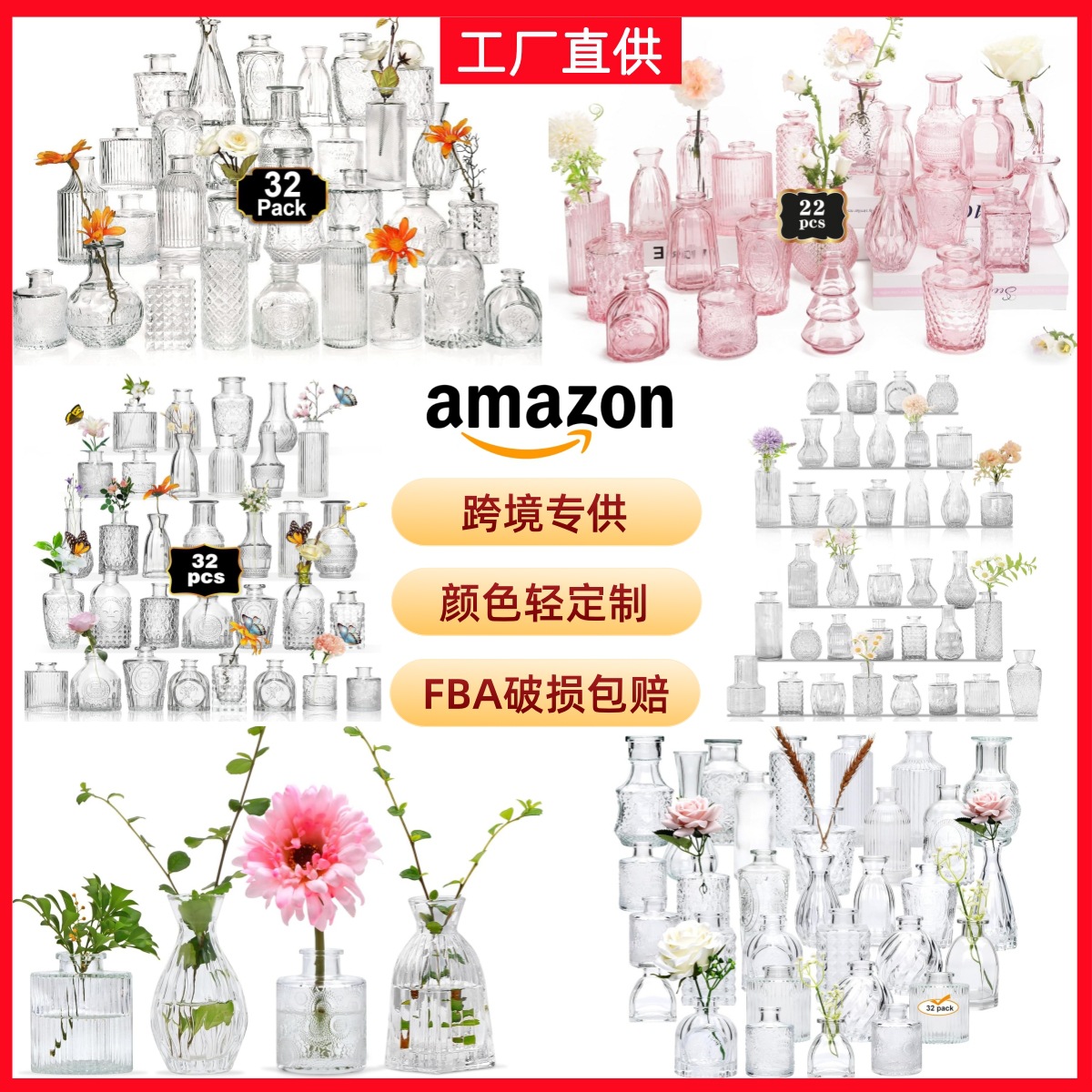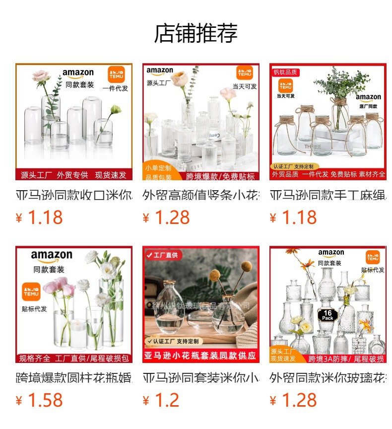 아마존의 인기 꽃병 세트 미니 유리 꽃병 웨딩 거실 식탁 장식 꽃병 장식품스토어 가기