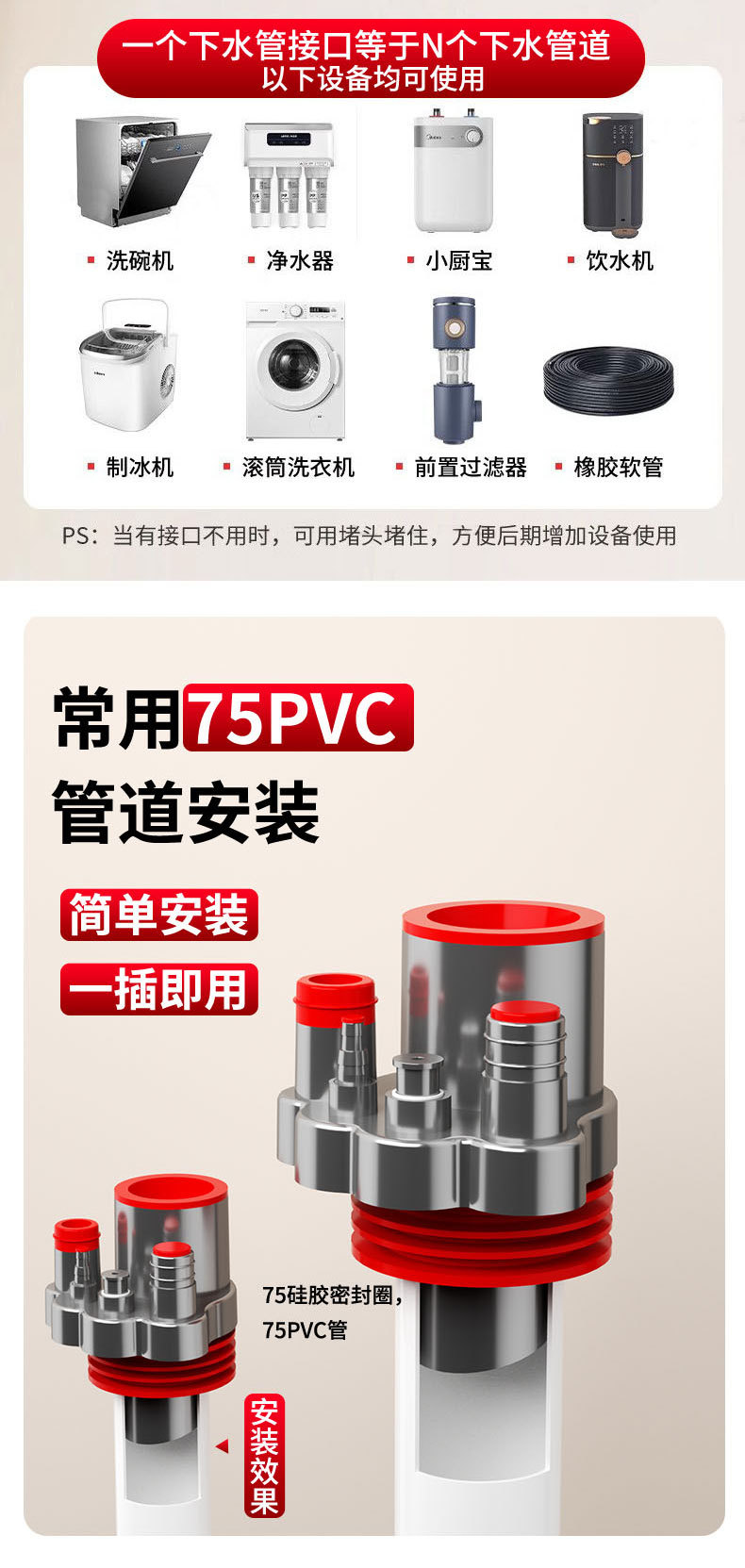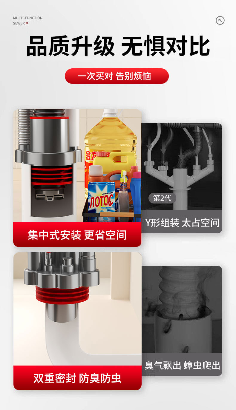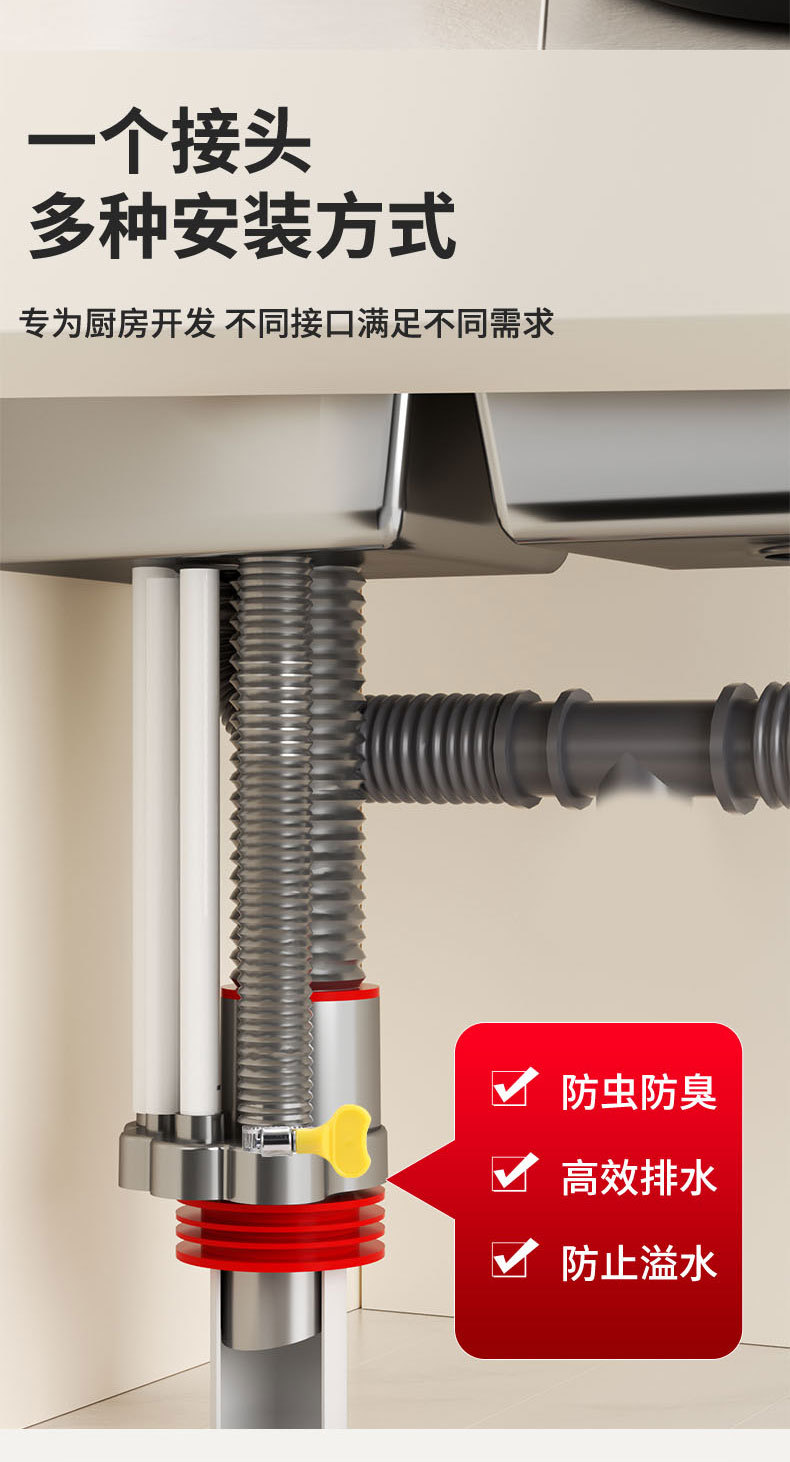 주방 하수관 3구 주방 및 욕실 식기세척기 싱크대 배수 하수관 다기능 냄새 방지 유물스토어 가기