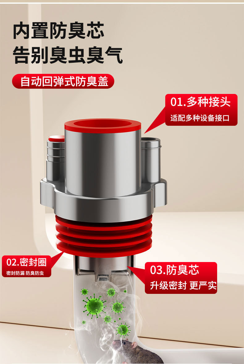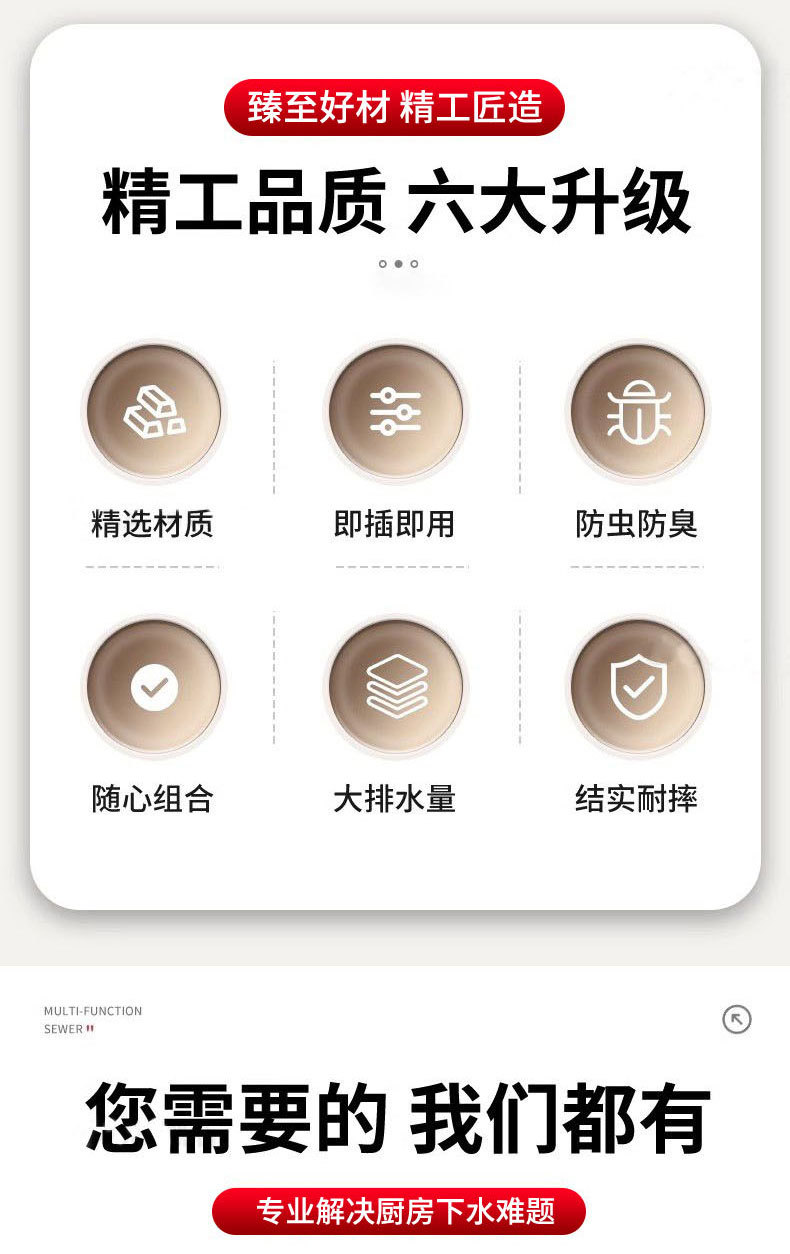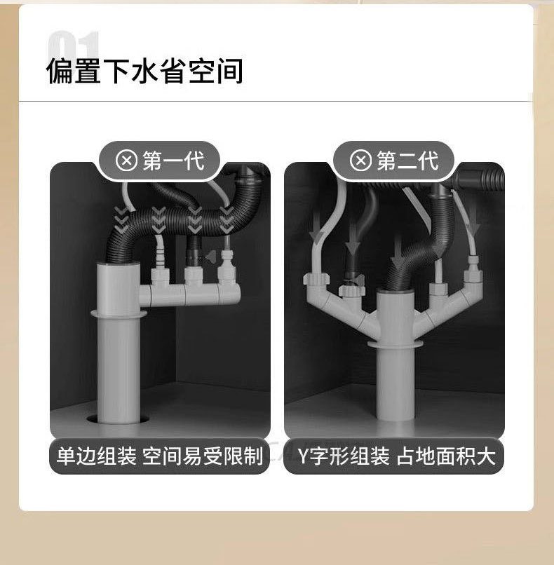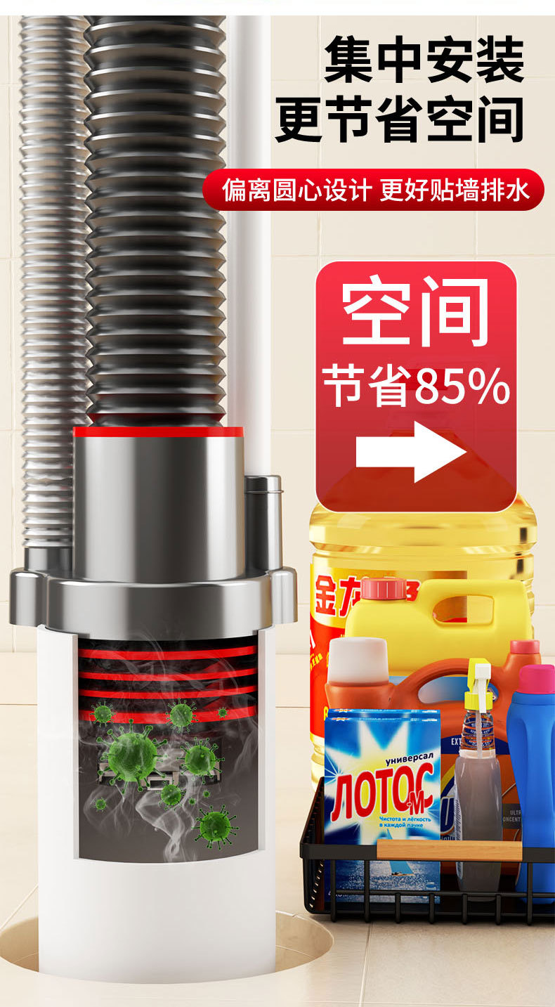 주방 하수관 3구 주방 및 욕실 식기세척기 싱크대 배수 하수관 다기능 냄새 방지 유물스토어 가기
