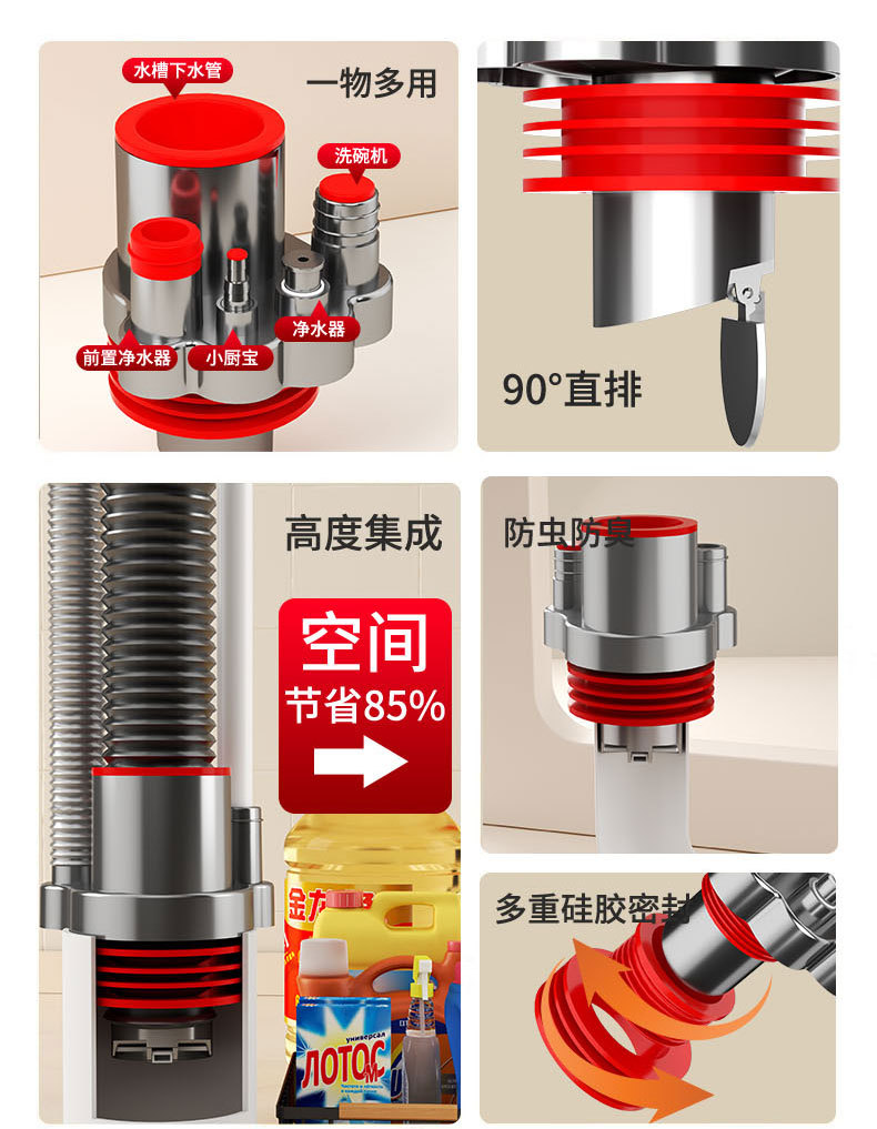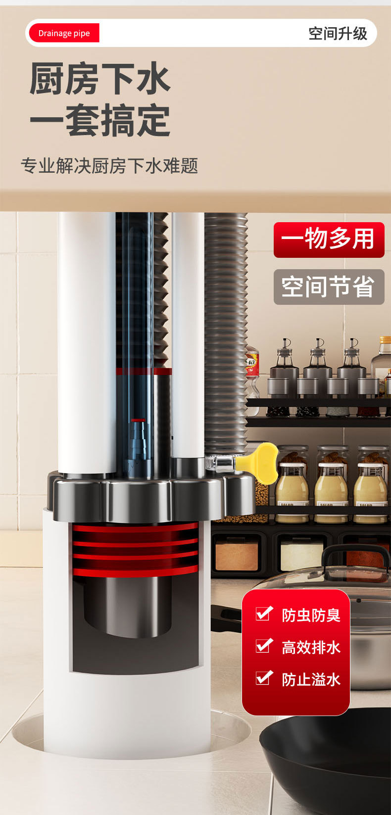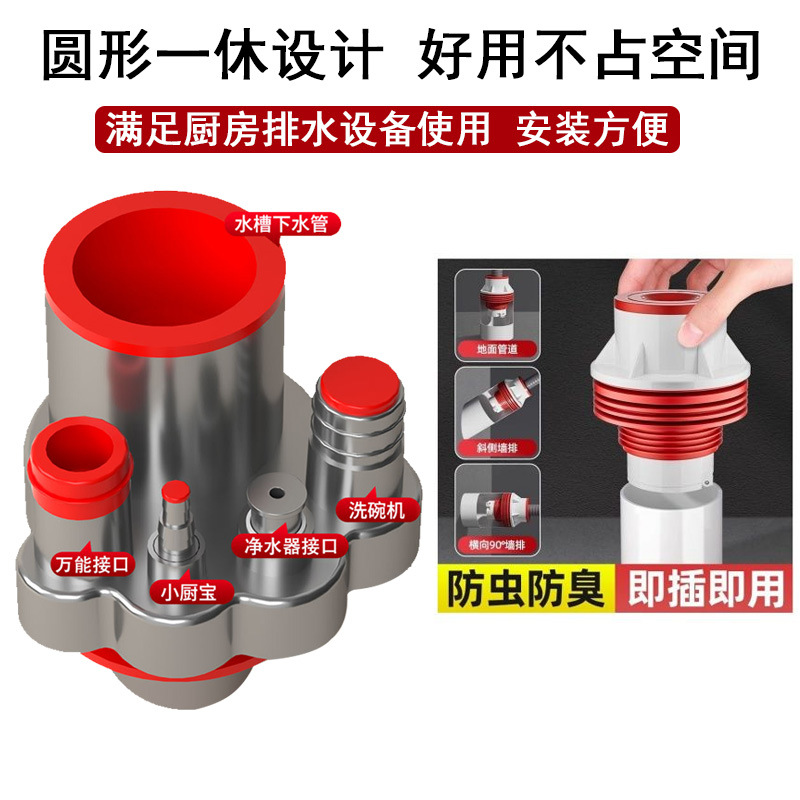 주방 하수관 3구 주방 및 욕실 식기세척기 싱크대 배수 하수관 다기능 냄새 방지 유물