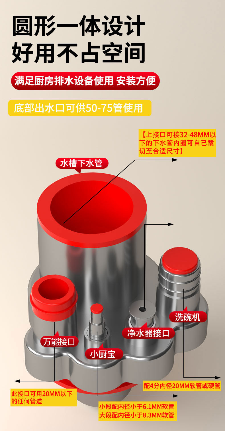 • 주방 5방향(50/75 튜브 범용) 흰색, 파란색 및 빨간색 스타일