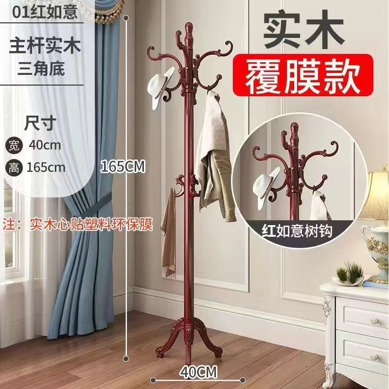 옷걸이 바닥 침실 두꺼운 유럽식 단단한 나무 옷걸이 간단한 현대 가정용 가방 걸이 단일 막대 수직스토어 가기