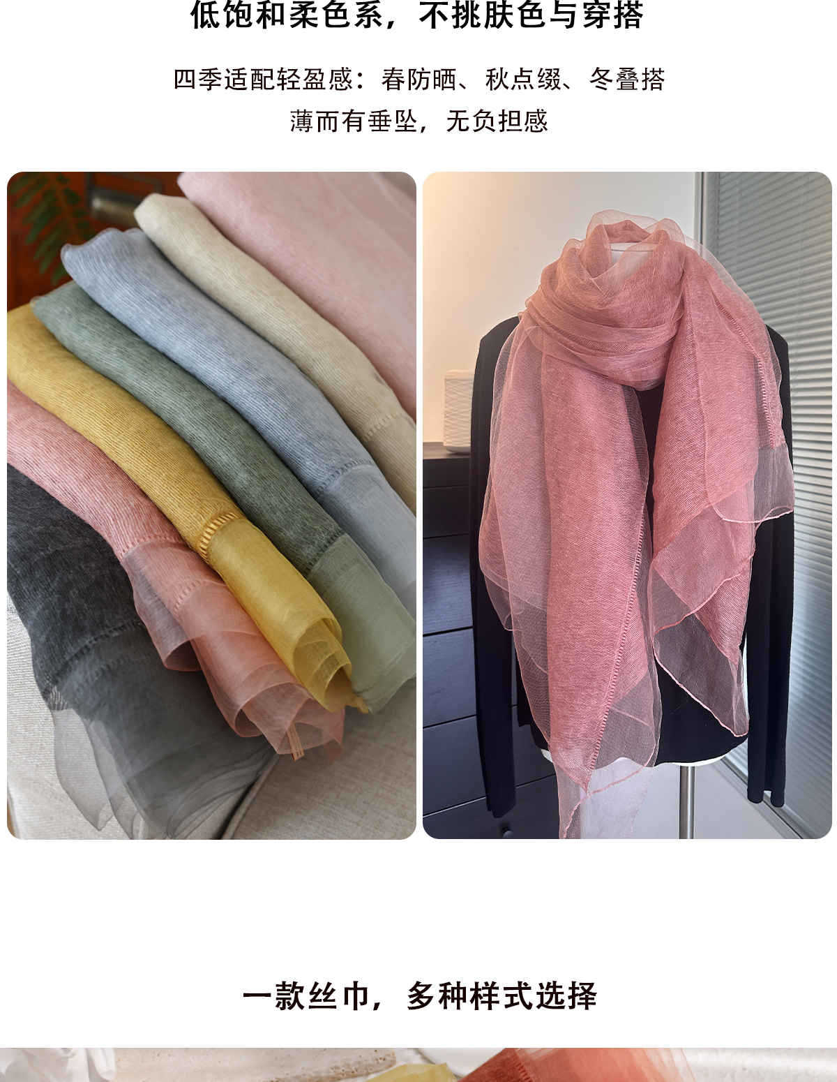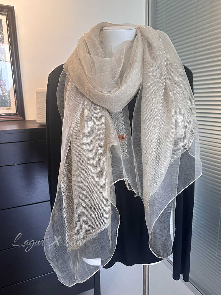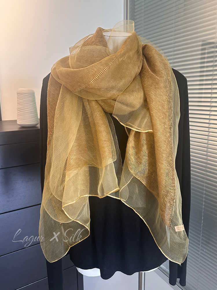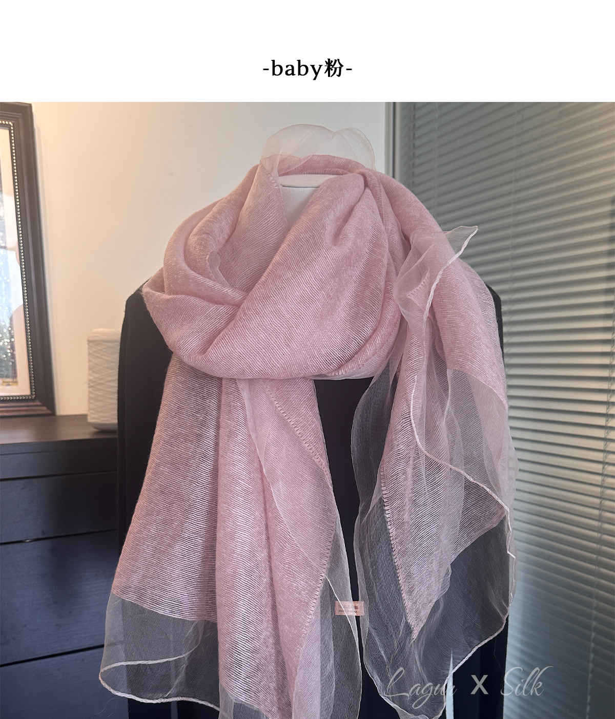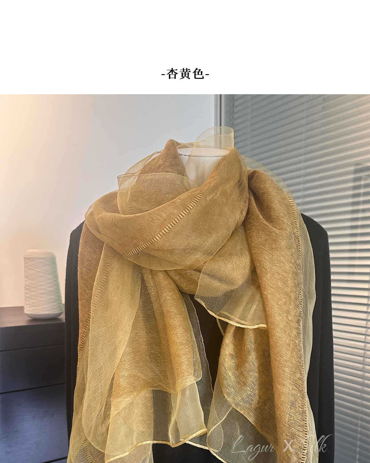 "골든 베이지" 실크 혼방 가벼운 실크 스카프 뽕나무 실크 플러스 사이즈 숄 스카프 자외선 차단 및 여성스러운 외투스토어 가기