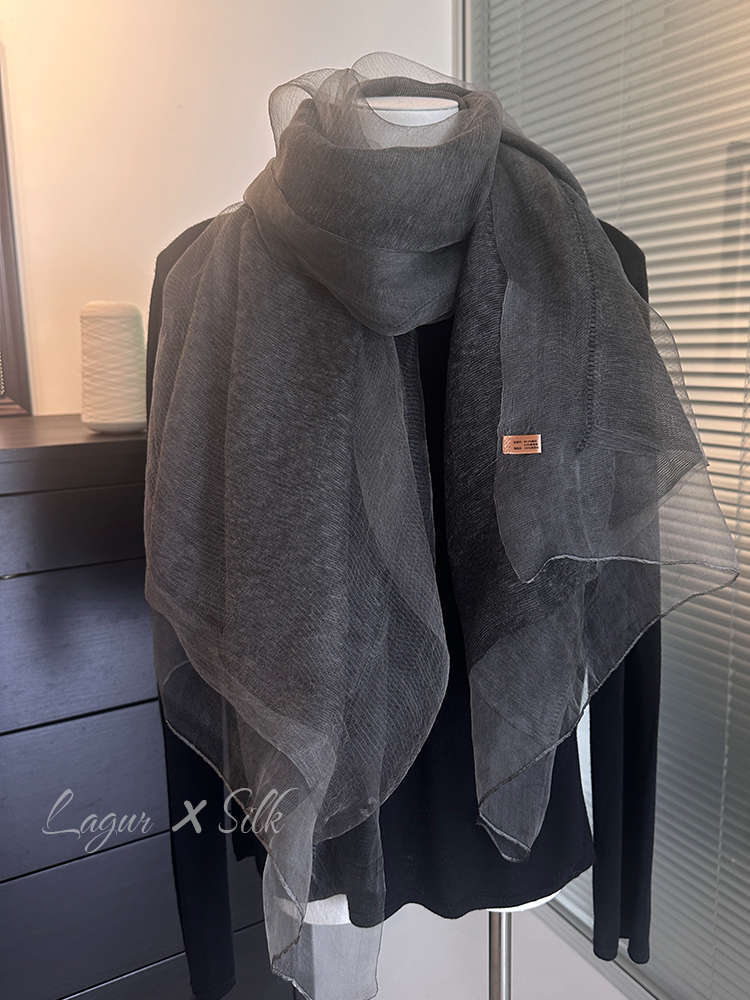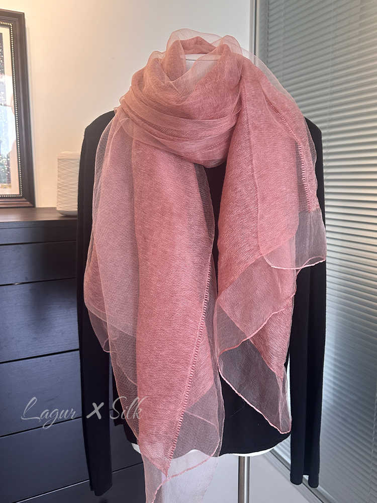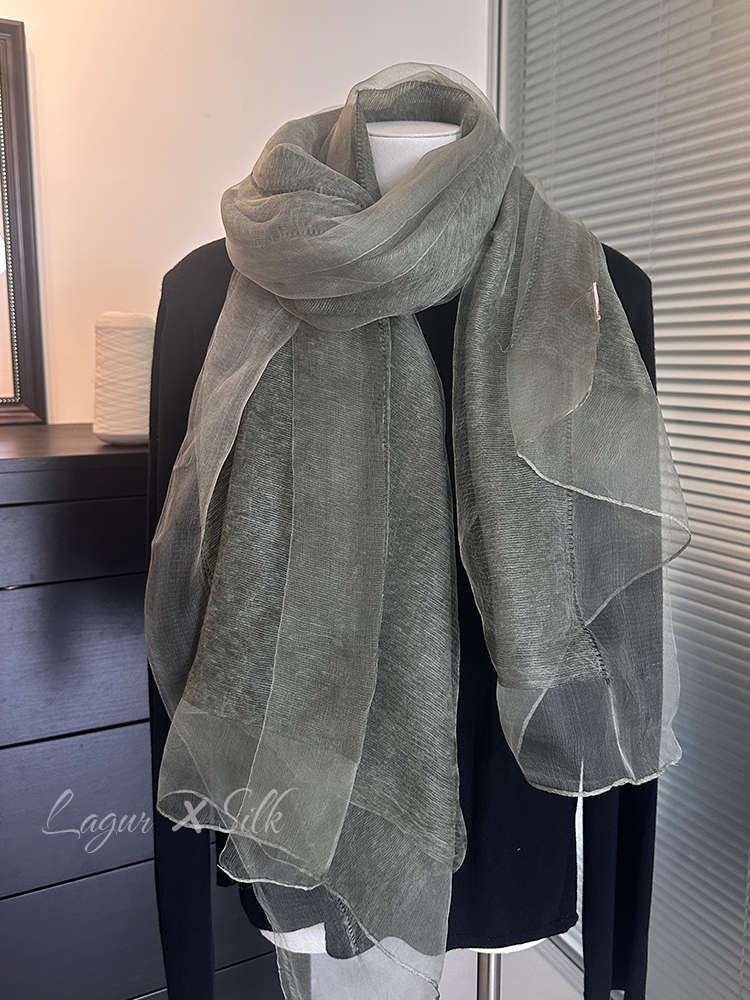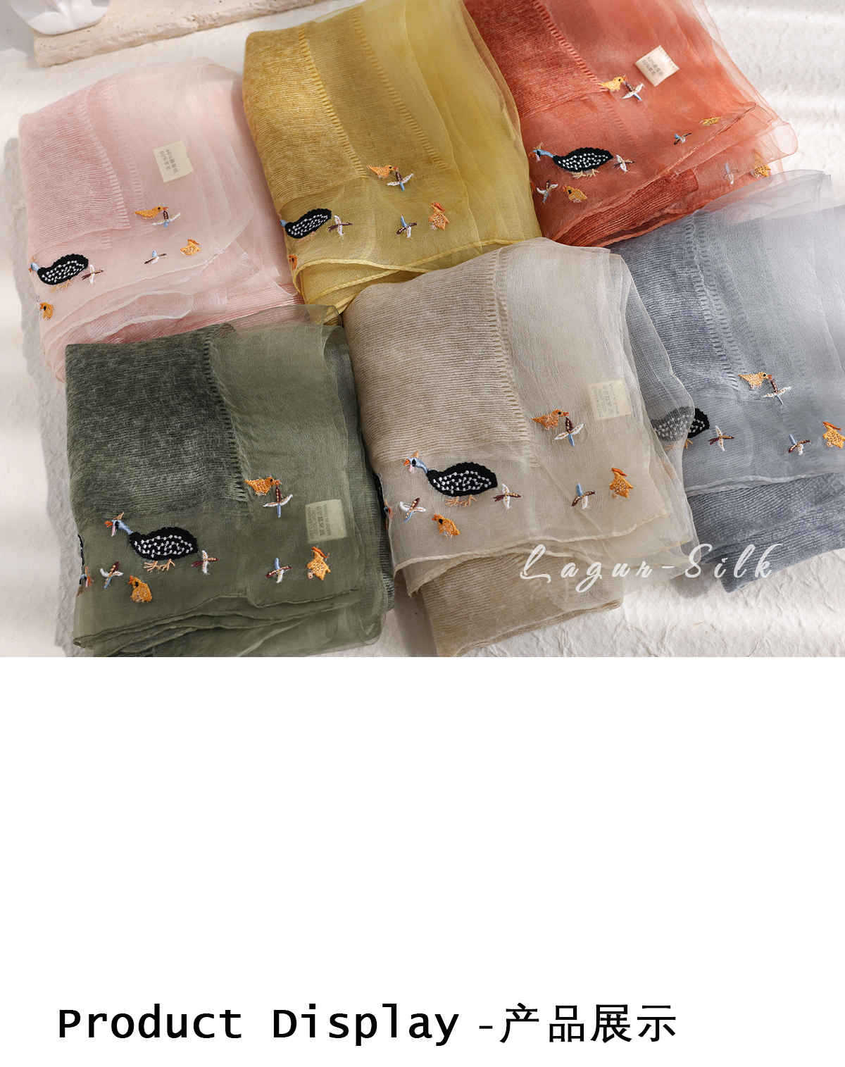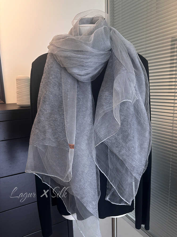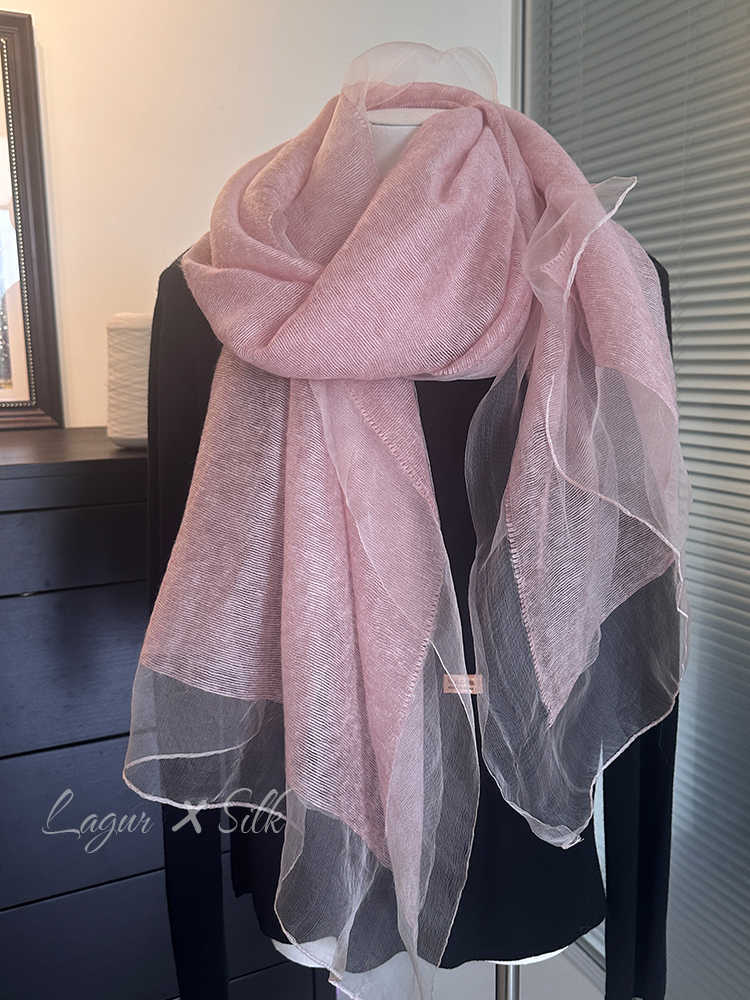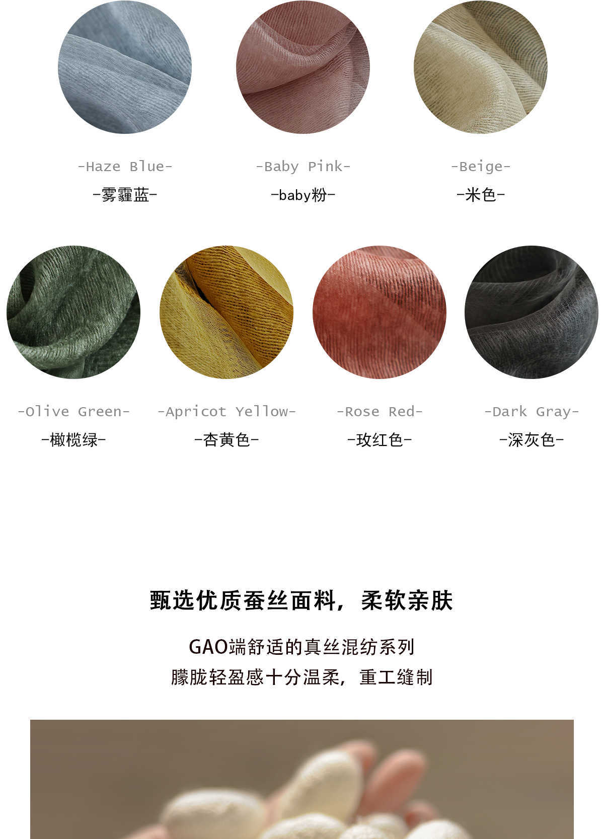 "골든 베이지" 실크 혼방 가벼운 실크 스카프 뽕나무 실크 플러스 사이즈 숄 스카프 자외선 차단 및 여성스러운 외투스토어 가기