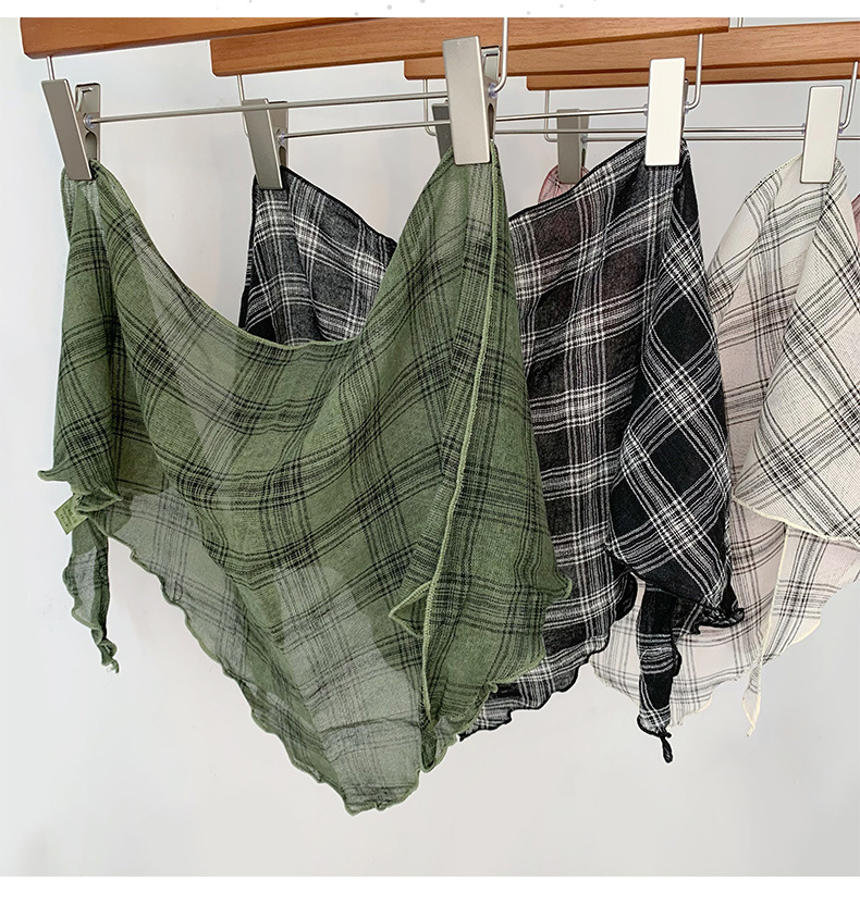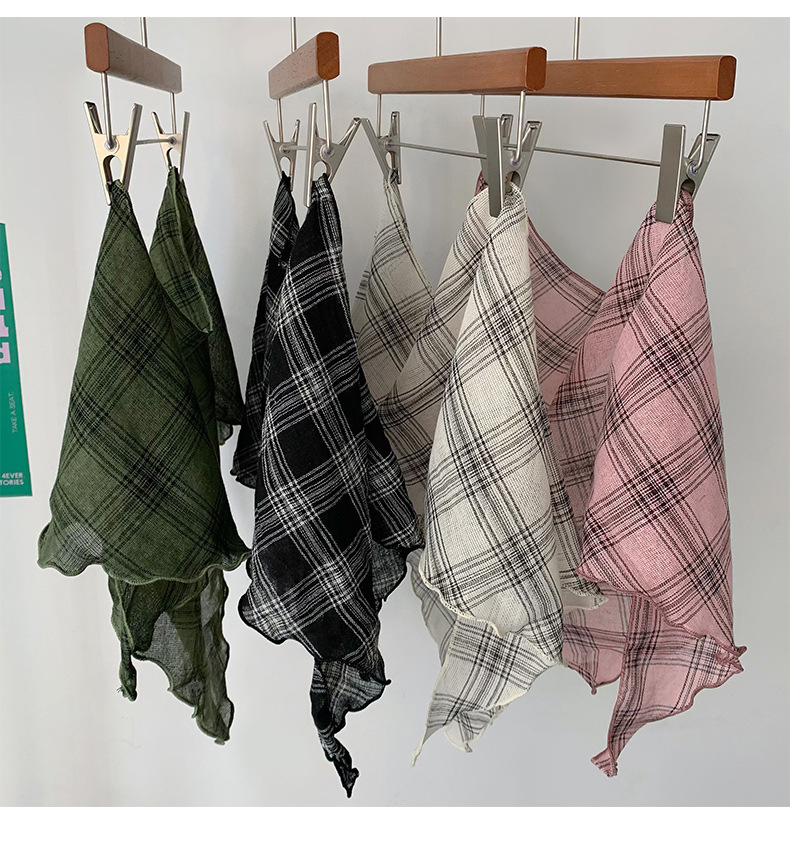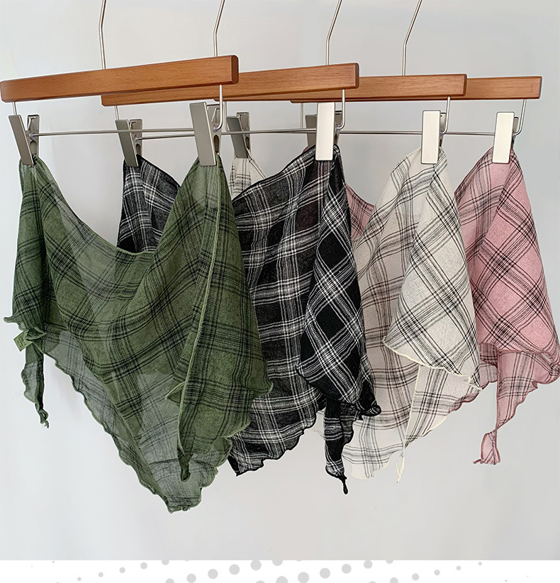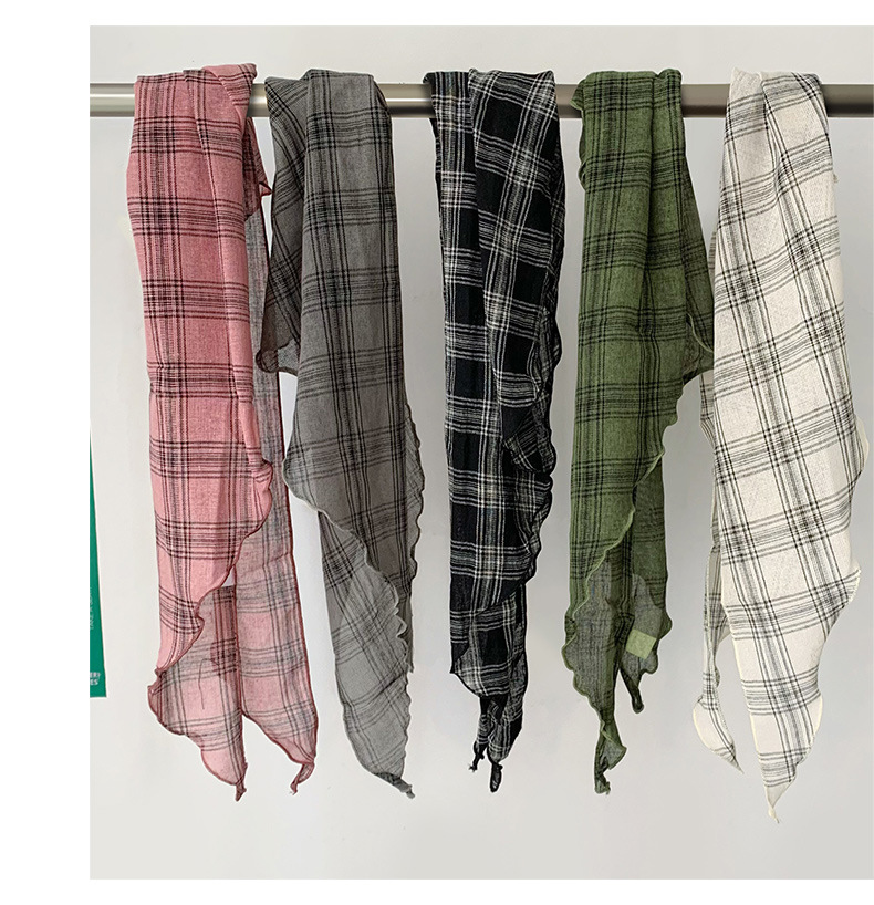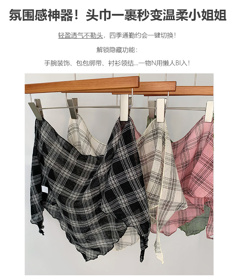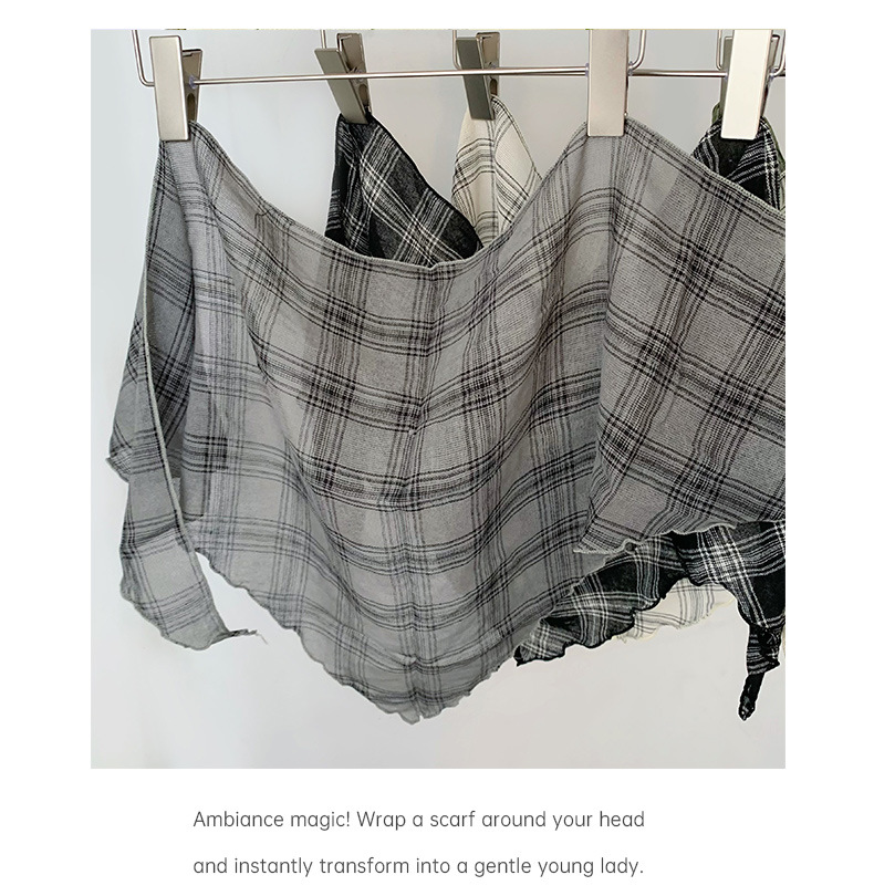 격자 무늬 긴 실크 스카프 여성 장식 스카프 목 보호 봄과 여름 2025 새로운 패션 다목적 삼각형 스카프 벨트 도매스토어 가기