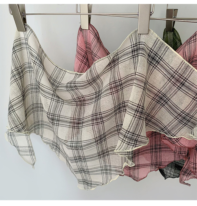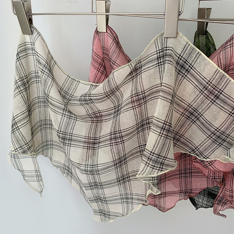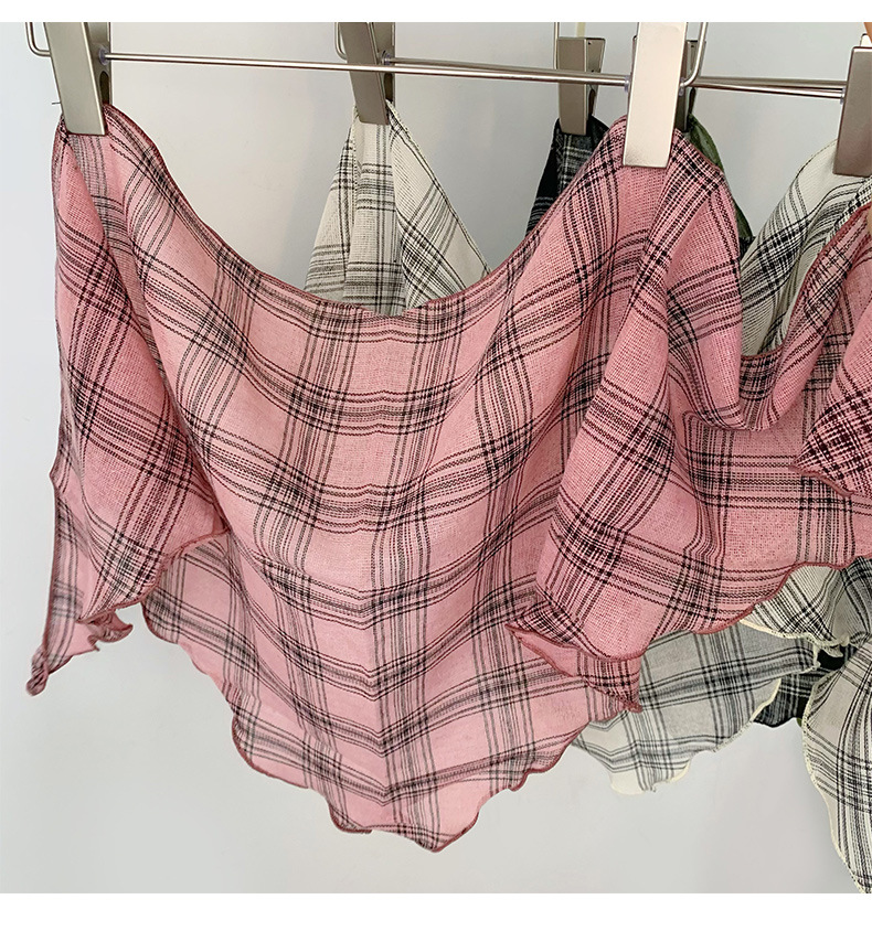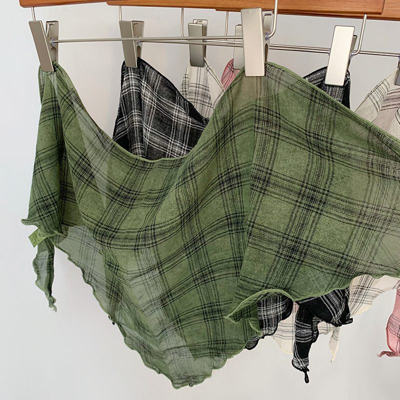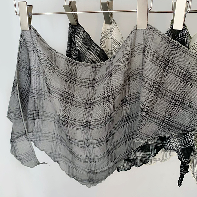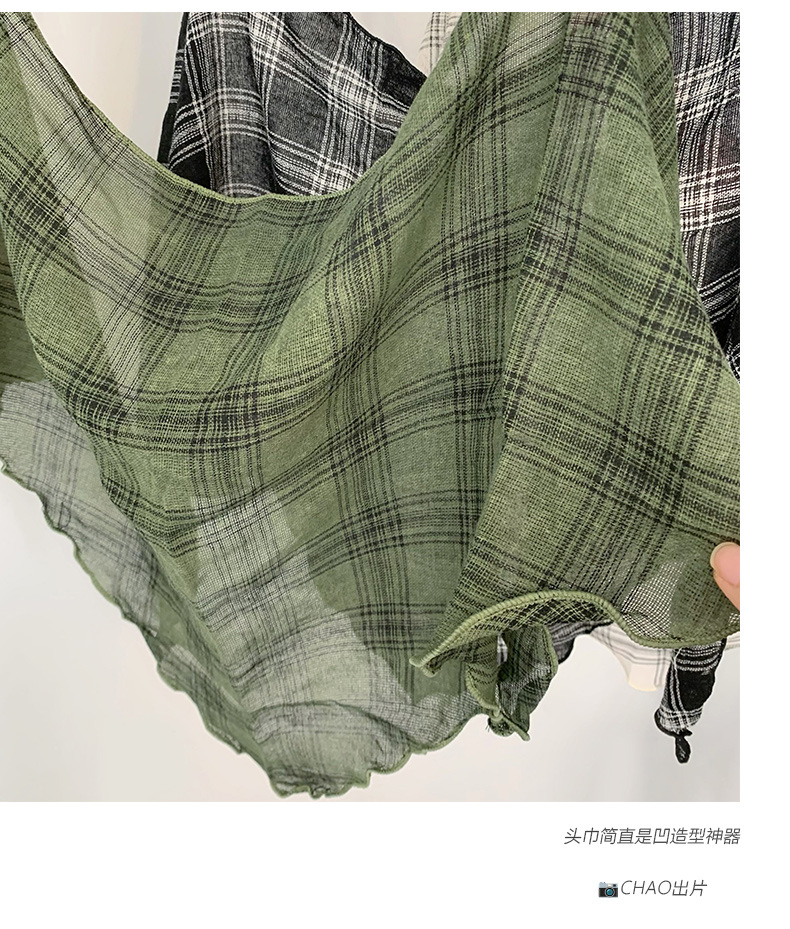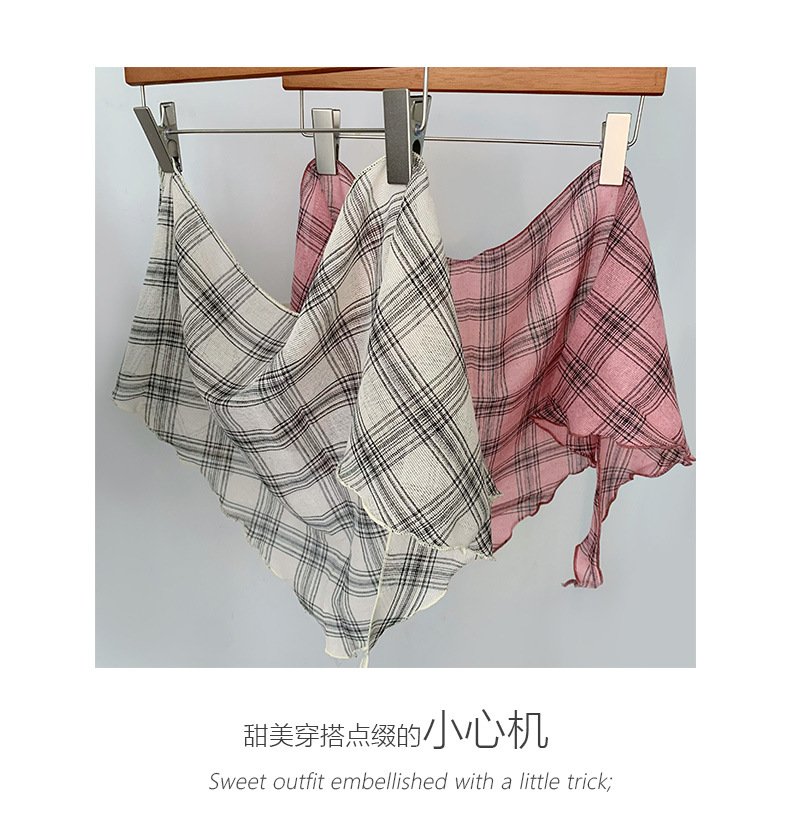 격자 무늬 긴 실크 스카프 여성 장식 스카프 목 보호 봄과 여름 2025 새로운 패션 다목적 삼각형 스카프 벨트 도매스토어 가기