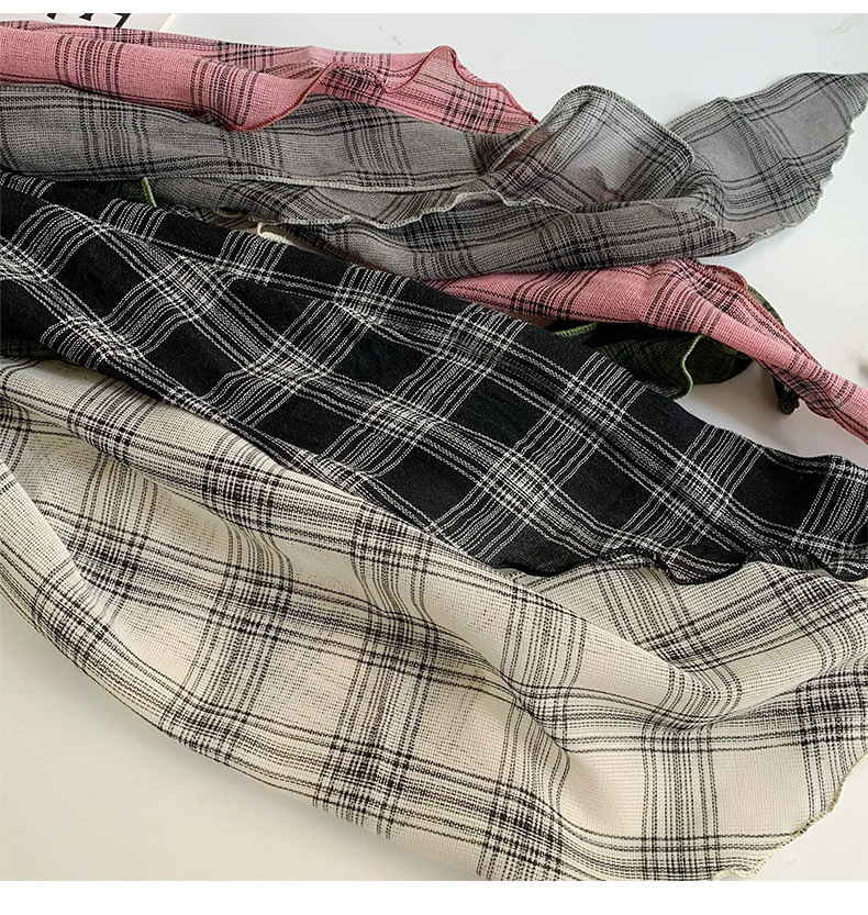 격자 무늬 긴 실크 스카프 여성 장식 스카프 목 보호 봄과 여름 2025 새로운 패션 다목적 삼각형 스카프 벨트 도매