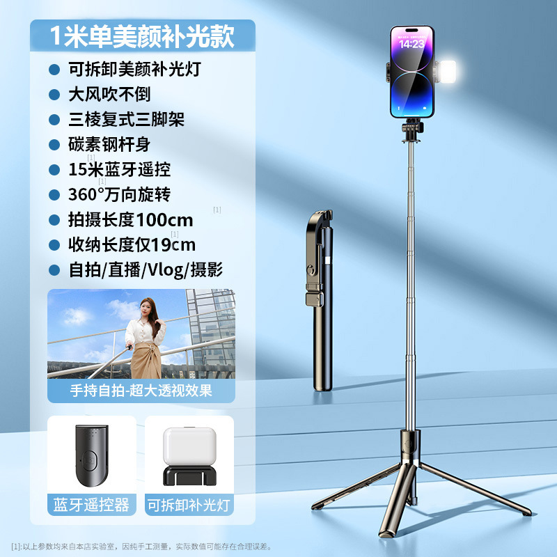 • 1m 확장형 싱글 뷰티 램프 [자유로운 텔레스코픽 + 안정적인 3다리 지지대] 무료 15m 블루투스