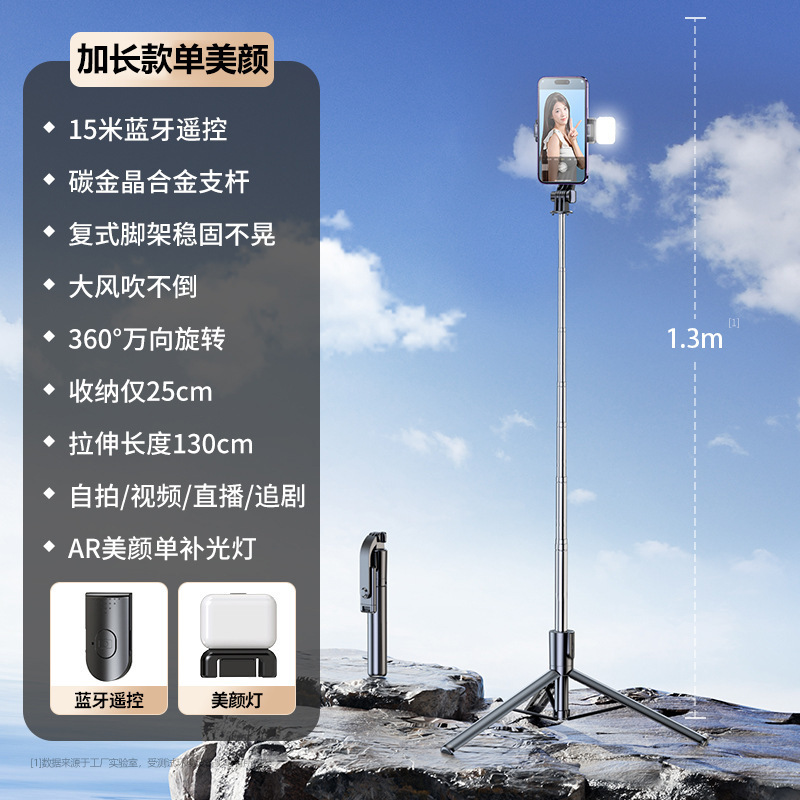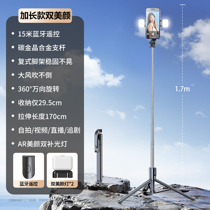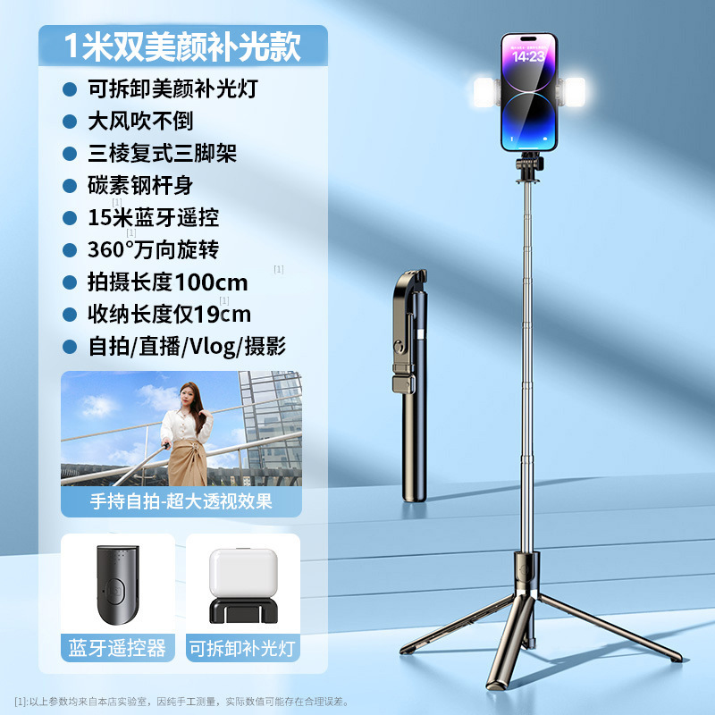 • 1m 확장형 듀얼 뷰티 램프 [자유로운 텔레스코픽 + 안정적인 3다리 지지대] 무료 15m 블루투스