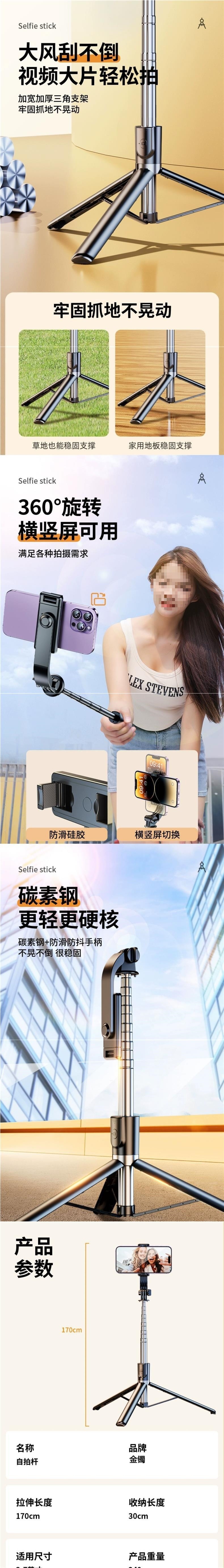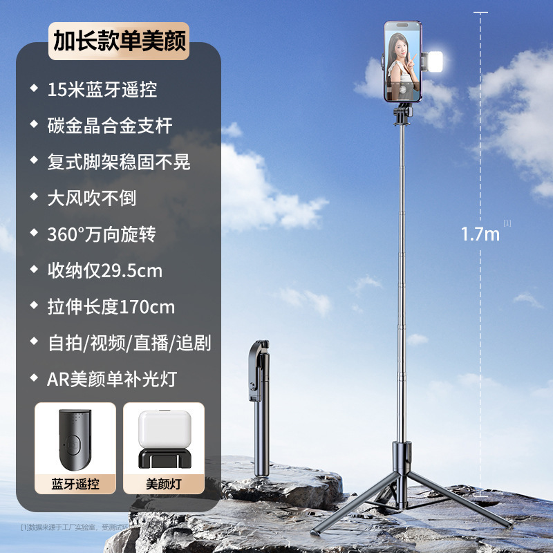 • 1.7m 확장형 [자유로운 텔레스코픽 + 이중 안정적인 3다리 지지대] 무료 15m 블루투스 리모컨