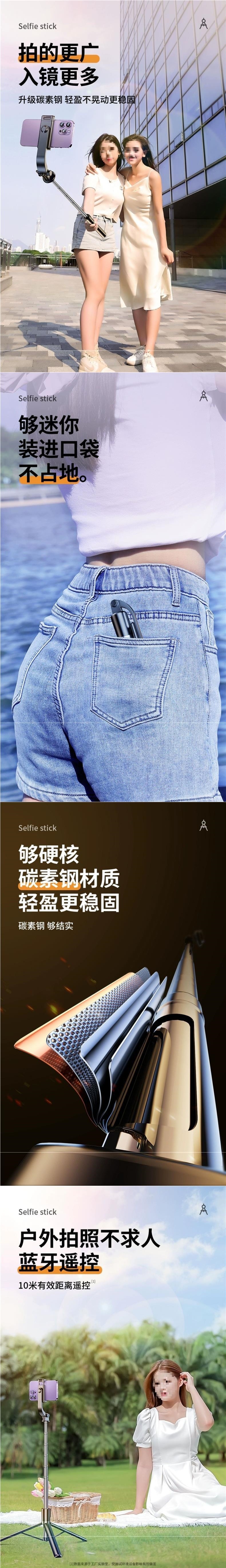 • 1m 확장형 [자유로운 텔레스코픽 + 안정적인 3다리 지지대] 무료 15m 블루투스 리모컨