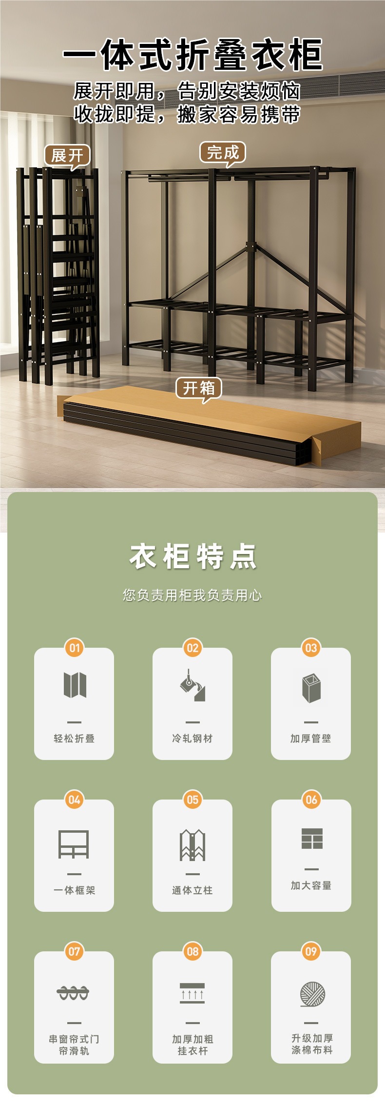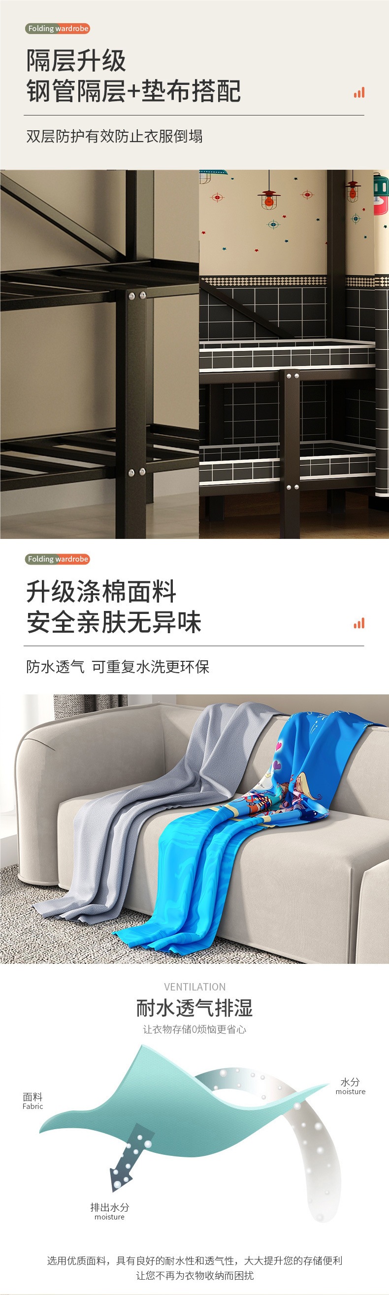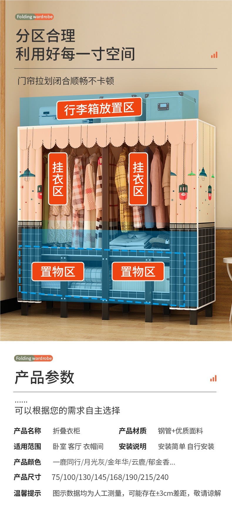 옷장 설치가 필요없는 접이식 옷장 홈 침실 튼튼하고 내구성이 뛰어난 천 옷장 임대실 현대적인 간단한 옷장스토어 가기