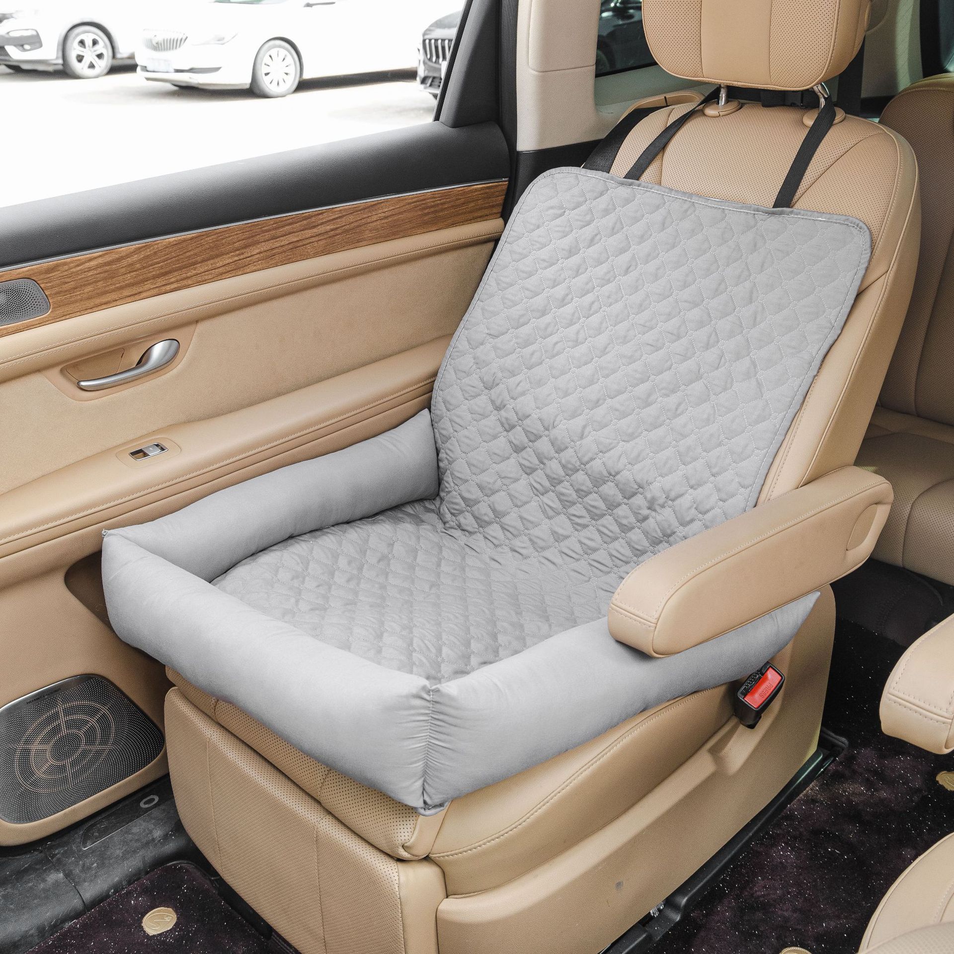 • 차량용 체크무늬 애완동물 매트 라이트베이지 그레이