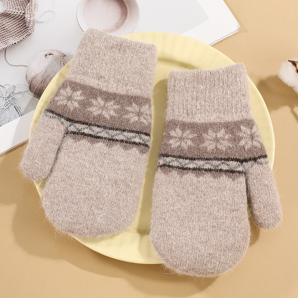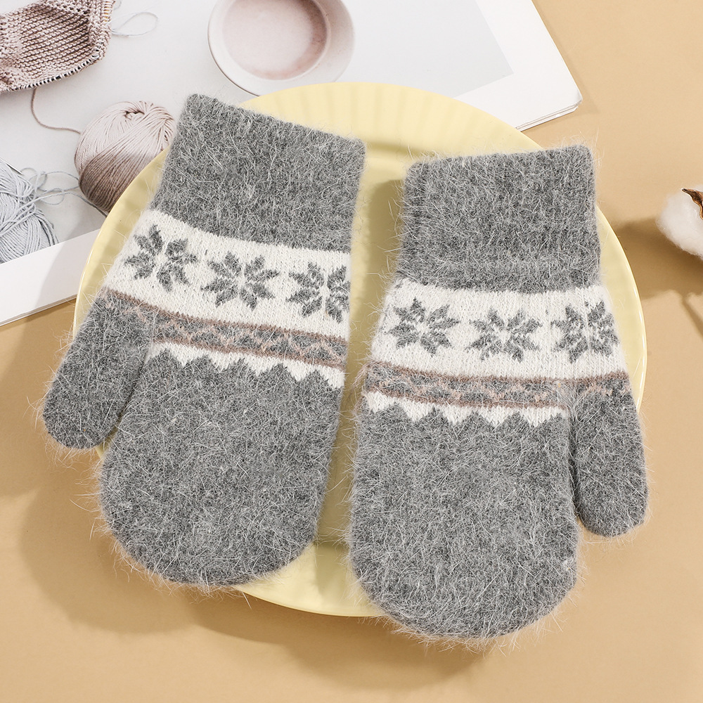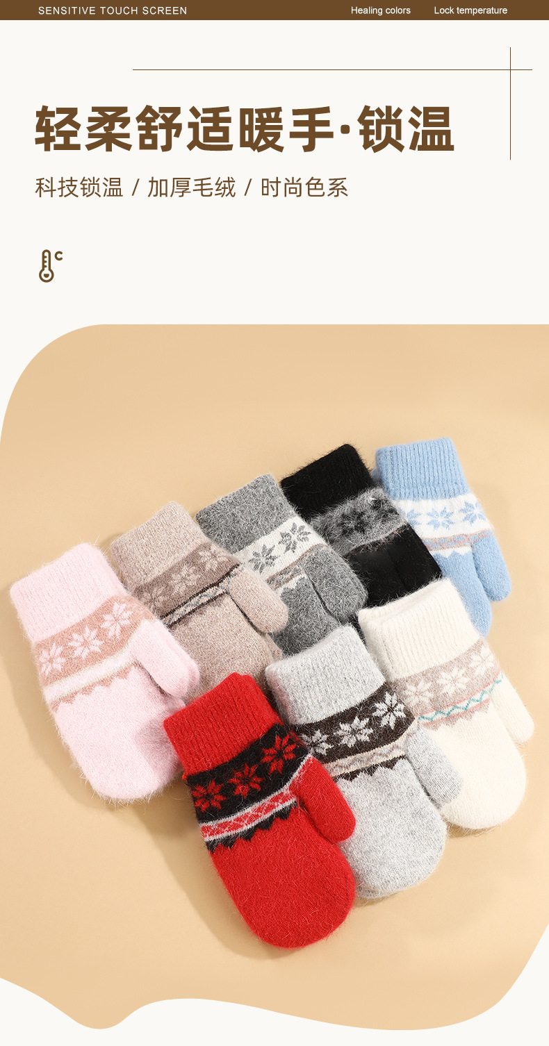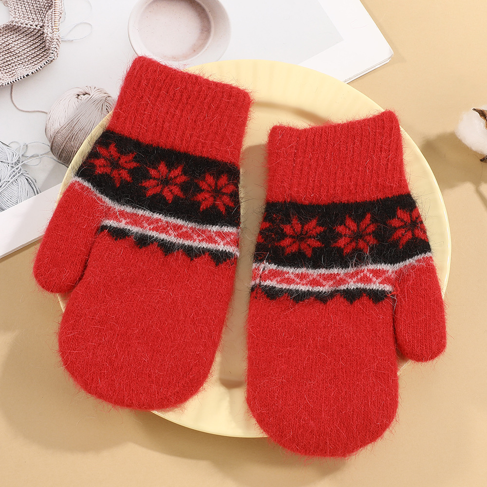 국경을 넘는 새로운 눈꽃 패턴의 플러시 니트 장갑, 추위를 막아주고 따뜻하게 유지하며 겨울 분위기를 연출하는 패셔너블하고 다재다능한 어린이용 장갑