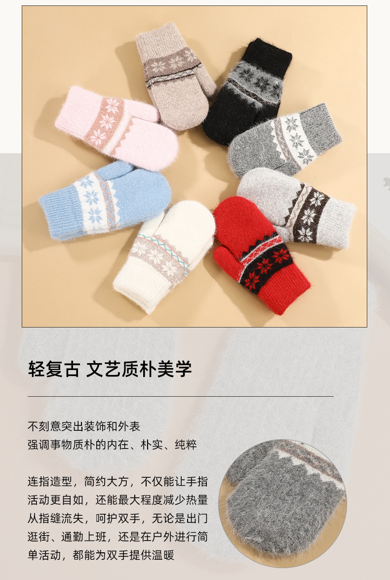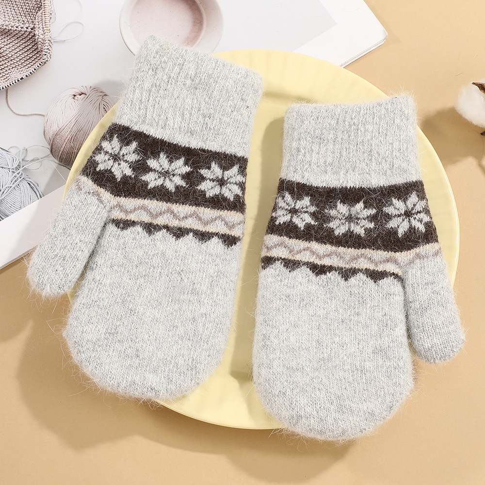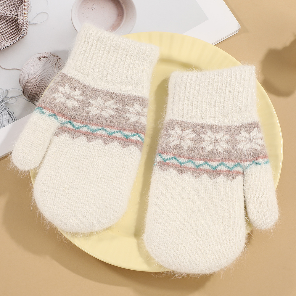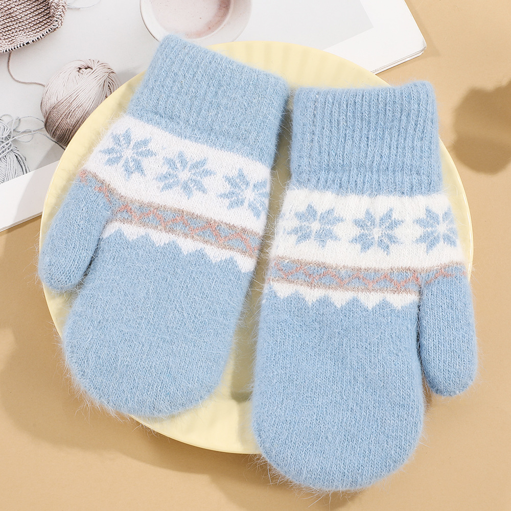 국경을 넘는 새로운 눈꽃 패턴의 플러시 니트 장갑, 추위를 막아주고 따뜻하게 유지하며 겨울 분위기를 연출하는 패셔너블하고 다재다능한 어린이용 장갑