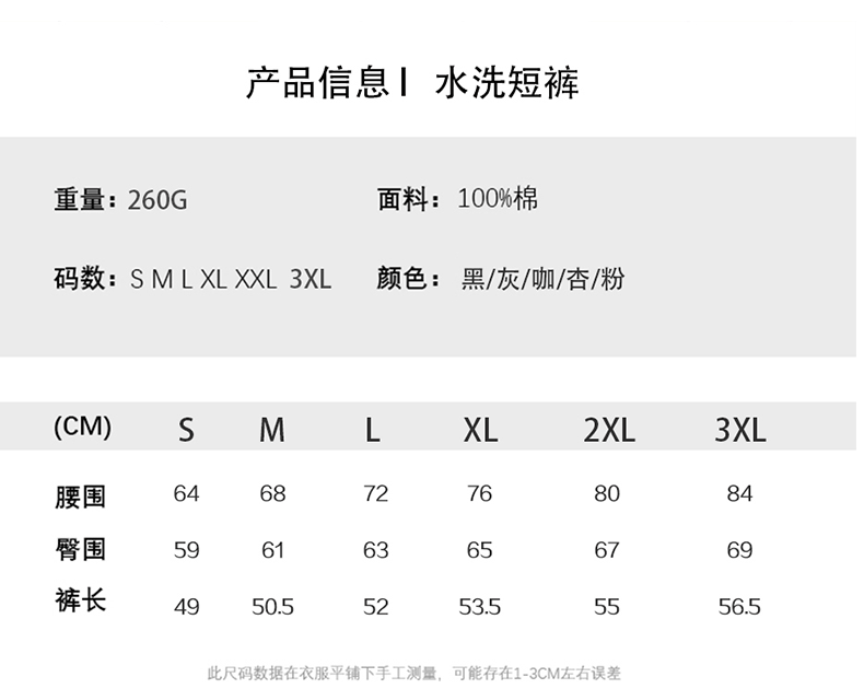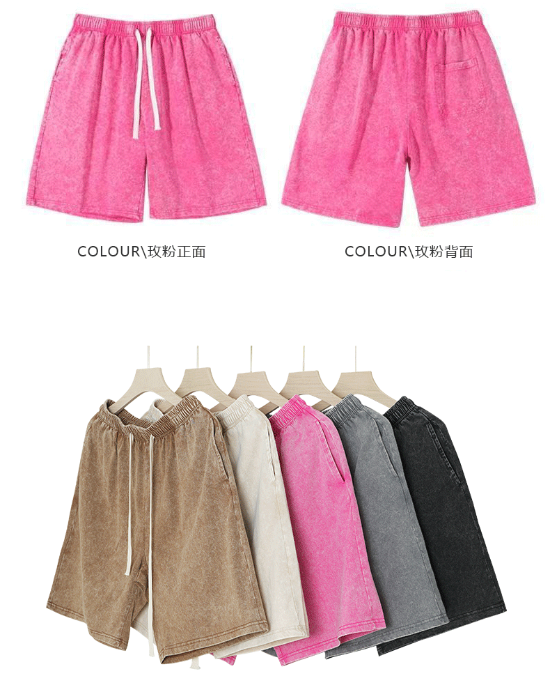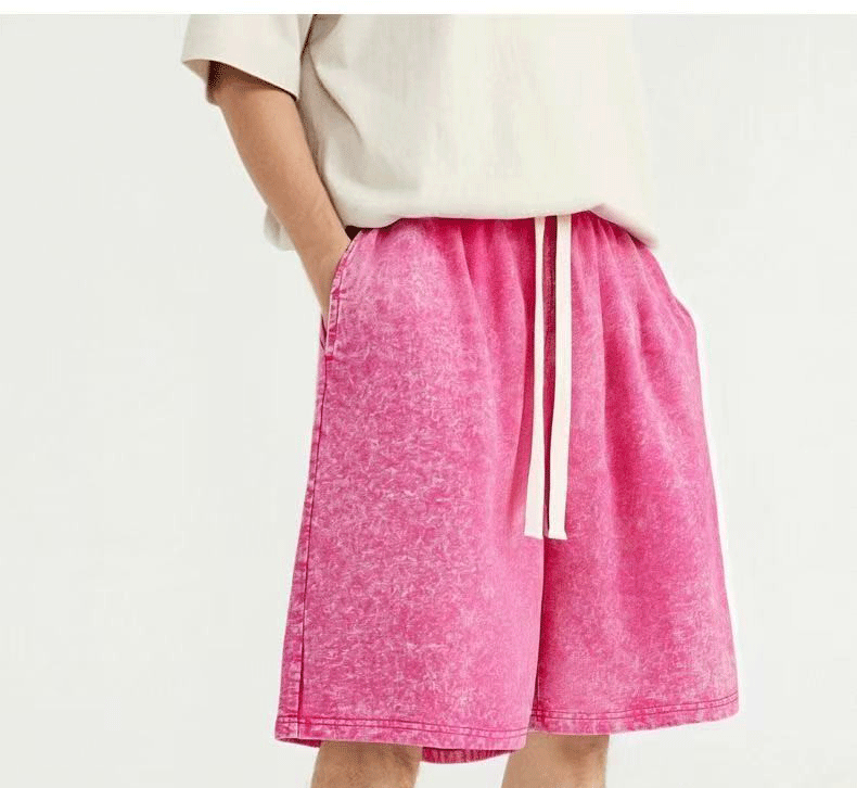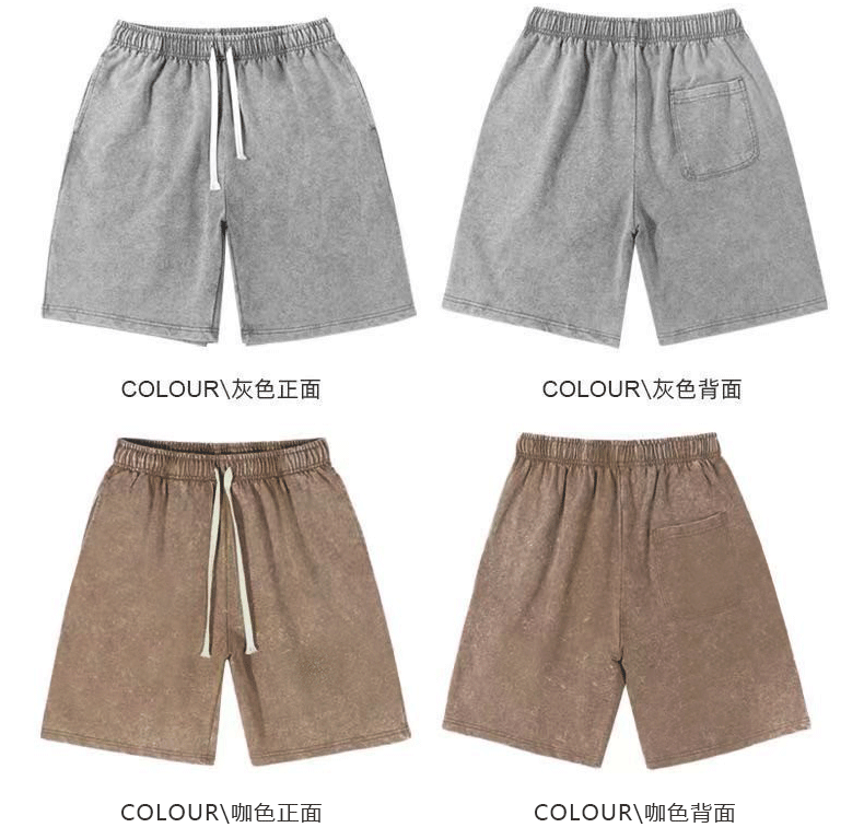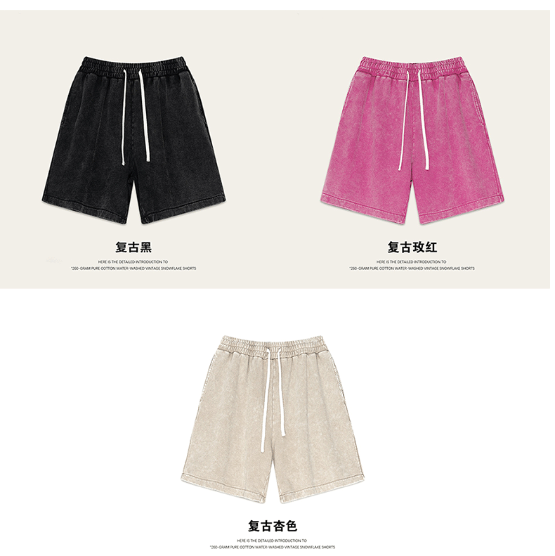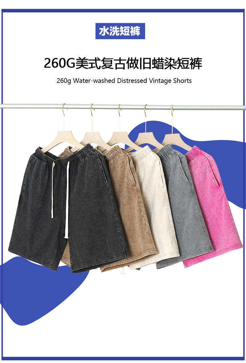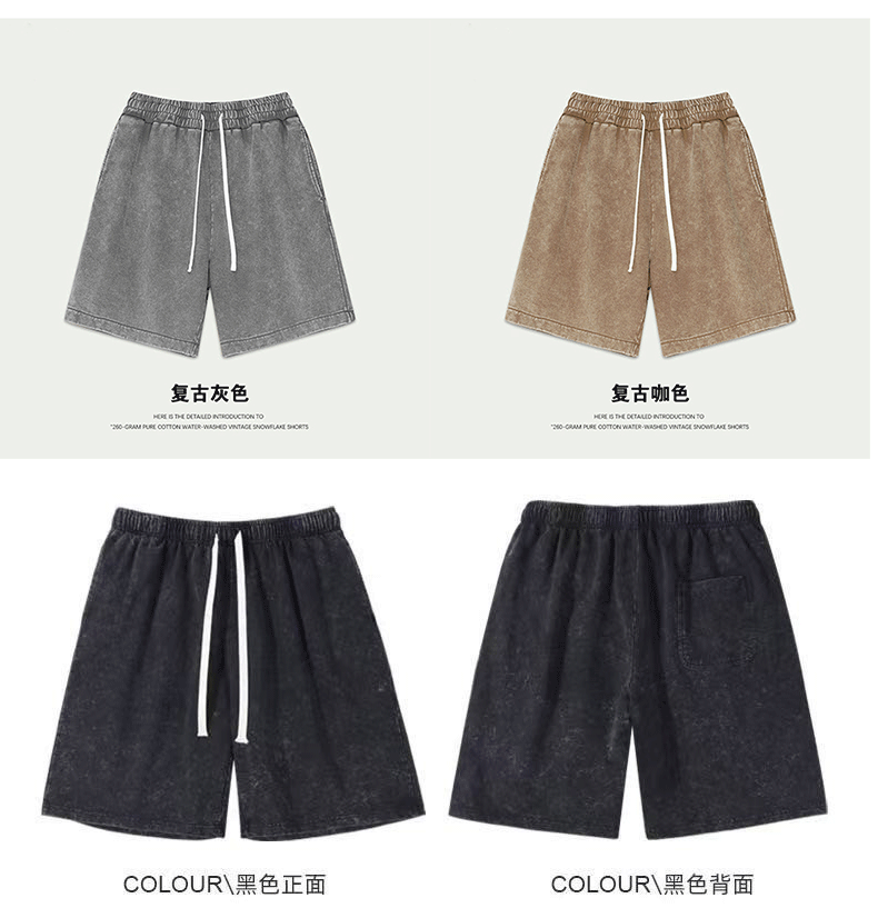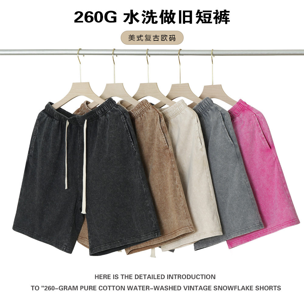 260g 헤비급 순면 유럽 사이즈 트렌디 남성 워싱 반바지 대형 루즈 솔리드 컬러 5점 캐주얼 반바지스토어 가기