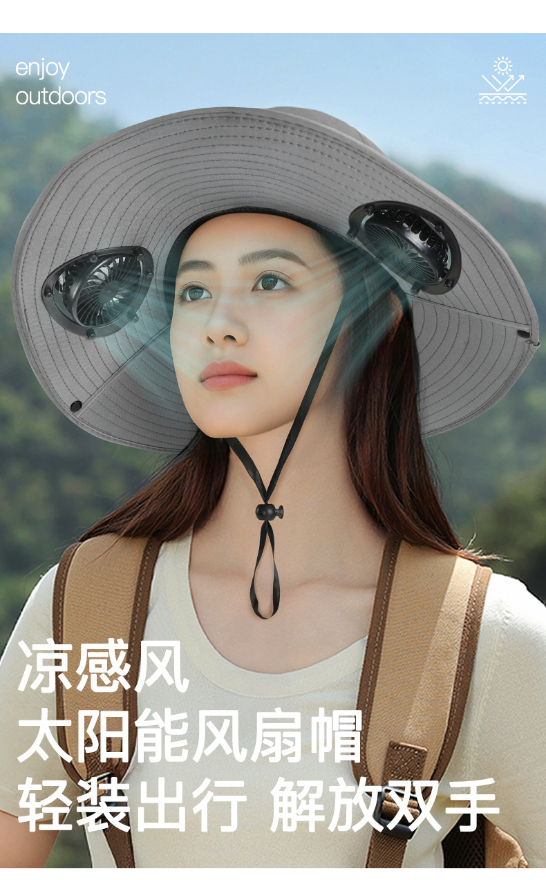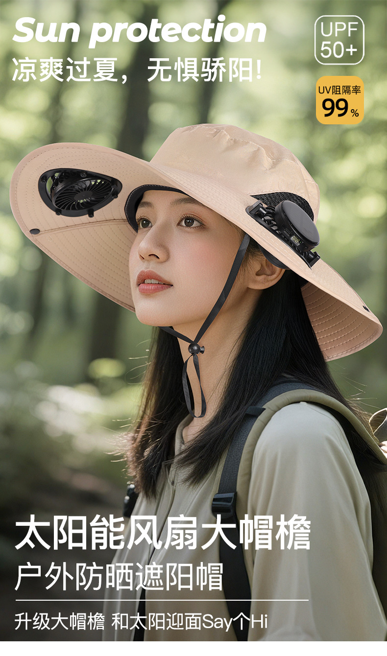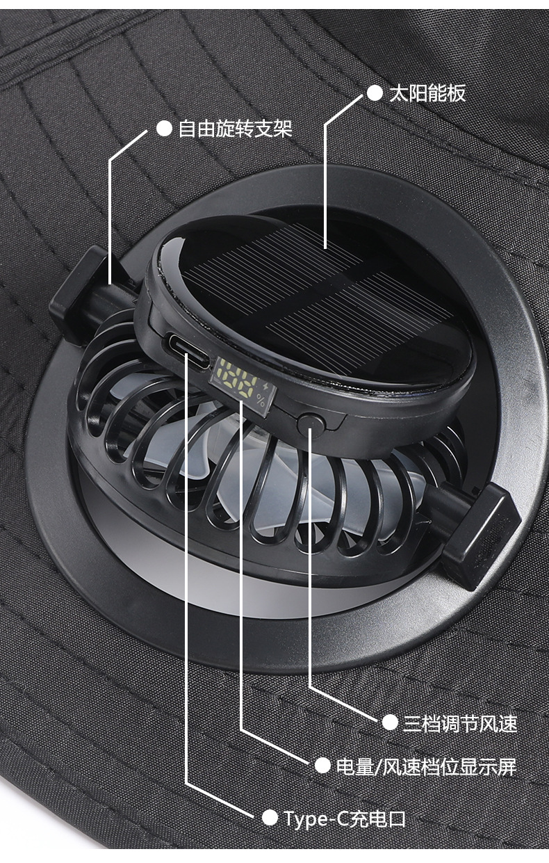 태양광 팬캡 일체형 낚시모자 팬모자가 있는 야외 등산모자 대용량 배터리 차양 및 자외선 차단