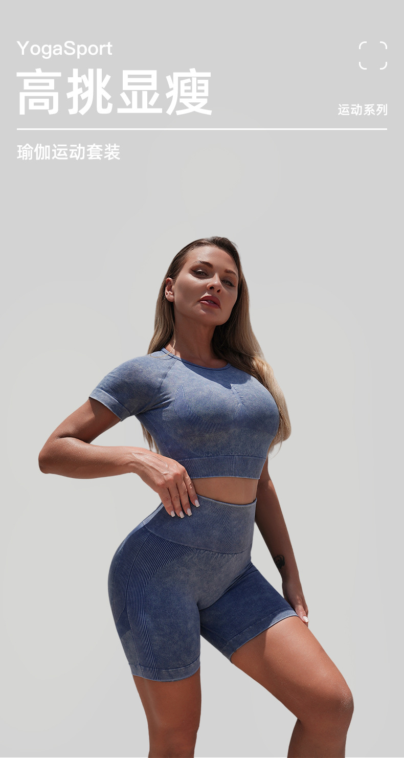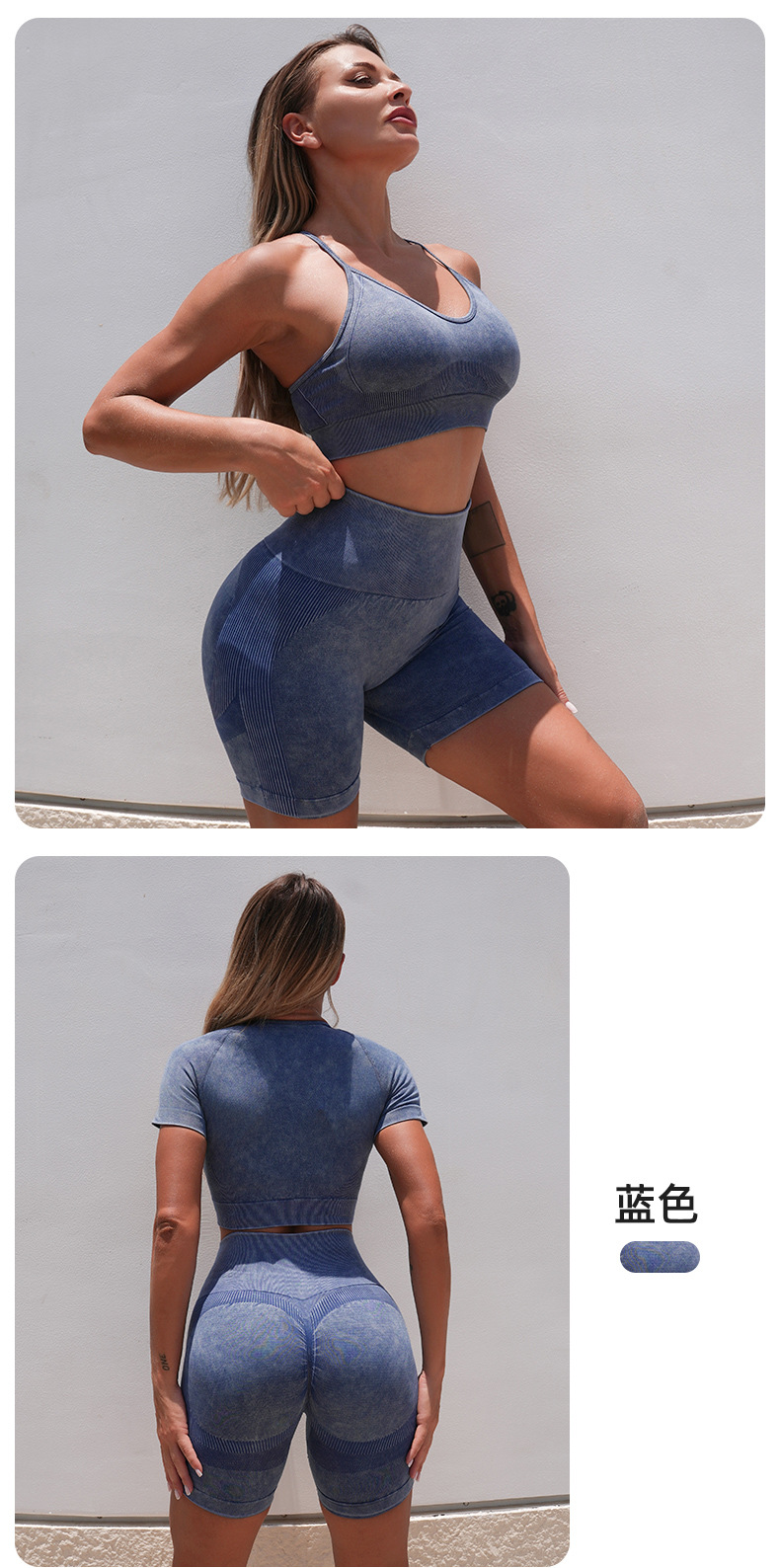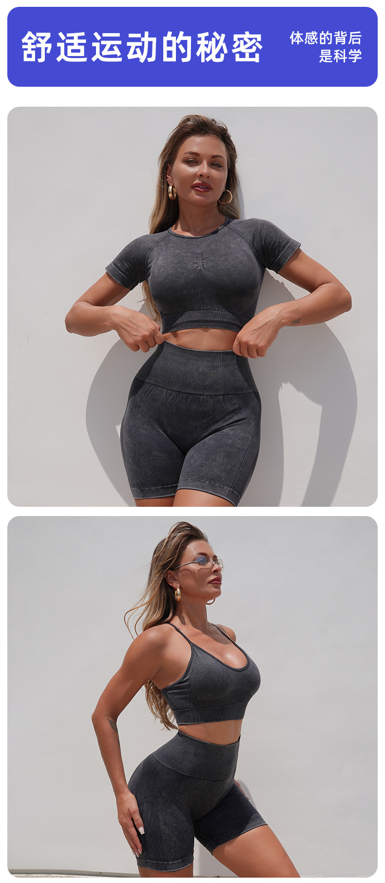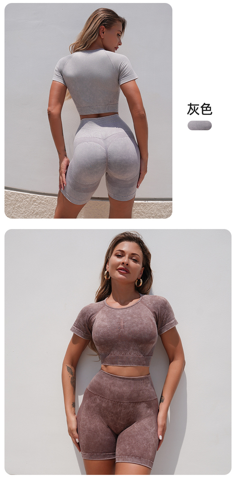 국경 간 새로운 스타일 배꼽 노출 반바지 세트 요가 엉덩이 리프팅 하이 웨이스트 스포츠 아마존 유럽과 미국의 꽉 끼는 여성 반팔스토어 가기